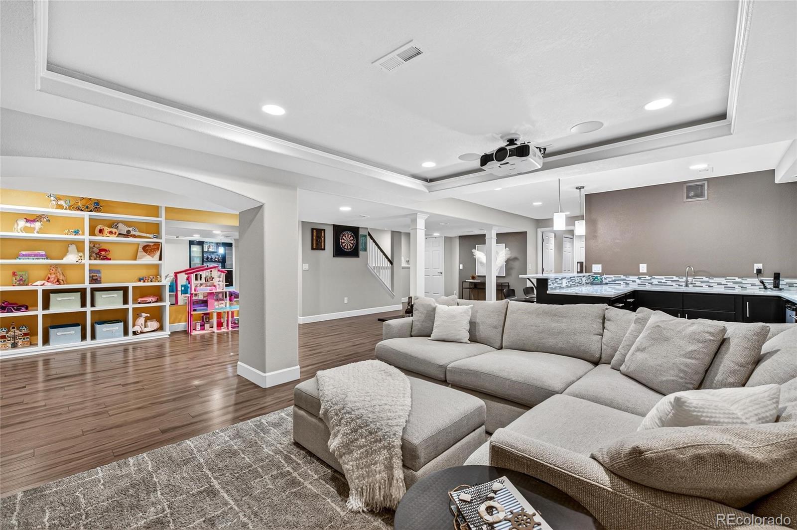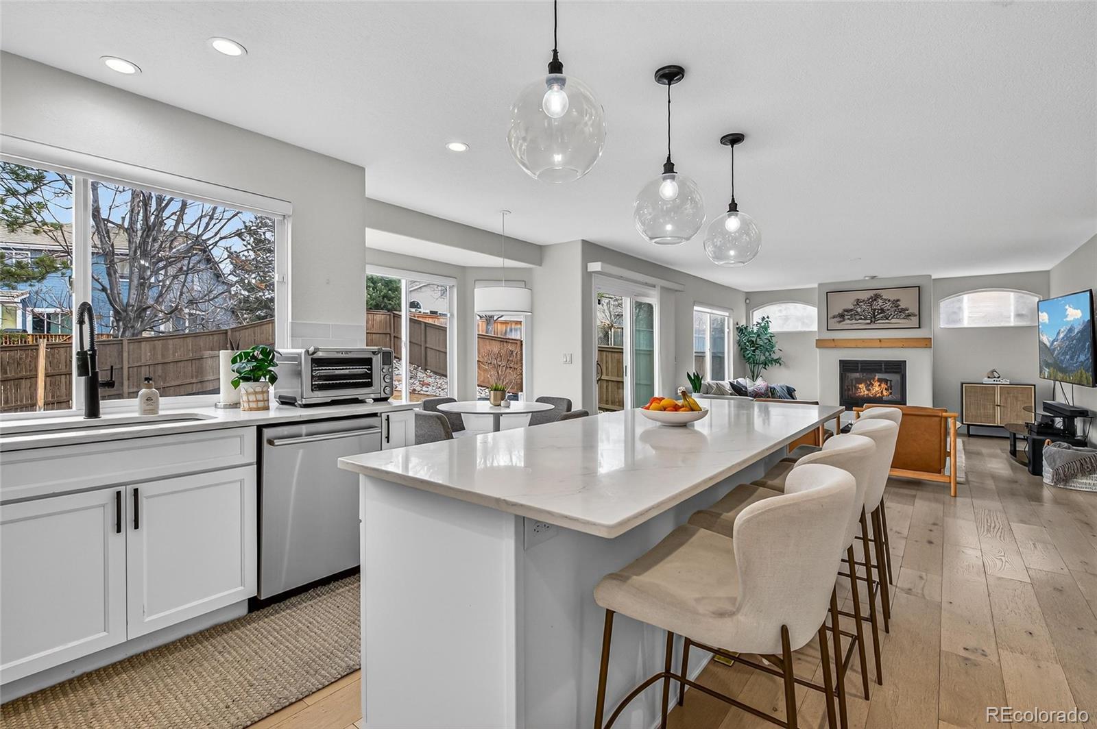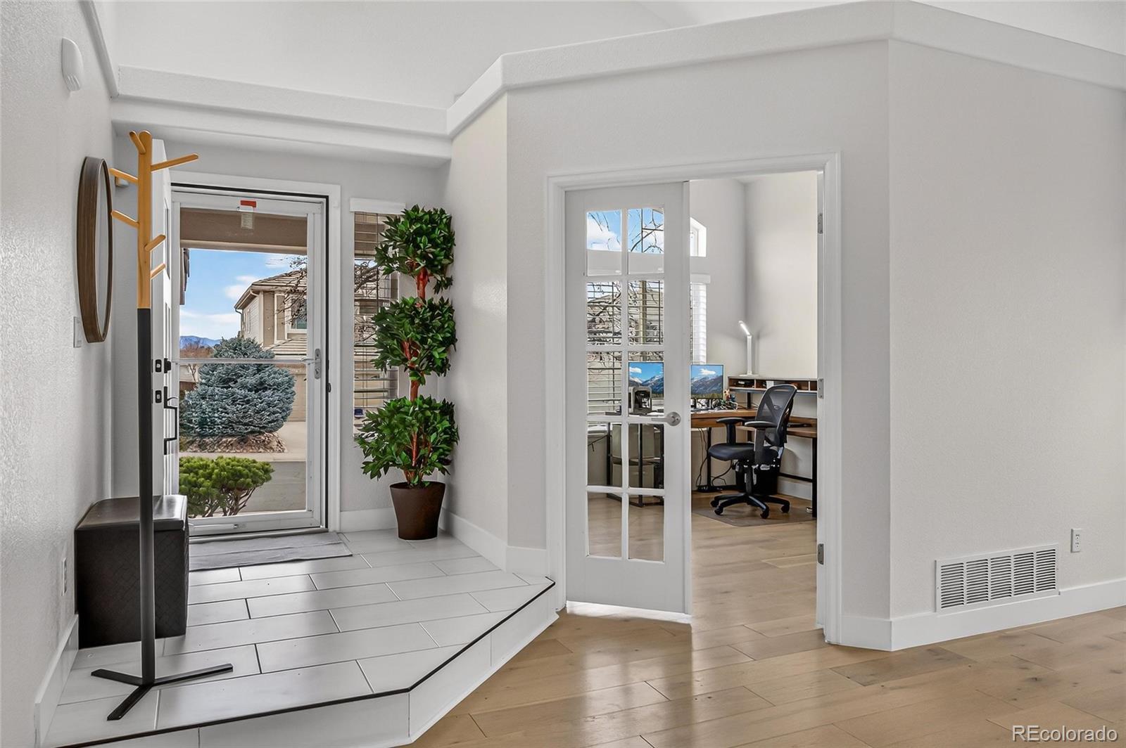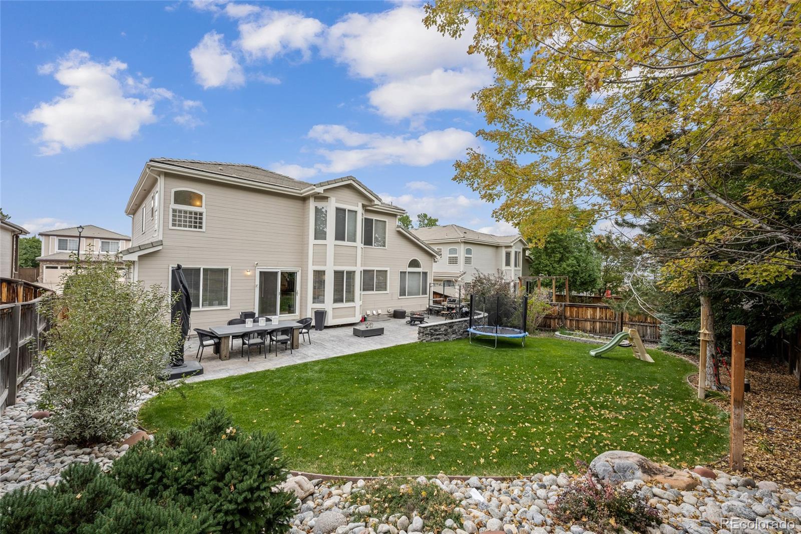 Welcome home to this beautifully updated 5-bedroom, 4-bath single-family home — located in the highly coveted Rock Canyon High Schools district, proudly rated 10 out of 10. From the moment you arrive, you’ll notice the fresh exterior paint and new front door that create stunning curb appeal. Inside, the home has been thoughtfully upgraded throughout with all new flooring on the main level as well as new 6" baseboards, select new windows, a new patio door, and new window coverings — including some electronically operated, some new blinds and some blackout shades for added convenience. The remodeled kitchen is a true showstopper, featuring quartz countertops, upgraded GE Cafe appliances, and a clean, modern design perfect for everyday living and entertaining. The updates continue in the beautifully remodeled primary bathroom, hall bathroom, and powder bath — offering a cohesive, move-in-ready feel throughout. You will also love the mudroom with built ins just perfect to hang those backpacks and put away those shoes, hats and gloves! With five spacious bedrooms and four bathrooms, plus a main floor study, there’s room for everyone. The main floor study provides the perfect work-from-home setup or quiet retreat. The finished basement includes a large media/rec room with wet bar, bedroom and 3/4 bath. Step outside to enjoy Colorado living at its best on the large stamped concrete patio overlooking a generous backyard — ideal for entertaining, play, or relaxing evenings under the stars. A three-car garage provides plenty of storage and space for all your gear. Additional major updates include a new water heater - 2025 and a furnace and A/C system replaced in 2016 for peace of mind. Located close to trails and just 10 minutes from Park Meadows, enjoy all 4 rec centers, trails and parks with Highlands Ranch HOA! Move-in ready, beautifully upgraded — this is the one you’ve been waiting for!