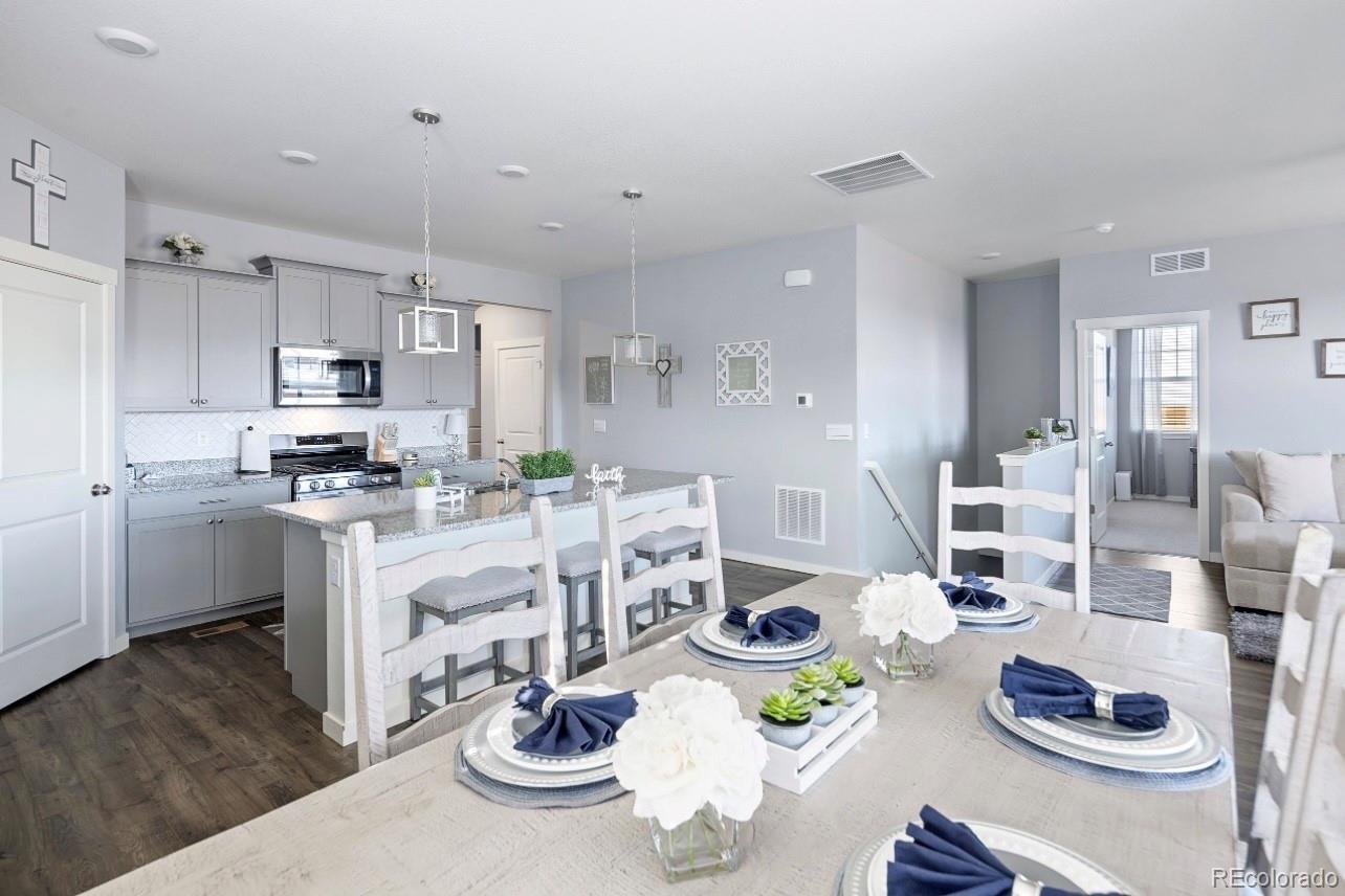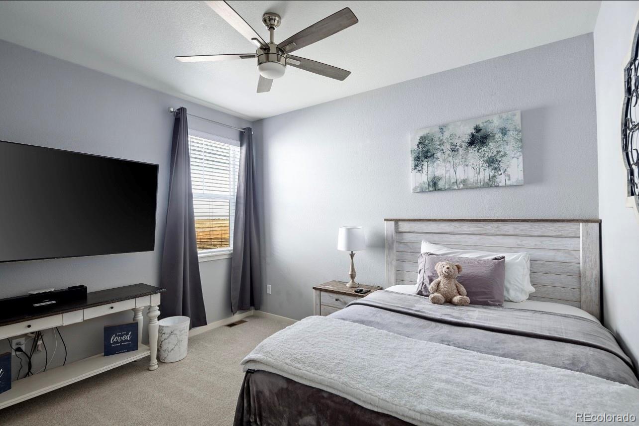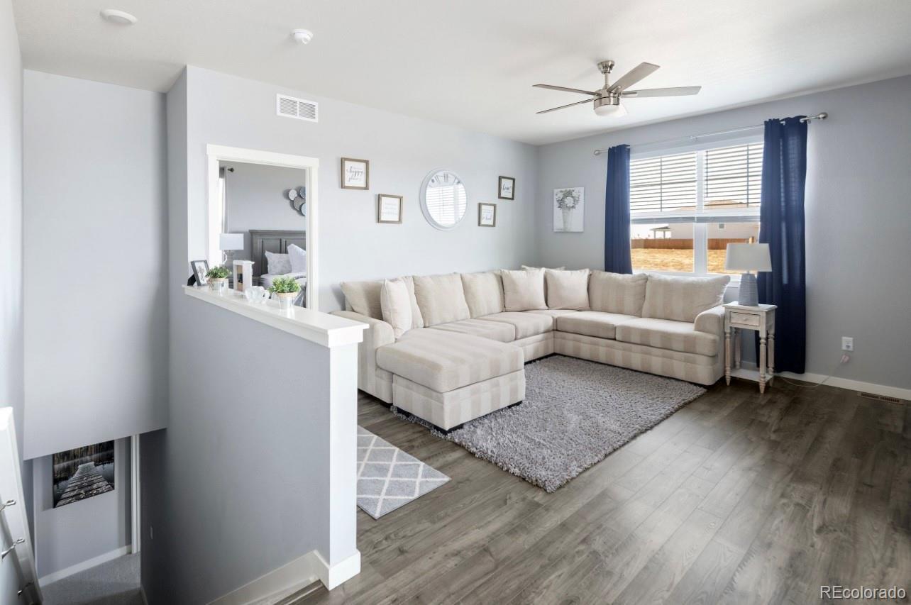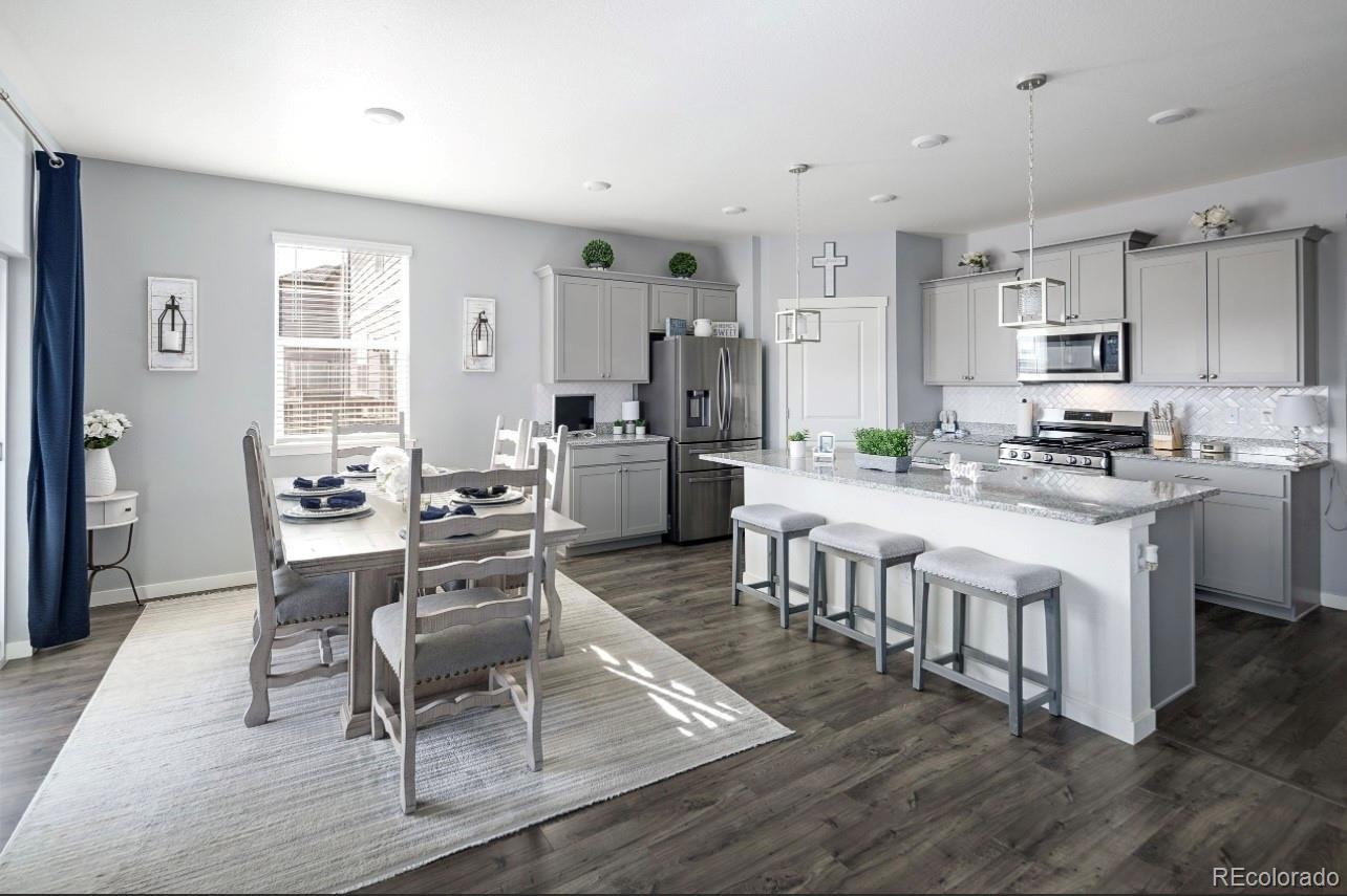 Check out this immaculately kept 2022 home that is fully finished out! A ranch plan home with a covered front porch and back deck for relaxing. West facing for great snow melt. Open concept plan with A/C, 9' ceilings and full finished garden level basement. Soothing decor features grey cabinetry with crown molding, granite countertops, walk in pantry, SS appliances, new paint 2025, upgraded carpet and padding (2025) and extensive laminate wood flooring through most of the main level. Includes Smart Home features such as Keyless entry, Smart Speaker, Video doorbell, Z-Wave thermostat, ADT Security system and more to keep you connected. Basement finished with 2nd laundry room, living area, office/flex room, huge bedroom, full bathroom and large storage space. 10 year New Home Warranty for peace of mind through builder. Backyard is turf and the front yard is grass. Both front and back have a sprinkler system. This is a well maintained and gorgeous home you don’t want to miss out on. Furnishings are negotiable to stay with the home and TVs mounted on walls stay with the home as well. Motivated seller!