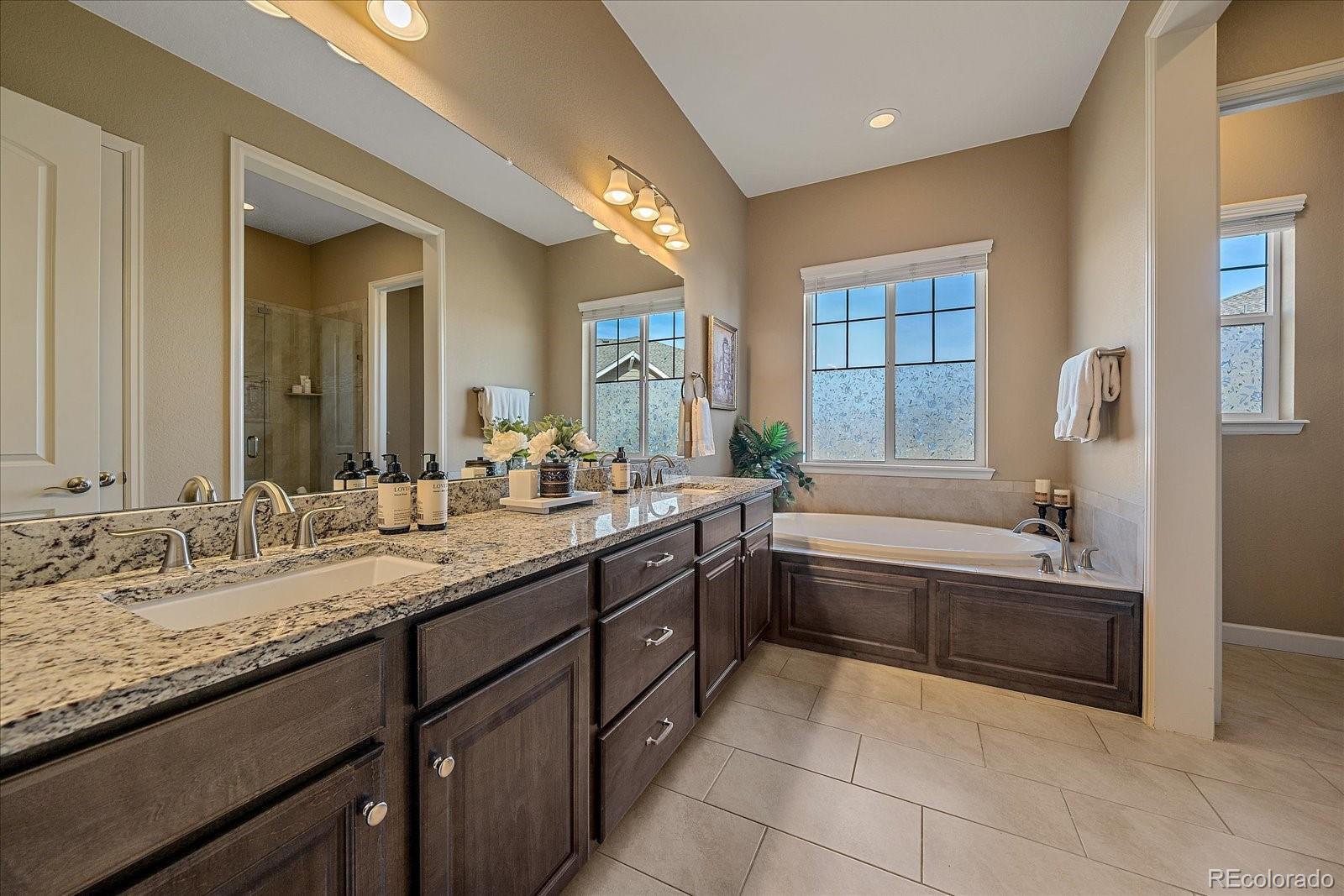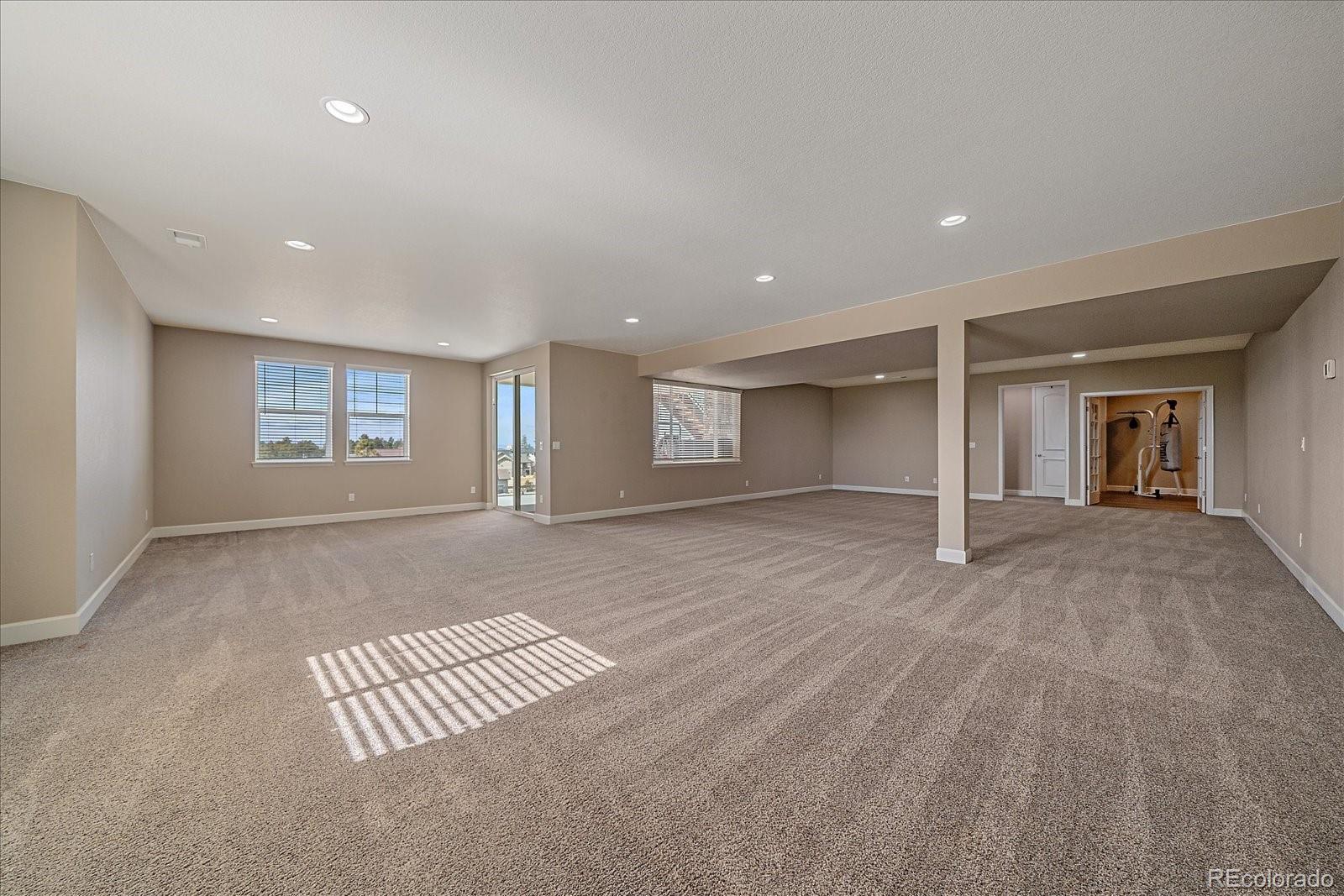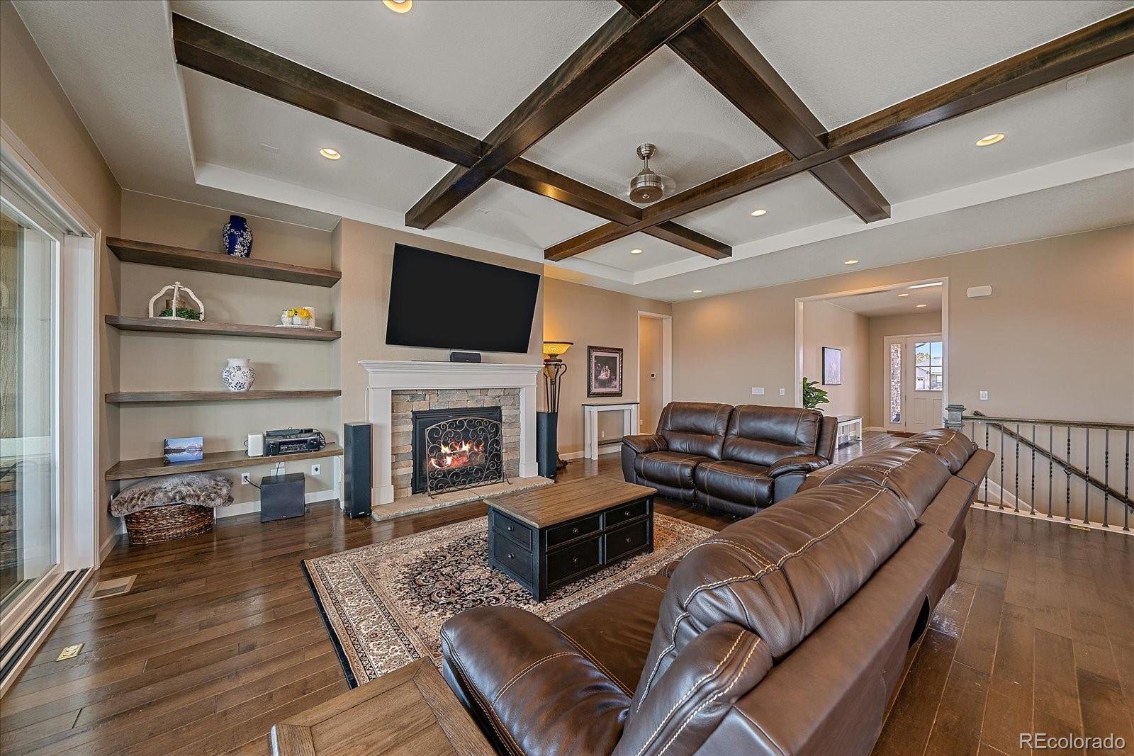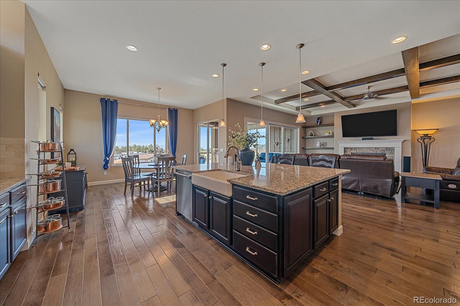 Views, views, views from almost every room, they are spectacular. Embrace the Colorado lifestyle in this ranch style estate home gracefully set on a cul de sac in the prestigious Timbers at the Pinery. This home showcases luxury finishes, soaring ceilings and is bathed in natural light. The great room has a wall of glass, custom shelving, fireplace, coffered ceiling and is open to the kitchen. The gourmet kitchen will impress you with it's oversized island/bar, granite counters, high end appliances including Thermador stove & dishwasher, ss hood, butler's pantry with wine frig & large walk in pantry. The adjoining spacious nook looks out to the breathtaking mountains. Step into the sunroom to enjoy seamless indoor/outdoor living. You will just want to relax and soak in the views year round including grilling 365 days a year. The dining room is perfect for entertaining. Escape to the primary suite which is a private sanctuary for relaxation. The 5 piece bath features jetted soaking tub, large shower, and massive walk in closet. The secondary bedrooms on main floor are both a great size and feature a jack & jill bath. Main floor study is highlighted with french doors and a custom wall of shelves. The finished walkout expands your living space and features 9' ceilings, and a large family room plumbed for a wet bar. Work out in the spacious gym which could also be another bedroom. There is a private bedroom and 3/4 bath downstairs too. In the unfinished area there is plenty of room for storage plus a workshop, wow. Other amenities include 10' ceilings main floor, engineered hardwood floor, remote control shades, and secondary sub panel. You will love the professionally landscaped yard with water feature, trees, boulders, split rail fence & swim spa. This home is close to trails, parks, golf courses, top rated schools, & shopping and dining options. A once in a lifetime opportunity to own a home with these unparalleled views that are impossible to replicate.