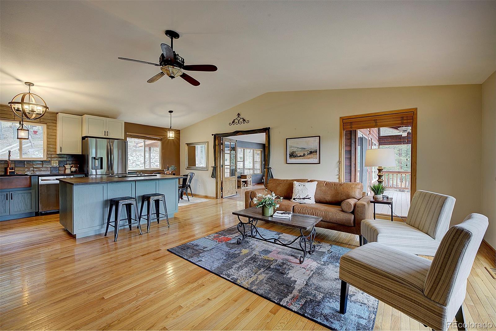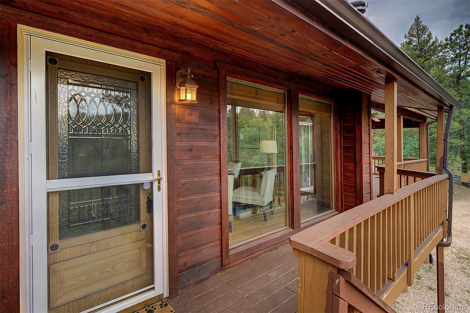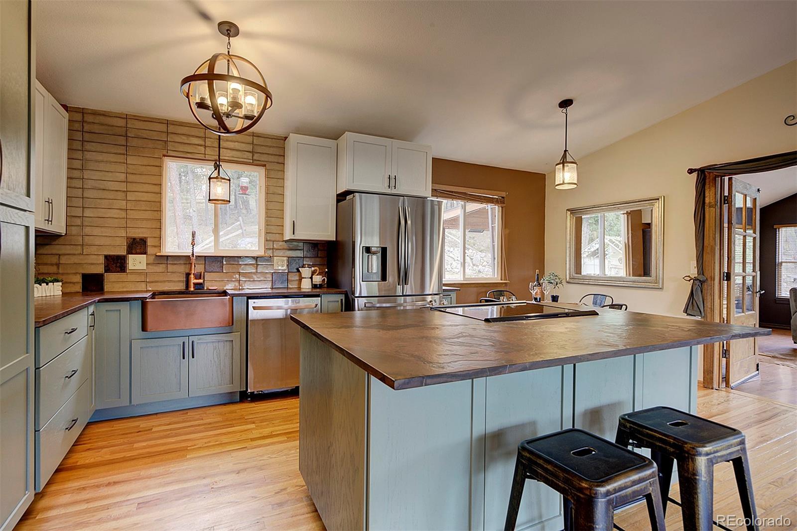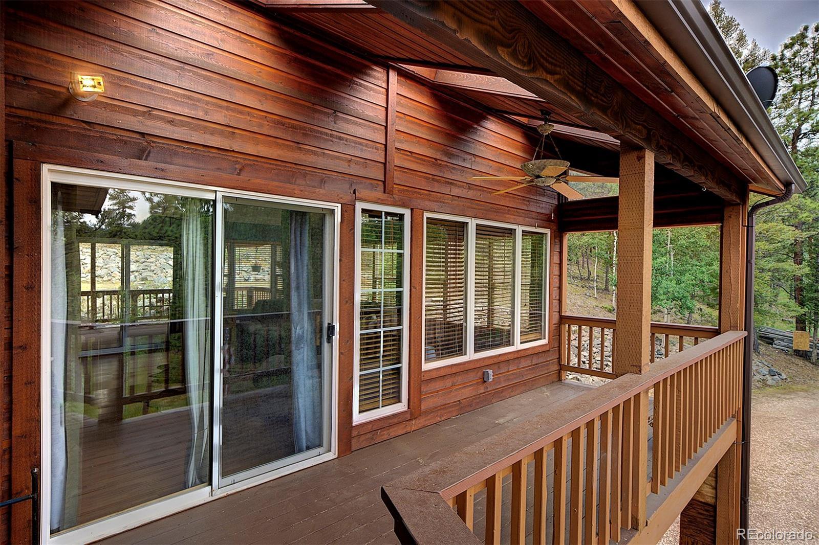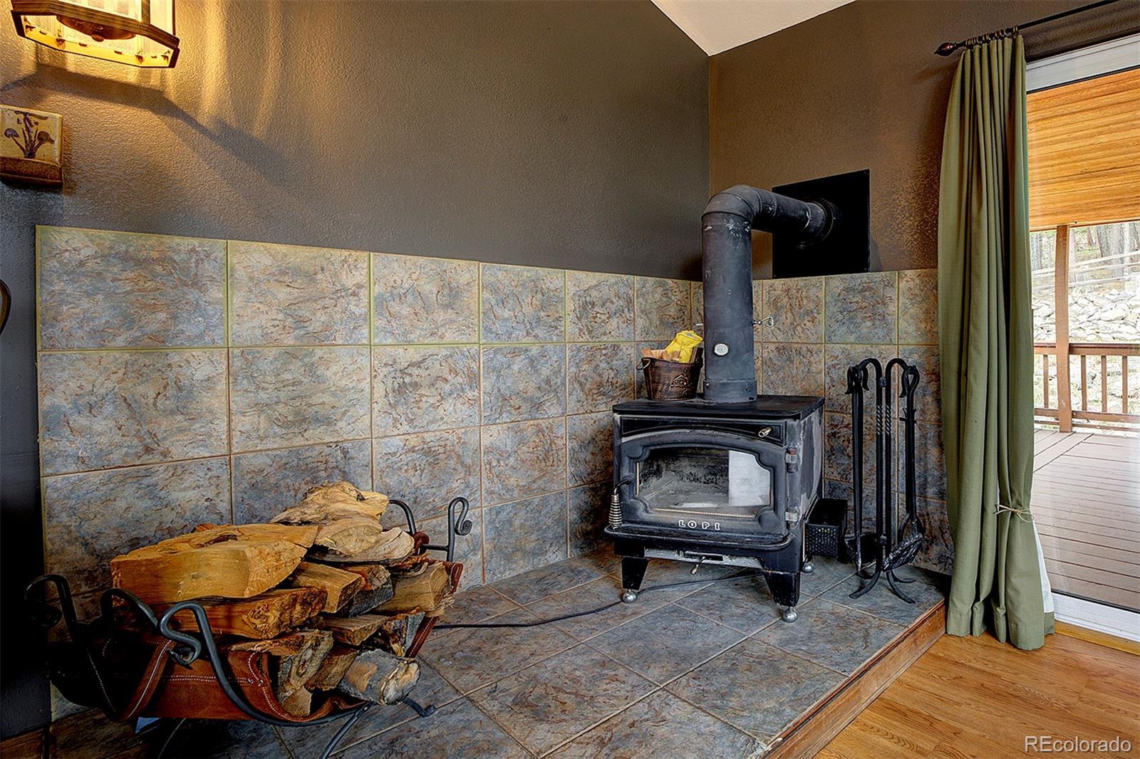 Welcome to your mountain retreat—where comfort meets charm and nature is just outside your door. Step through the custom leaded glass entry into an open, light-filled space with vaulted ceilings and beautiful oak floors. The remodeled kitchen (2023) is a showstopper, featuring leathered granite counters, a copper farmhouse sink, smart appliances, and a large island perfect for gathering. The Great Room invites cozy evenings by the wood-burning stove and easy access to covered decks—ideal for enjoying peaceful mornings or starlit nights. Two bedrooms and a full bath complete the upper level, offering comfort and flexibility. Outdoor living shines here, with a spacious covered back deck leading to a private yard, plus front decks offering mountain views and privacy among the trees. Downstairs, the main ground level offers even more space—a second family room with another wood stove, a third bedroom, ¾ bath, and a large laundry/utility room (where underneath the window is a favorite nap spot for a local buck!). Practical updates include a 3-year-old roof, newer pressure tank, two furnaces, and multiple wood and storage sheds. The attached garage features a dog door to a small secure run, and additional road access to the property allows for extra off-street parking—roomy enough for a trailer or 35’ RV. Septic system is rated for 2 bedrooms. This thoughtfully updated home blends rustic beauty with modern comfort—come see for yourself what mountain living can feel like. NOTE: this home has been named eligible for homeowners insurance through Jennifer Gann State Farm, agent will provide details.