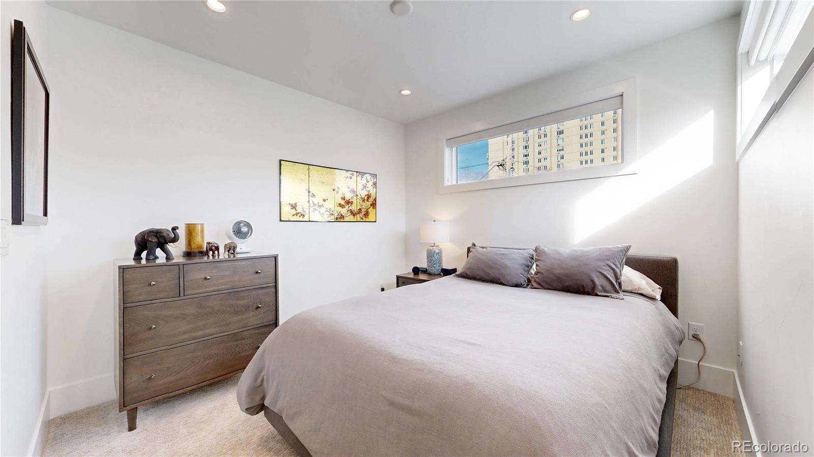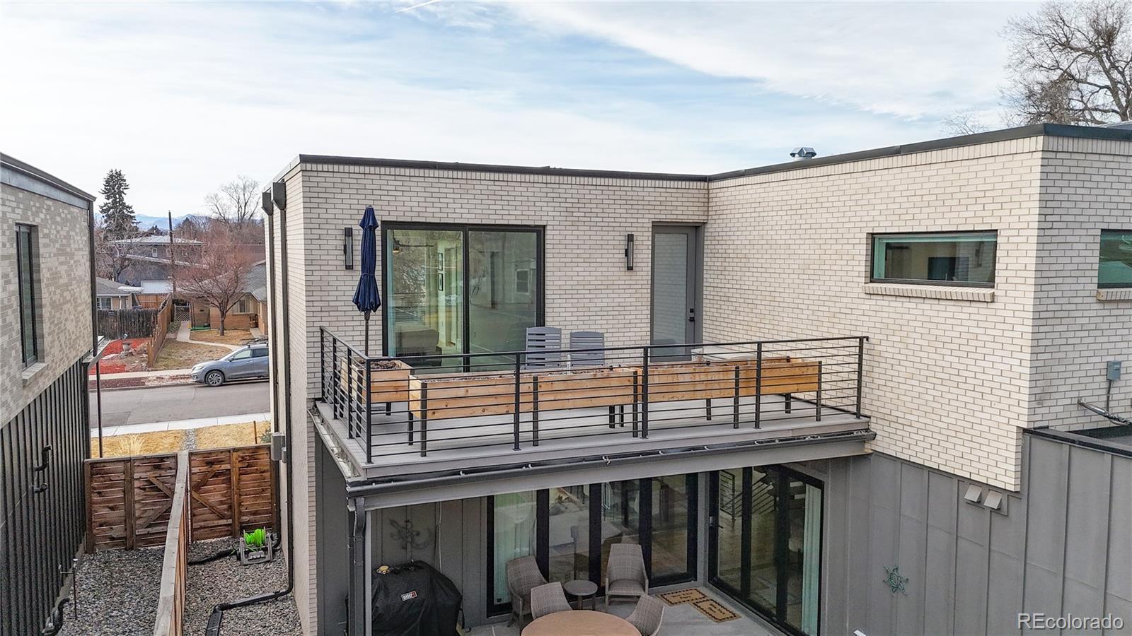 Situated between Sloan Lake and Highland Sq. Easy walk to either 3 bedrooms top floor—2 baths top floor-One is 3/4 and the master is a 5 piece bath. Also a large deck off upper floor with custom made planters Main level powder room, gorgeous kitchen with top of the line appliances, under cabinet lighting, quartz counters, built in expresso machine, pot filler, dining room, Wide plank wood floors, gas fireplace, living room built ins, living room has large accordion glass doors flowing out to the covered patio. Basement 1 bedroom and 1 3/4 bath and large rec room. Tall ceilings all floors. Upgrades after purchase: $55,000 / 22 panel solar system $35,000 Landscaping. New tree and bushes front and back $22,000 Custom made window coverings Upgrades paid separately to developer: $10,000 EV charger in garage, Coat closet from garage entry, Epoxy garage floor