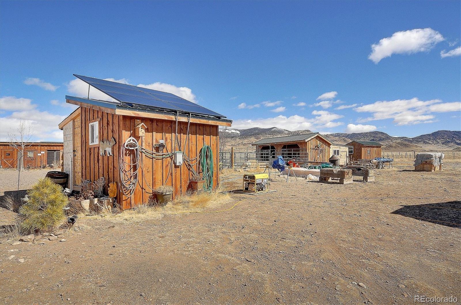 Escape to your own slice of wide open Colorado. This 40 acre property sits in the foothills outside Saguache, surrounded by endless mountain views and rolling grassland that stretches in every direction. It is a special setting that feels completely removed from the rush of the world yet close enough for supplies, connection, and year round access. The land is fully fenced and ready for horses, livestock, or your next off grid project. A domestic well is already installed along with solar power, generator backup, and multiple outbuildings that make the property both functional and flexible. The workshop is heated with a wood stove and set up for woodworking or mechanical projects, while the separate utility shed houses the solar components, water pressure tank, and refrigerator. There is also a barn structure for animals or storage plus an additional partially finished cabin addition that expands living space. Currently the property includes a comfortable fifth wheel setup with kitchen, living area, full bath, and bedroom, offering an immediate basecamp while you build out your vision. Whether you are looking for a hunting headquarters, an equestrian retreat, or a peaceful full time home in a quiet corner of Colorado, this spot checks all the boxes. With BLM land directly bordering the property and National Forest just beyond, you will have hundreds of miles of public land to explore, ride, hike, hunt, or simply breathe it all in. The panoramic views of the Sangre de Cristo and San Juan ranges are a constant reminder that this is still the real Colorado, raw, beautiful, and wide open.