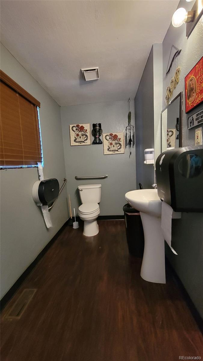 Great, centrally located office space! Main level currently has 4 office spaces, bathroom, reception area and secured office/break room, etc. Spiral staircase leads to a loft office with bath. Off street parking in back. Forced air, central air plus mini splits