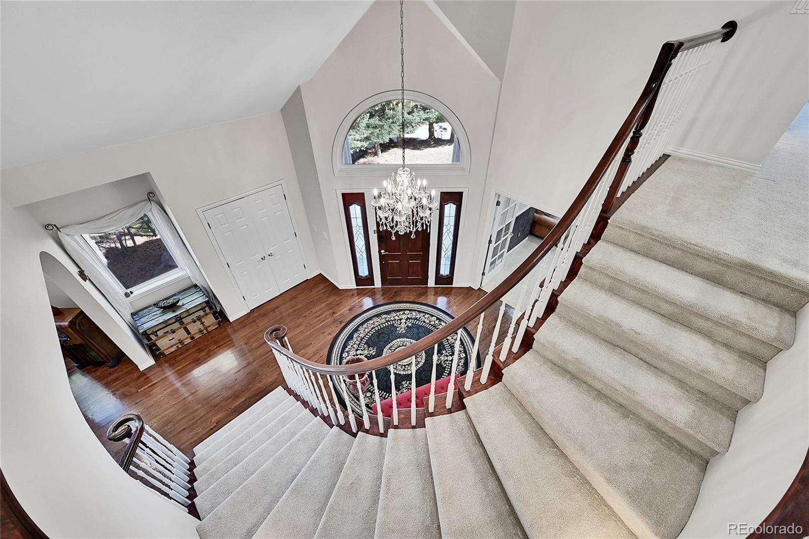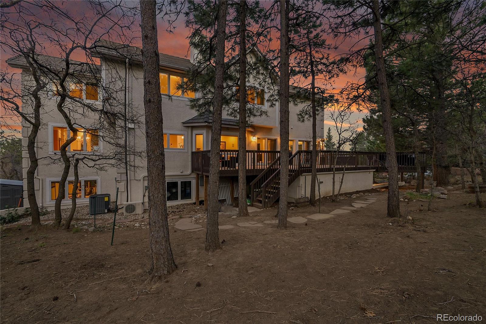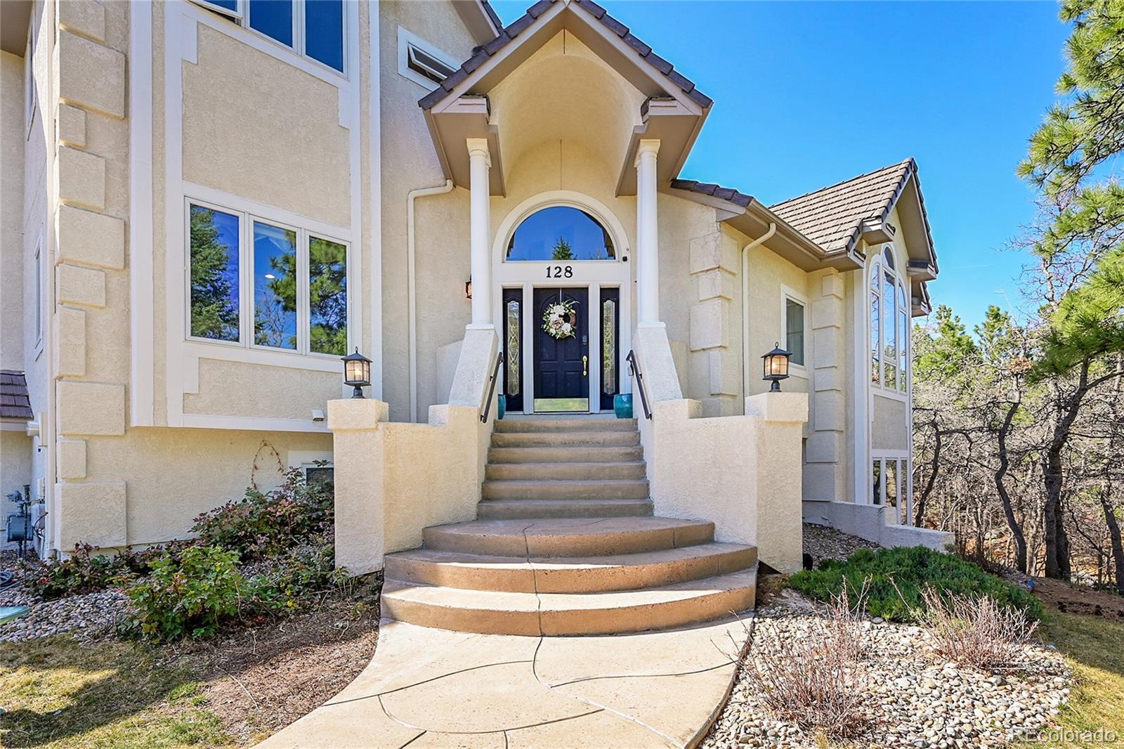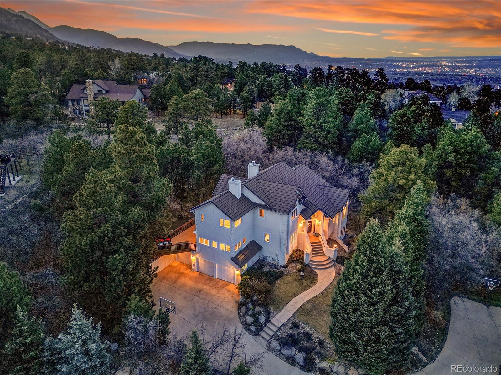 Discover timeless elegance and modern comfort in this stunning 5-bedroom, 5-bathroom custom home, quietly nestled on a tree-lined 0.6-acre lot in coveted Broadmoor Bluffs Park—without the restrictions of an HOA. Offering nearly 5,000 square feet of beautifully finished living space, this property was designed for both grand entertaining and everyday living. Step inside to an impressive two-story foyer with a sweeping staircase and sparkling chandelier that immediately sets the stage. The main level features a private office with custom built-ins, a formal dining room, a spacious living area, and an updated powder bath. The heart of the home is the gourmet kitchen, where rich cabinetry, granite countertops, a gas cooktop, and a butler’s pantry seamlessly connect to the dining room. A dual-sided fireplace warms both the adjoining family room and the sunroom, where natural light pours through walls of windows. Upstairs, the luxurious primary suite offers its own fireplace, a spa-like 5-piece bath, and a steam shower for the ultimate retreat. The fully finished walkout basement adds endless possibilities—home theater, fitness room, playroom, or private guest quarters. Thoughtful upgrades throughout enhance comfort and convenience, including radiant floor heating, refrigerated air, a whole-house fan, dumbwaiter, laundry chute, radon system, and a spacious laundry room with utility sink and storage. Outside, enjoy Colorado living at its best with a composite deck overlooking your wooded backyard sanctuary. The electric pet fence and lush landscaping make it easy to relax or entertain in complete privacy. This home blends sophistication with function in one of Colorado Springs’ most desirable neighborhoods. Schedule your private tour today and experience Broadmoor Bluffs living at its finest! See attached supplement for list of upgrades/updates to the home.