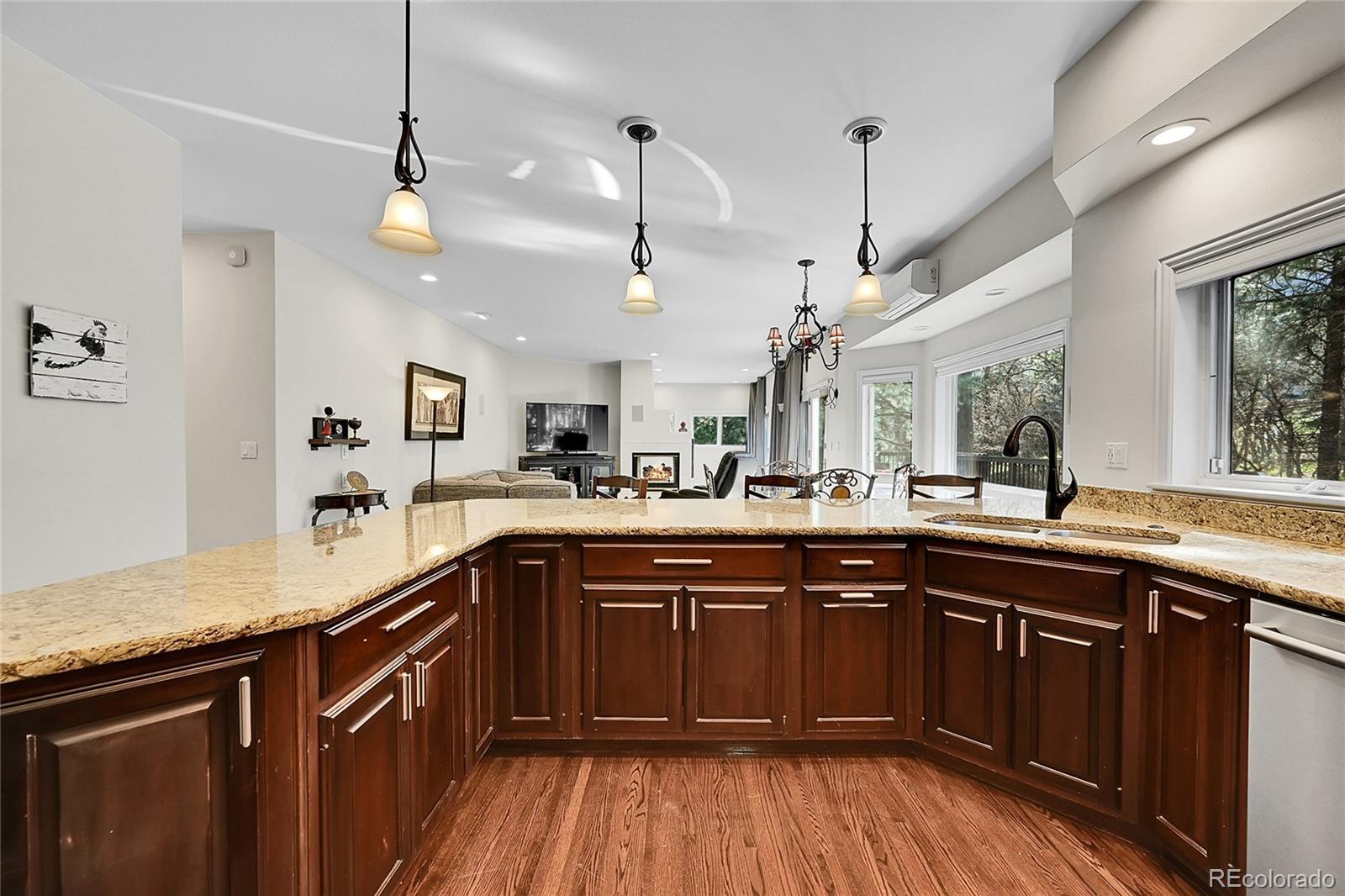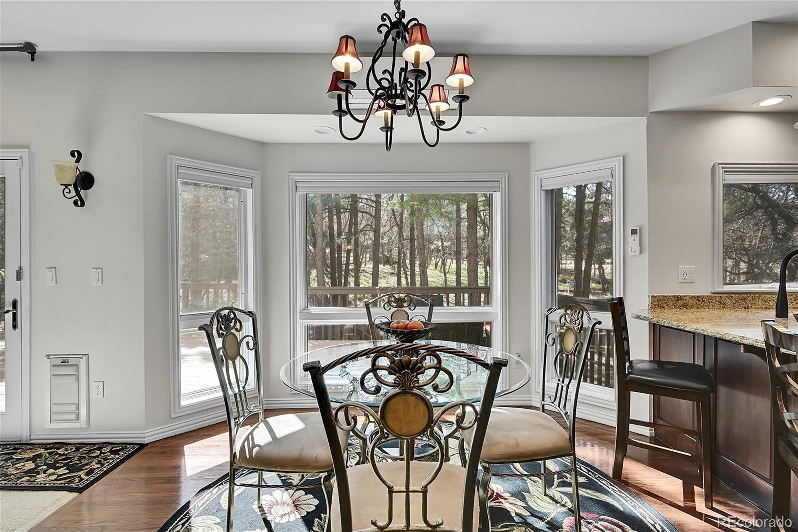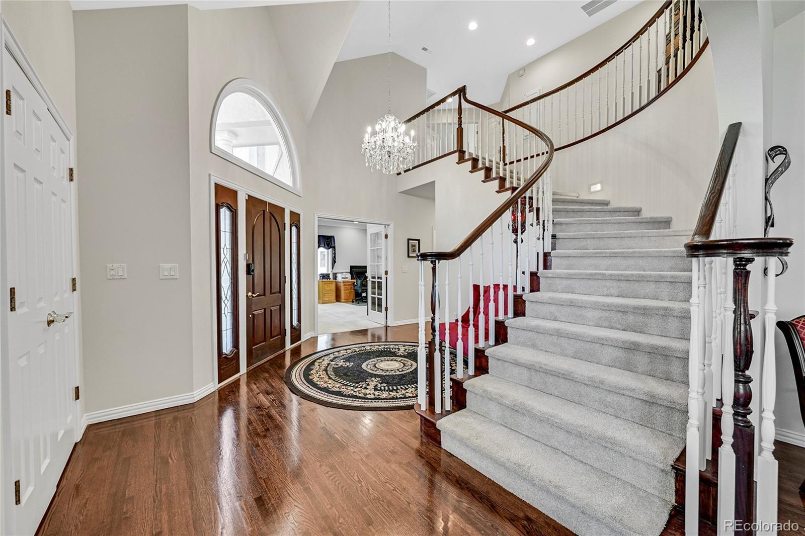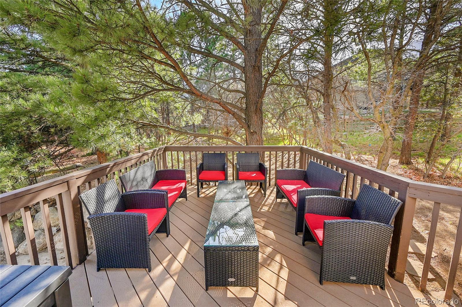 Discover timeless elegance and modern comfort in this stunning 5-bedroom, 5-bathroom custom home, quietly nestled on a tree-lined 0.6-acre lot in coveted Broadmoor Bluffs Park—without the restrictions of an HOA. Offering nearly 5,000 square feet of beautifully finished living space, this property was designed for both grand entertaining and everyday living. Step inside to an impressive two-story foyer with a sweeping staircase and sparkling chandelier that immediately sets the stage. The main level features a private office with custom built-ins, a formal dining room, a spacious living area, and an updated powder bath. The heart of the home is the gourmet kitchen, where rich cabinetry, granite countertops, a gas cooktop, and a butler’s pantry seamlessly connect to the dining room. A dual-sided fireplace warms both the adjoining family room and the sunroom, where natural light pours through walls of windows. Upstairs, the luxurious primary suite offers its own fireplace, a spa-like 5-piece bath, and a steam shower for the ultimate retreat. The fully finished walkout basement adds endless possibilities—home theater, fitness room, playroom, or private guest quarters. Thoughtful upgrades throughout enhance comfort and convenience, including radiant floor heating, refrigerated air, a whole-house fan, dumbwaiter, laundry chute, radon system, and a spacious laundry room with utility sink and storage. Outside, enjoy Colorado living at its best with a composite deck overlooking your wooded backyard sanctuary. The electric pet fence and lush landscaping make it easy to relax or entertain in complete privacy. This home blends sophistication with function in one of Colorado Springs’ most desirable neighborhoods. Schedule your private tour today and experience Broadmoor Bluffs living at its finest! See attached supplement for list of upgrades/updates to the home.