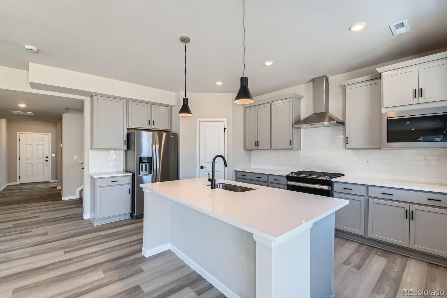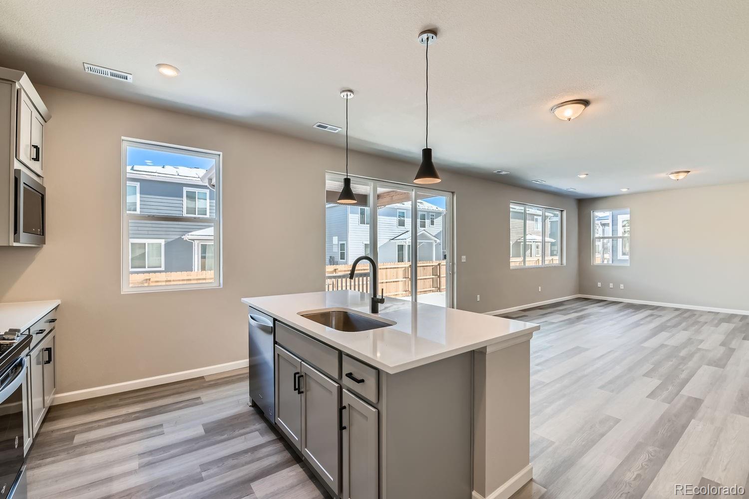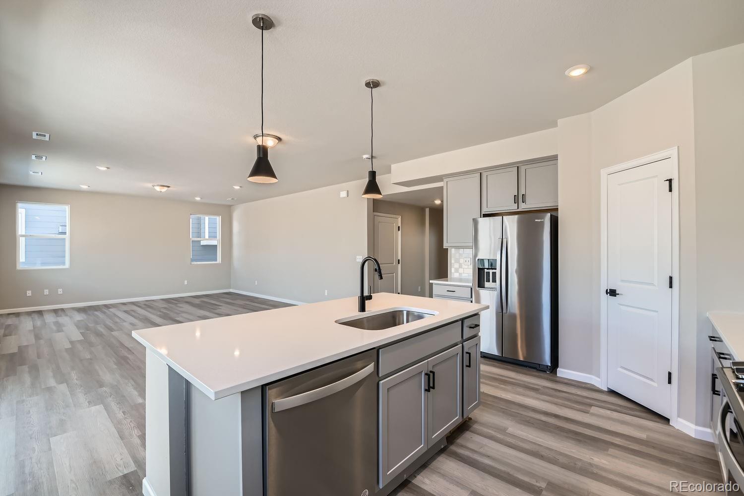 Financing incentives available!! Welcome to your dream home in the heart of Strasburg! 3 Car Garage! Ready in December 2025. This stunning 3-bedroom, 2.5 bathroom, study! This residence offers 2,253 square feet of beautifully designed living space, perfect for families, entertaining, or working from home. Step inside to an inviting open floor plan, featuring a spacious living area, a modern kitchen with stainless steel appliances, charcoal gray cabinets, granite countertops, and a large island. The primary suite is a true retreat, boasting a generous walk-in closet and a private ensuite bath with dual vanities and a soaking tub. Enjoy three additional bedrooms that are well-sized and versatile – ideal for kids, guests, a home office, or a playroom. Outside, you'll find a large backyard perfect for barbecues, gardening, or enjoying the peaceful Colorado evenings. Located in a quiet, family-friendly neighborhood, you're just minutes from local schools, parks, and easy access to I-70 for commuting to Denver or DIA. * EXAMPLE PHOTOS ARE NOT ACTUAL HOME. *