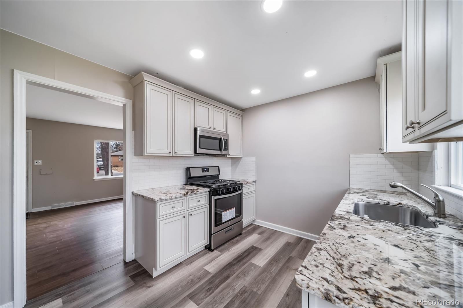 Charming Updated Ranch in a Convenient Aurora Location Welcome to this clean and refreshed single-level home featuring a functional layout and modern updates throughout. The bright living spaces offer neutral finishes and easy-care flooring, creating a move-in-ready interior that suits a variety of styles. Newer kitchen, which features updated cabinetry, modern finishes, and a streamlined layout perfect for everyday use. The updated bathroom showcases contemporary tile surround, a newer vanity, and a crisp, modern look. Outside, the property offers a spacious front yard, a private driveway, and an attached one-car garage for added convenience. Located in an established neighborhood close to parks, schools, shops, and major commuter routes, this home provides a great blend of comfort and accessibility. Perfect for those looking for a well-maintained, easy-living ranch home in Aurora.