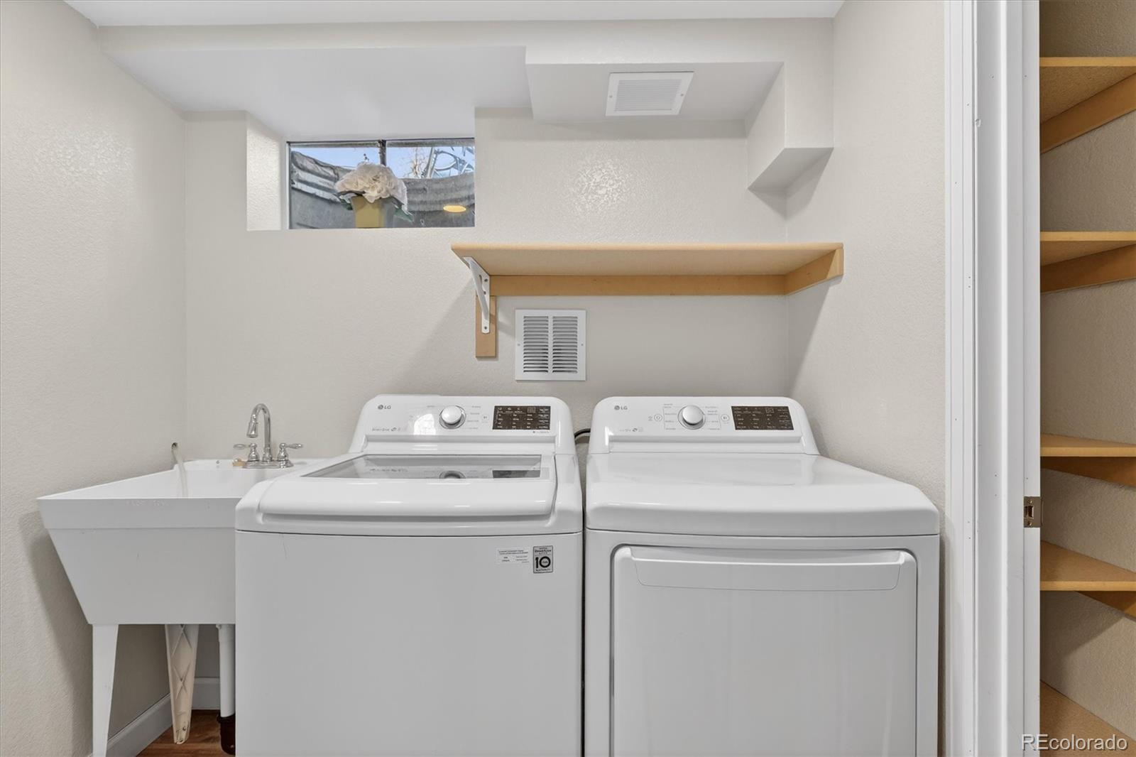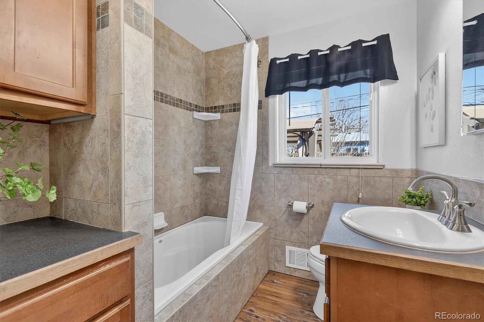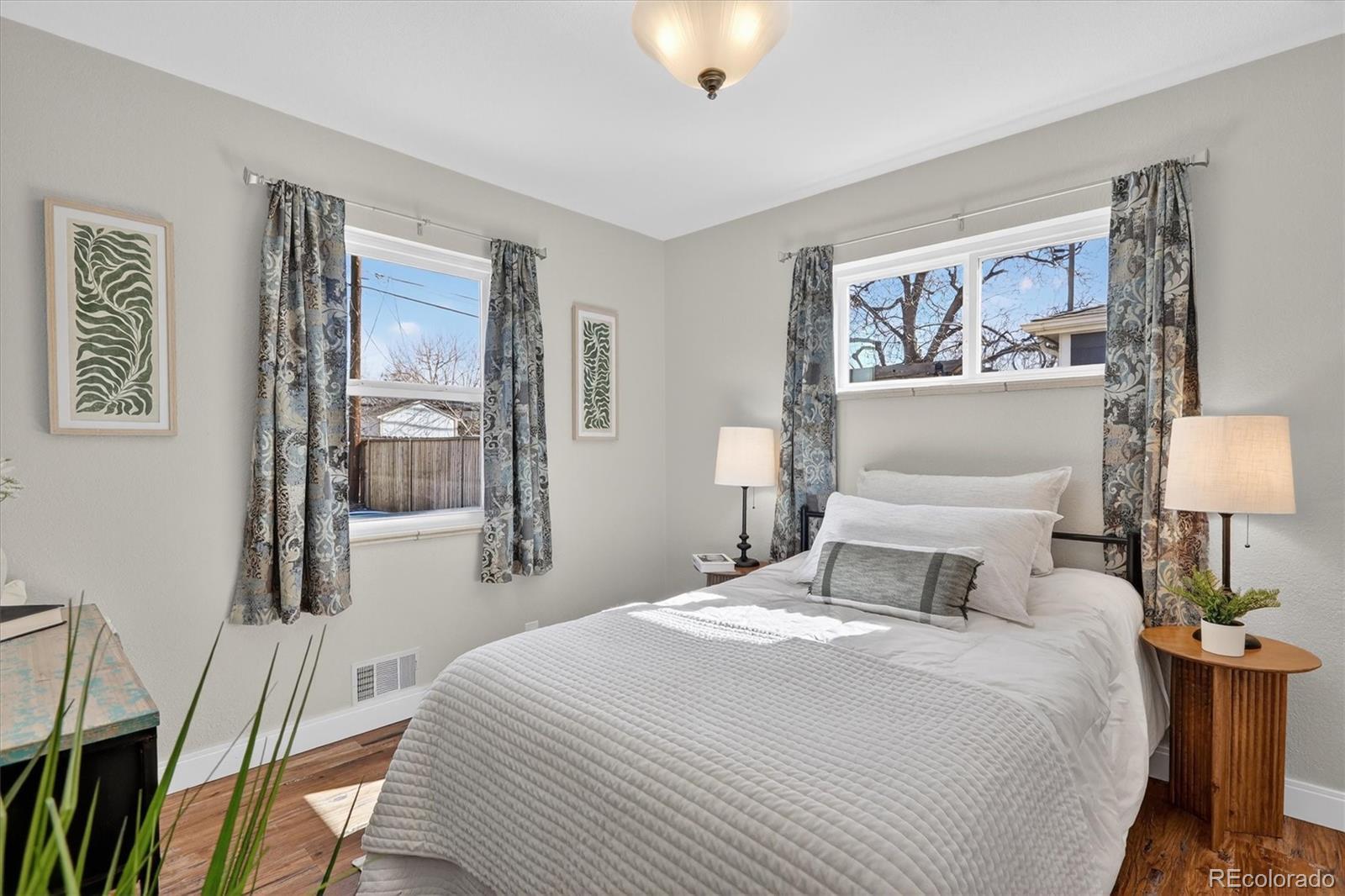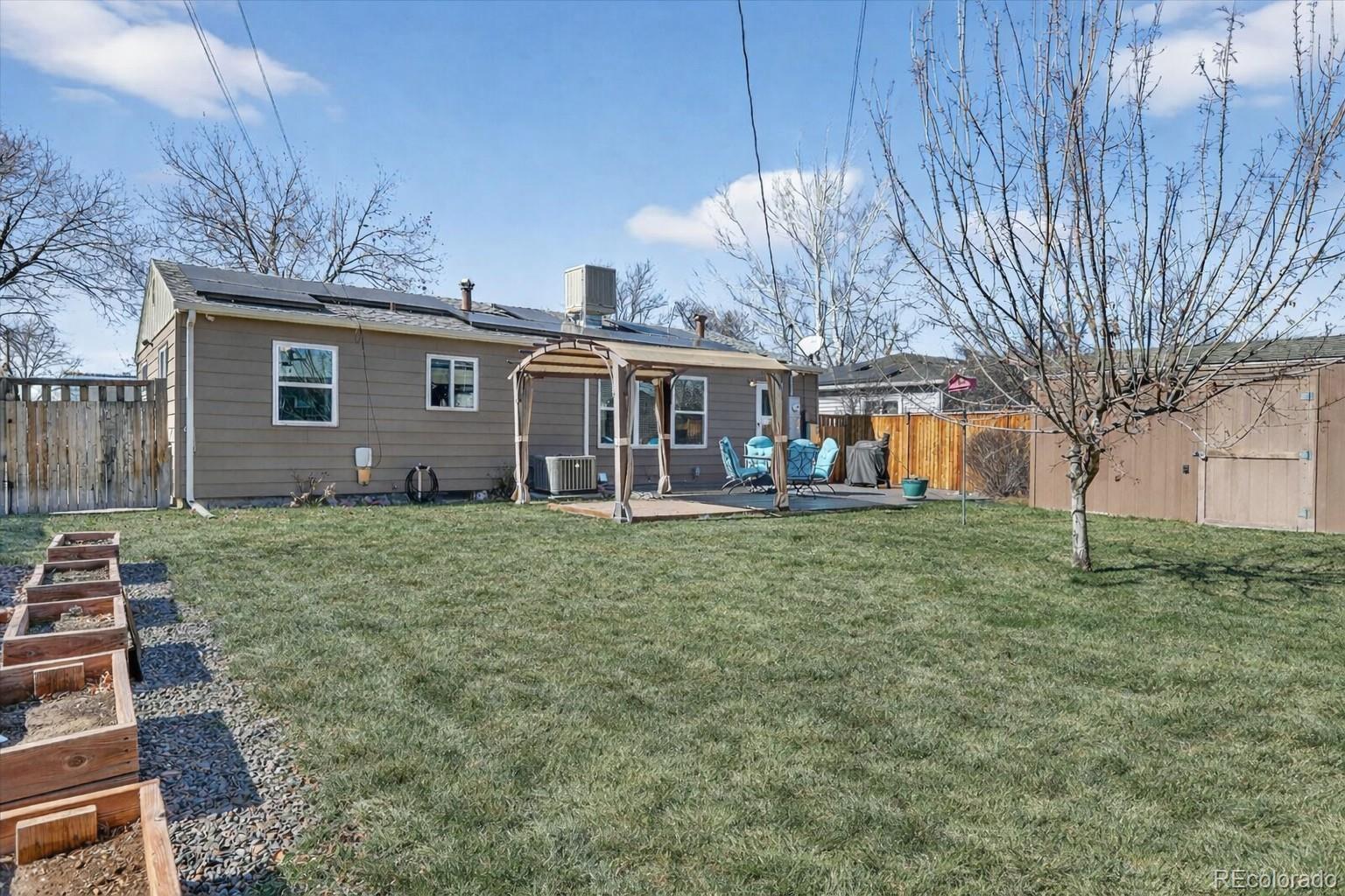 Light, bright, and beautifully updated, this home in the highly sought-after Virginia Village neighborhood blends modern style with timeless warmth—cherished by the same owners for over 30 years! The welcoming main level features three comfortable bedrooms and a full bath, along with a light-filled living room highlighted by a large picture window that fills the space with natural light. The updated kitchen is both stylish and functional, complete with granite countertops, stainless steel appliances, a gas range, and a generous dining area perfect for everyday living and entertaining. The finished basement expands the home’s versatility with a spacious great room, a fourth bedroom featuring a large egress window, and a newer ¾ bath—creating an ideal retreat for guests, work, or recreation. A dedicated laundry room with utility sink and included washer and dryer adds everyday convenience. Step outside to enjoy a flat, usable backyard designed for relaxation and enjoyment, featuring a patio, pergola, garden boxes, a large electrified storage shed, and an expanded driveway with double gates providing RV parking and off-street parking for several vehicles. Solar is already installed and ready for the new owner to take over, offering energy efficiency and long-term savings. With multiple off-street parking spaces and a prime location just minutes from shopping, dining, and easy access to I-25, this home offers classic appeal, meaningful updates, including a NEW ROOF to be installed prior to closing, and the rare opportunity to own a property that has been truly cherished—now ready to welcome its new owners home.