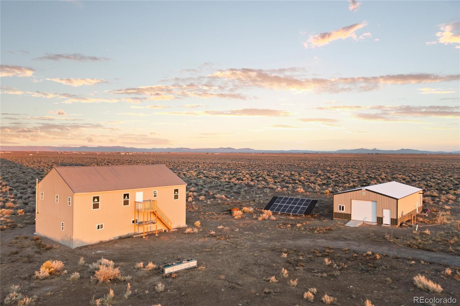 SELLER CONCESSION OFFERED allowing you to personalize the finishing touches to your taste! Exceptional barndominium-style home situated on 40 scenic acres with breathtaking views of Blanca Peak and the Sangre de Cristo Mountains. This property offers the perfect blend of functionality, self-sufficiency, and Colorado mountain living—complete with a two-story barndominium style home, a 30×56-ft. workshop with guest quarters, and ample room for expansion, livestock, or hobby use. Designed for versatility, it’s ideal for multi-generational living, a small farm, or income-producing potential. The main home features approximately 1,668 sq. ft. of open-concept living with a split floor plan, vaulted ceilings, and LED lighting throughout, plus balconies on both ends to capture panoramic mountain views. The primary suite includes a spacious bath and walk-in closet, while two additional bedrooms also offer walk-ins. Built for efficiency with 2x6 walls insulated with 6" spray foam insulation, lower level is 6" concrete block walls with 2.5" of Styrofoam on outside and inside, and 18" attic insulation. The home operates on owned solar power and is equipped for propane or electric appliances, supported by a double septic system for future expansion. The lower level adds another 1,668 sq. ft. of insulated recreation or shop space—perfect to finish as a game room, gym, or additional living area. The 30×56-ft. workshop includes 480 sq. ft. of finished living space featuring 1 bedroom, 1 bath, kitchenette, and loft, plus concrete floors, a craft area, and RV hookups, making it ideal for guests, projects, or rental use. Whether you’re seeking off-grid independence, homestead potential, or simply wide-open mountain views, this property offers it all—just minutes from Alamosa, Sangre de Cristo schools, and the Great Sand Dunes National Park. Enjoy nearby hunting, fishing, hiking, and natural hot springs, or take a scenic drive to Salida, Wolf Creek Ski Area, or Taos, New Mexico.