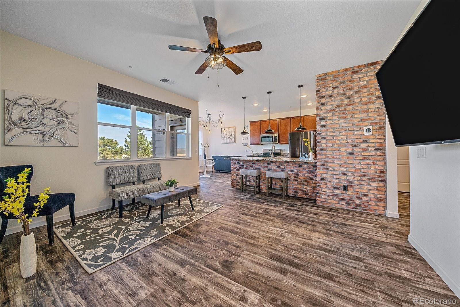 Happily ever after starts here! Experience contemporary vibes — right in the heart of Highlands Ranch! This nearly brand new and generously sized condo combines modern style with ultimate convenience in a gated community featuring a pool, fitness center, and clubhouse, private covered patio with mountain views. Enjoy effortless main floor living with reserved parking (#360) just feet from your private, main-floor entrance. Inside, you’ll find brand-new resilient flooring paired with ultra-plush carpet, plus motorized remote blinds (with remote control) throughout for that perfect touch of luxury. Open concept floorplan with spacious kitchen that is a showstopper with its massive slab granite island and breakfast bar, ideal for entertaining or relaxed nights in. A dedicated dining area and large living room make this open layout both inviting and functional. There’s plenty of storage everywhere — from the pantry and interior closets to the locked exterior storage off your covered patio, perfect for enjoying the Colorado outdoors year-round. You’ll even have a 4-foot-high crawlspace for bonus storage! With low taxes, plethora of visitor parking, and unbeatable access to nearby shops, dining, trails, and transit — this home truly has it all. HRCA access to 4 rec centers, trails, tennis & pickleball. Prime location near Lone Tree, Littleton, Greenwood Village, Park Meadows, UC Health, dining & shopping nearby at Highlands Ranch Town Center! Move-in ready and zero down payment eligible! FHA approved! Or buy as an investment property. Don’t miss out — schedule your private showing today before this Highlands Ranch gem is gone!