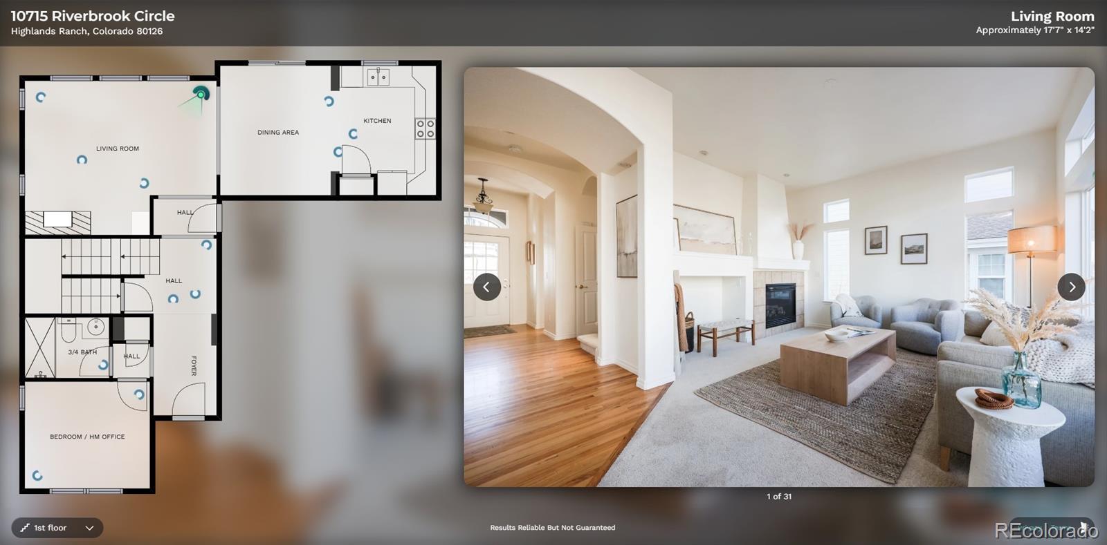 BOOK YOUR SHOWING APT TODAY! SHOWINGS START WEDNESDAY. Tucked onto a quiet circle drive in Firelight, this sun-filled, 4-bedroom home offers privacy, walkability, and over 2,000 square feet of excellent floor plan. Steps from Firelight Playground and a short walk to Mountain Ridge Middle School, Mountain Vista High School, Red Tail Park, and the beautiful Backcountry trail system, the location is both peaceful and connected. Features include a brand-new roof, south-facing driveway, and new kitchen appliances. The main floor is open, bright, and inviting, anchored by a beautiful living room with gas fireplace. The open-concept kitchen offers excellent workflow and connects seamlessly to a large dining area that opens to the backyard, ideal for gatherings, game nights, and BBQs. A main-level office or guest bedroom sits adjacent to a ¾ bath. Upstairs you’ll find the primary suite, two secondary bedrooms, and a spacious laundry room. The primary suite is a peaceful retreat, featuring mountain views, a five-piece bath, and dual walk-in closets. The secondary bedrooms are located down the hall and share a full bath. The fenced backyard offers space to play or relax, and the unfinished basement (with three full egress windows) provides bright storage today and easy opportunity to expand and customize over time. Thoughtfully maintained, well positioned, and priced competitively, this home delivers comfort, flexibility, and value in one of Highlands Ranch’s most sought-after neighborhoods. VIRTUAL TOUR AVAILABLE! If tour link does not populate automatically with this listing, text "RIVERBROOK TOUR LINK" to Listing Brokerage (full number *4929 available below) OR visit a direct MLS data source such as Nestfully.