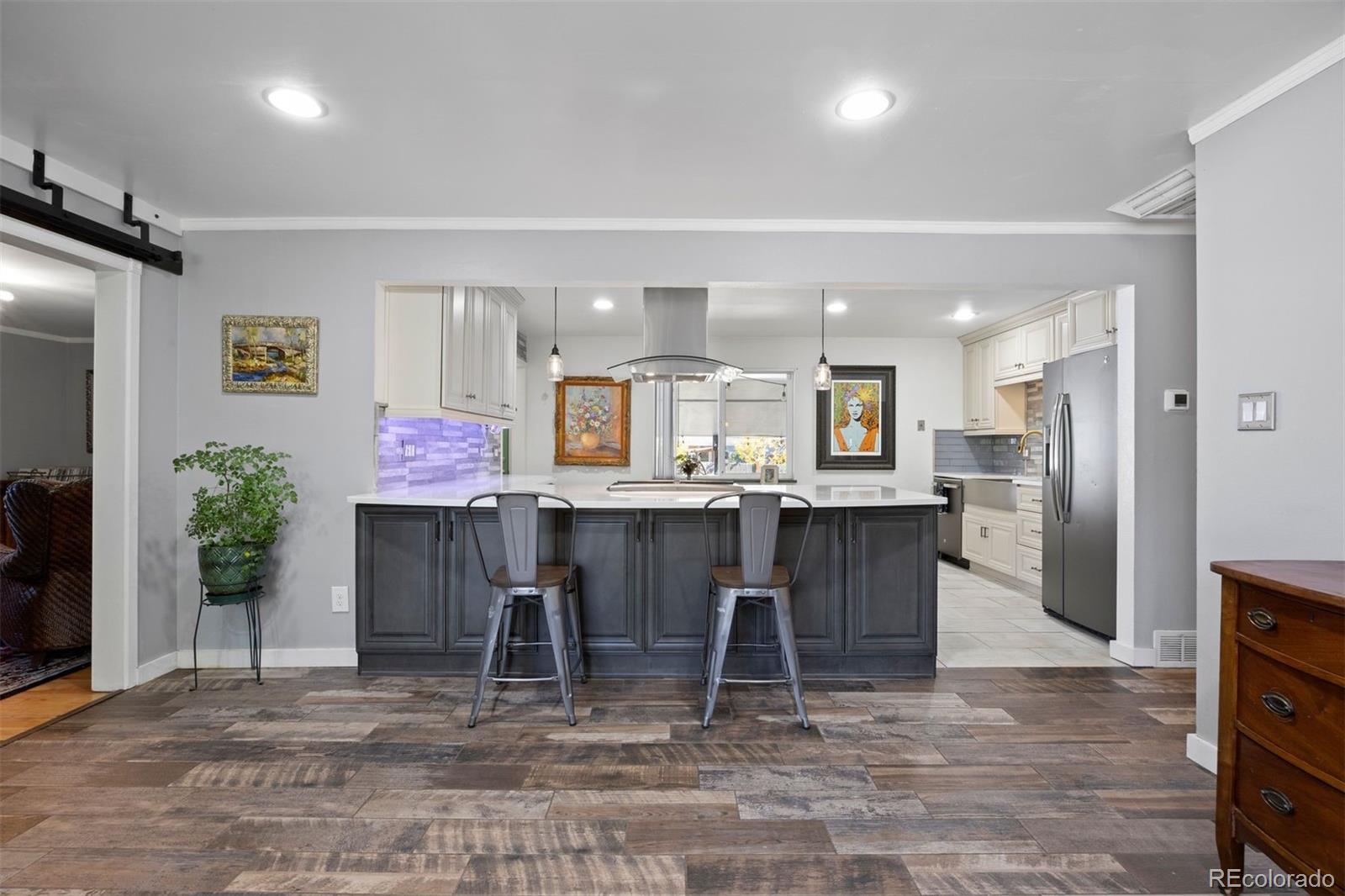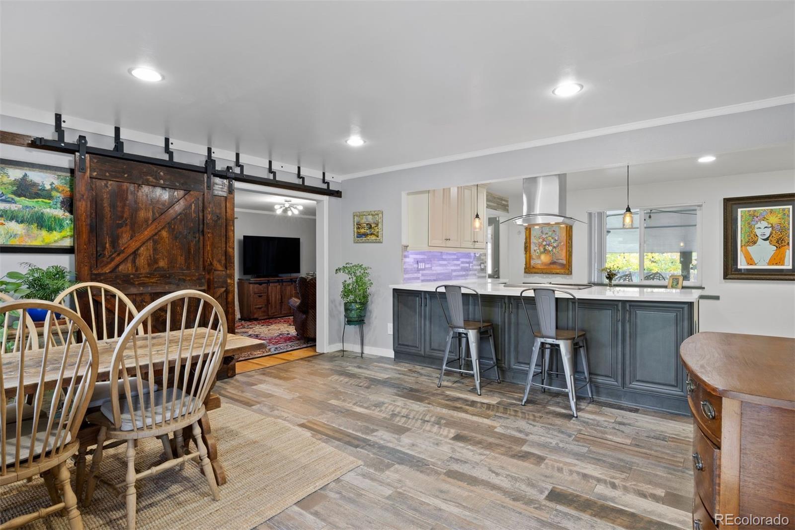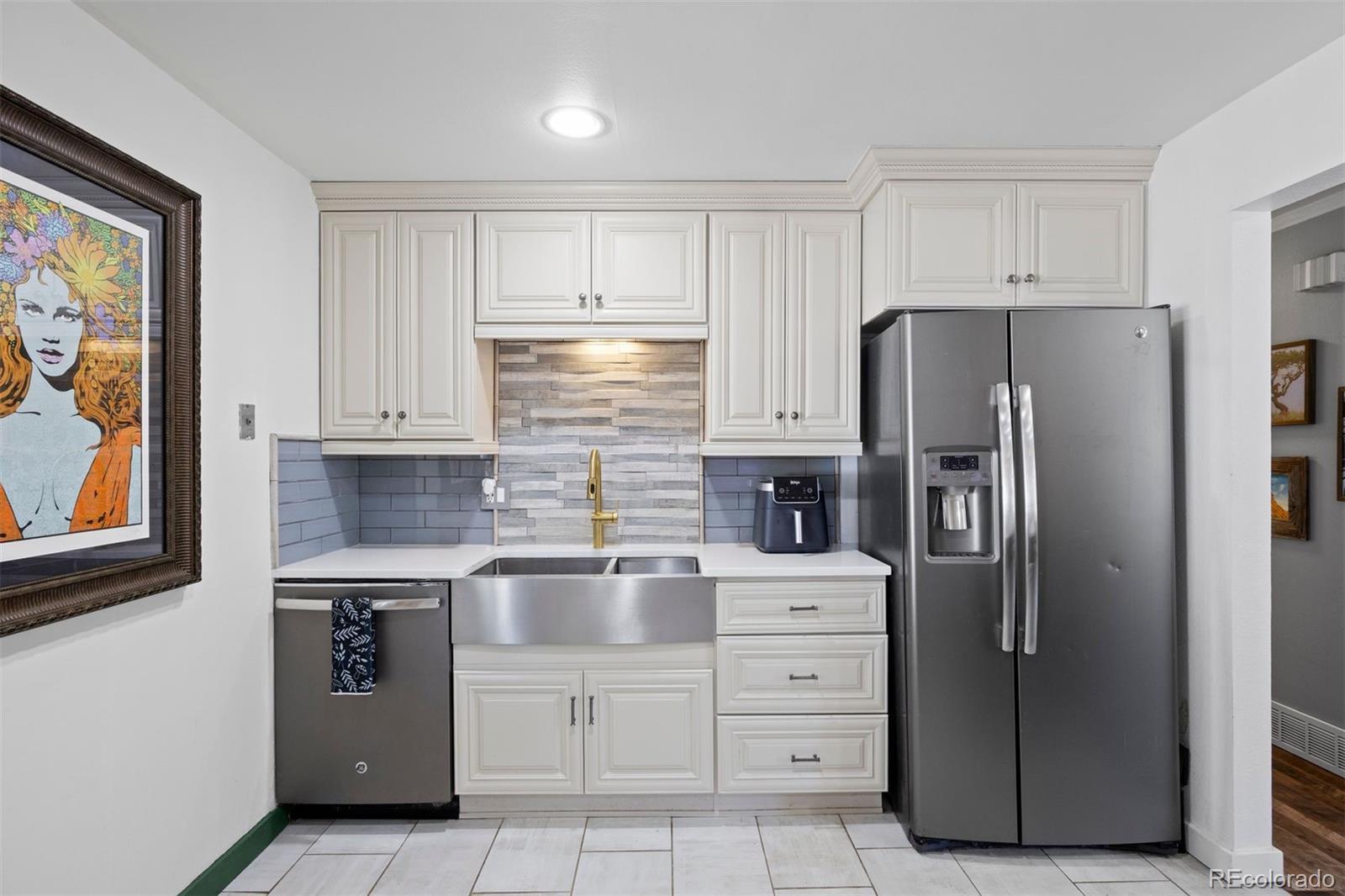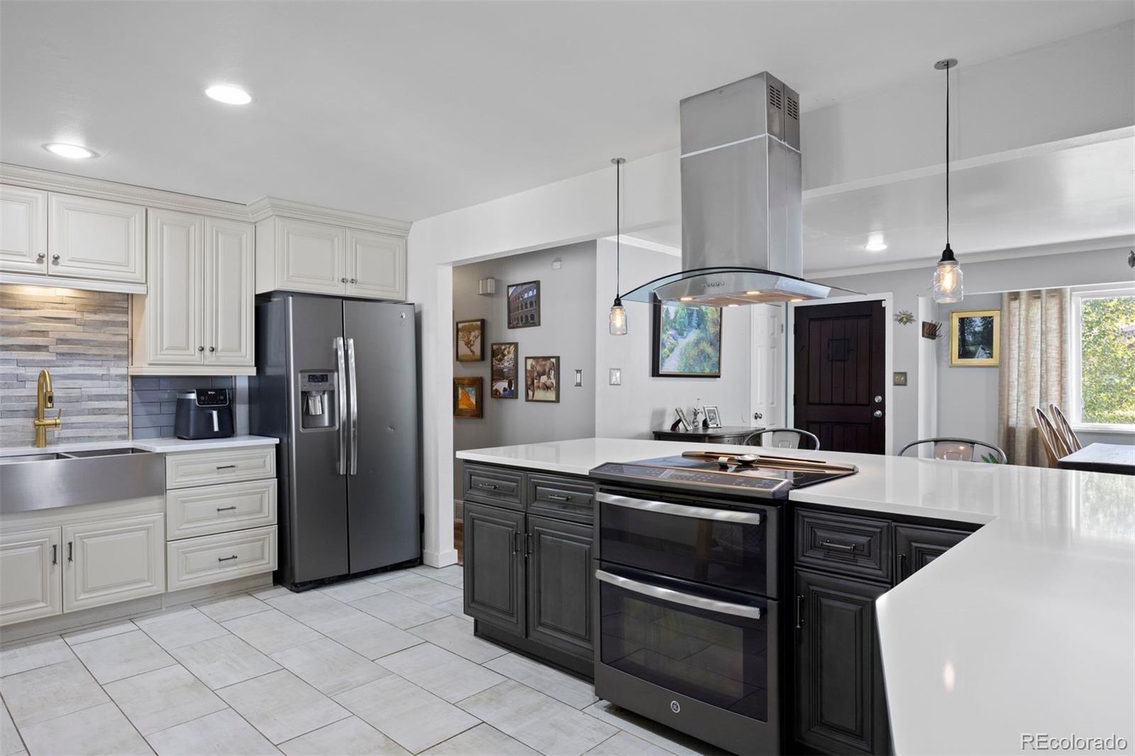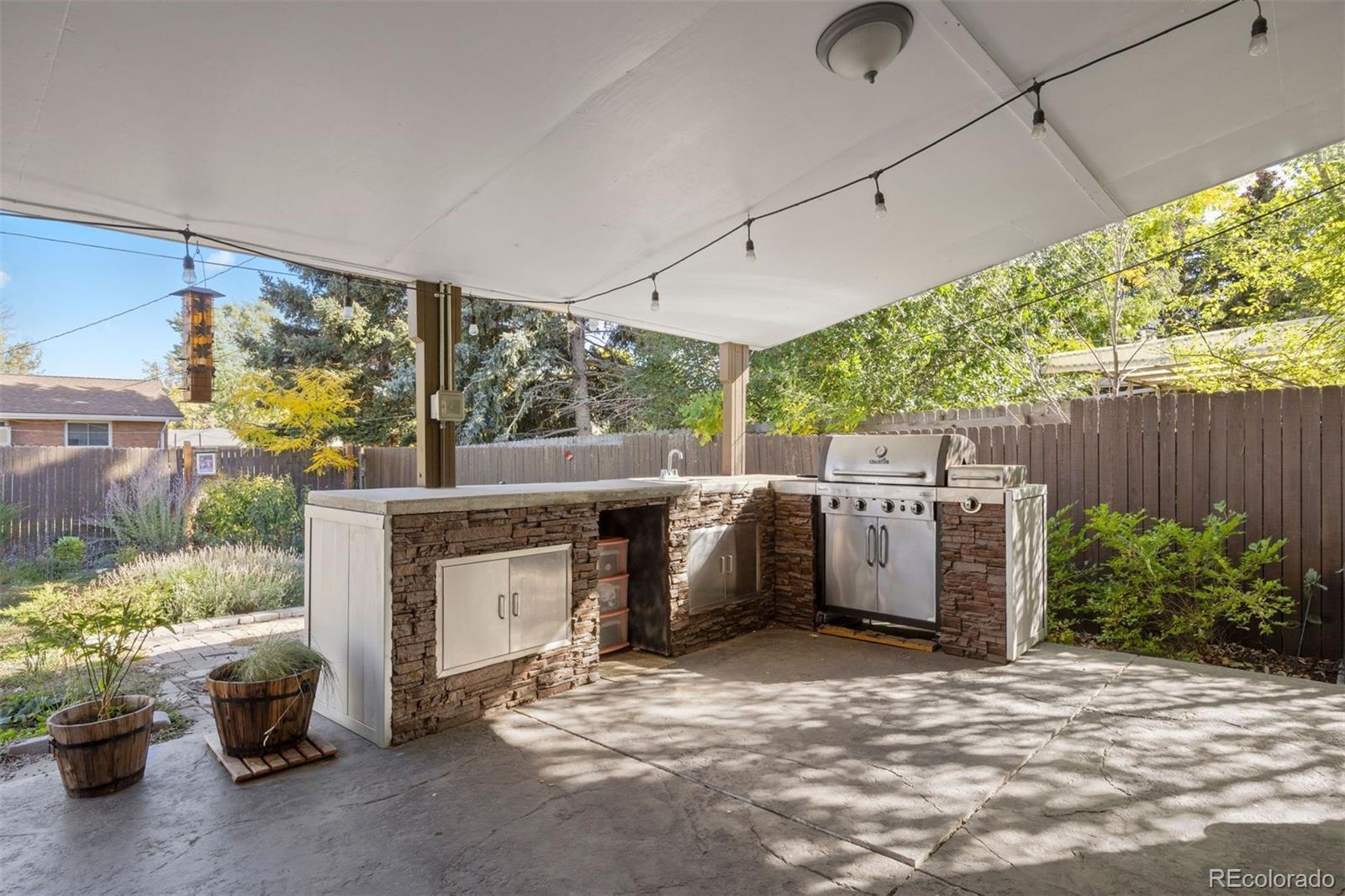 Wonderfully remodeled ranch in Lakewood’s desirable Cloverdale West with wide picturesque treelined streets! This 4-bedroom, 2-bath home sits on a spacious 8,146 sq ft lot and blends comfort, style, and true Colorado living. New Class 4 Impact Resistant Roof! Enjoy an open-concept kitchen with quartz countertops, glass tile backsplash, a center island with added cabinet storage beneath and stainless-steel appliances. The dining is adjacent the kitchen as the once garage has been converted into a cozy family room retreat. The main floor offers newer vinyl plank flooring as it leads you to the main floor full-bath followed by three versatile bedrooms. The current primary bedroom functions in the basement with a 3/4 bath that has a beautiful new tile finish. This home lives large with all the different living spaces and bedrooms so you can have home-office, exercise room and media room options. Air conditioning bonus addition. Step outside to your backyard oasis, a beautifully landscaped retreat with raised garden beds and mature perennials with coneflowers, lavender, black eye susan, tall grass and lily bulbs to name a few. Mature seasonal base perennials that will delight as seasons change. Low maintenance and Colorado friendly. An expansive covered patio complete with a built-in gas grill and edison lighting strung about, perfect for entertaining year-round. The oversized, finished, and insulated 2-car detached garage offers epoxy floors, extra storage, and plenty of off-street or RV parking (no HOA!). Just a short walk to Kendrick Lake Park and nearby trails, and minutes to Belmar shopping & dining, Green Mountain, and Red Rocks Amphitheatre. This is more than a home, it’s the Colorado lifestyle you’ve been waiting for.