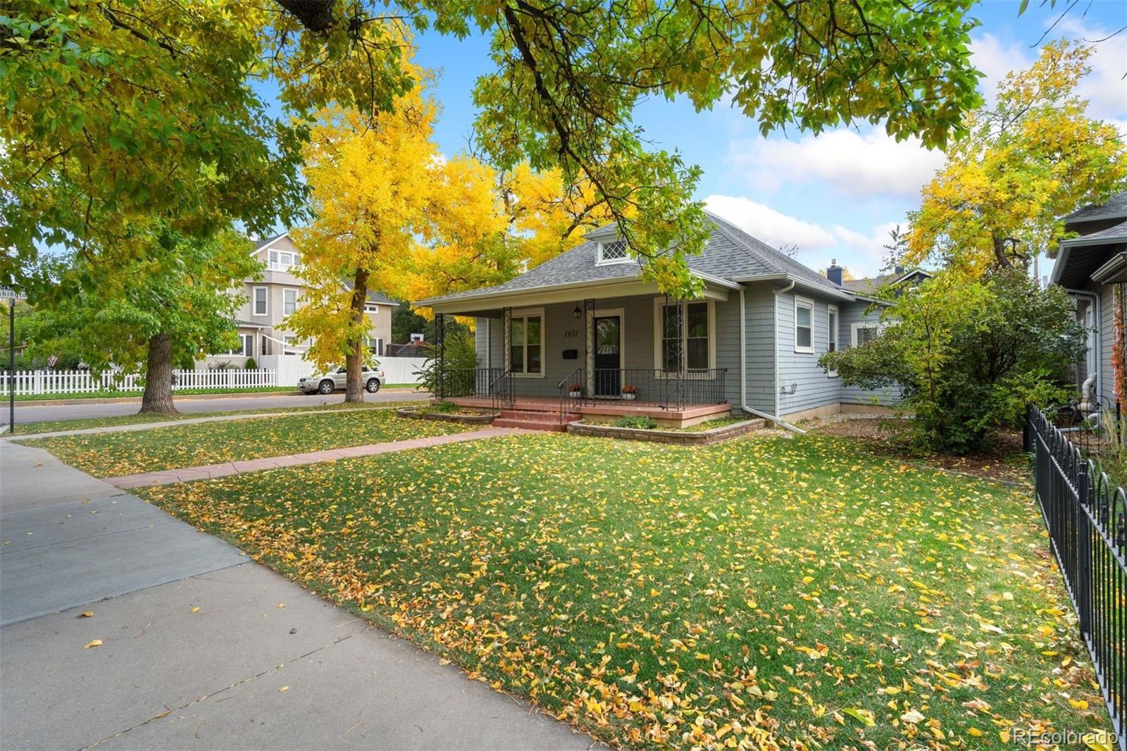 Welcome to this charming 2-bedroom, 1-bathroom bungalow located in the heart of the Historic Old North End Neighborhood. This main level living home is situated on a serene, tree-lined street within the Steele Elementary School boundaries. Its prime location offers the perfect blend of tranquility and convenience, as it's centrally located near downtown Colorado Springs with easy access to I-25 and within 2 blocks from Penrose Main Hospital. Monument Valley Park is just a few blocks to the West with walking and biking trails. The inviting covered front porch beckons you to relax and soak in the neighborhood's timeless charm and to watch Colorado Sunsets. Step inside, and you'll be greeted by the warmth of the original solid hardwood floors that have been refinished. The living room boasts a fireplace with authentic Van Briggle tile adding character and a touch of history to your everyday life. Tall ceilings enhance the sense of space and airiness, creating an inviting atmosphere.The kitchen and bathroom have been thoughtfully updated to provide modern convenience while preserving the home's historic charm. The primary bedroom has a walk in closet and an adjoining sun room that makes a perfect home office space. The house is move-in ready with custom blinds throughout. The house underwent a major renovation in 2008 with new electrical & plumbing and an extension to the kitchen to allow for an eat in table & chairs. The furnace and roof were replaced in 2017 and the central AC was added in 2020. Complete with a fully fenced back yard and a detached 1 car garage. Good things come in small packages! Schedule a showing today.