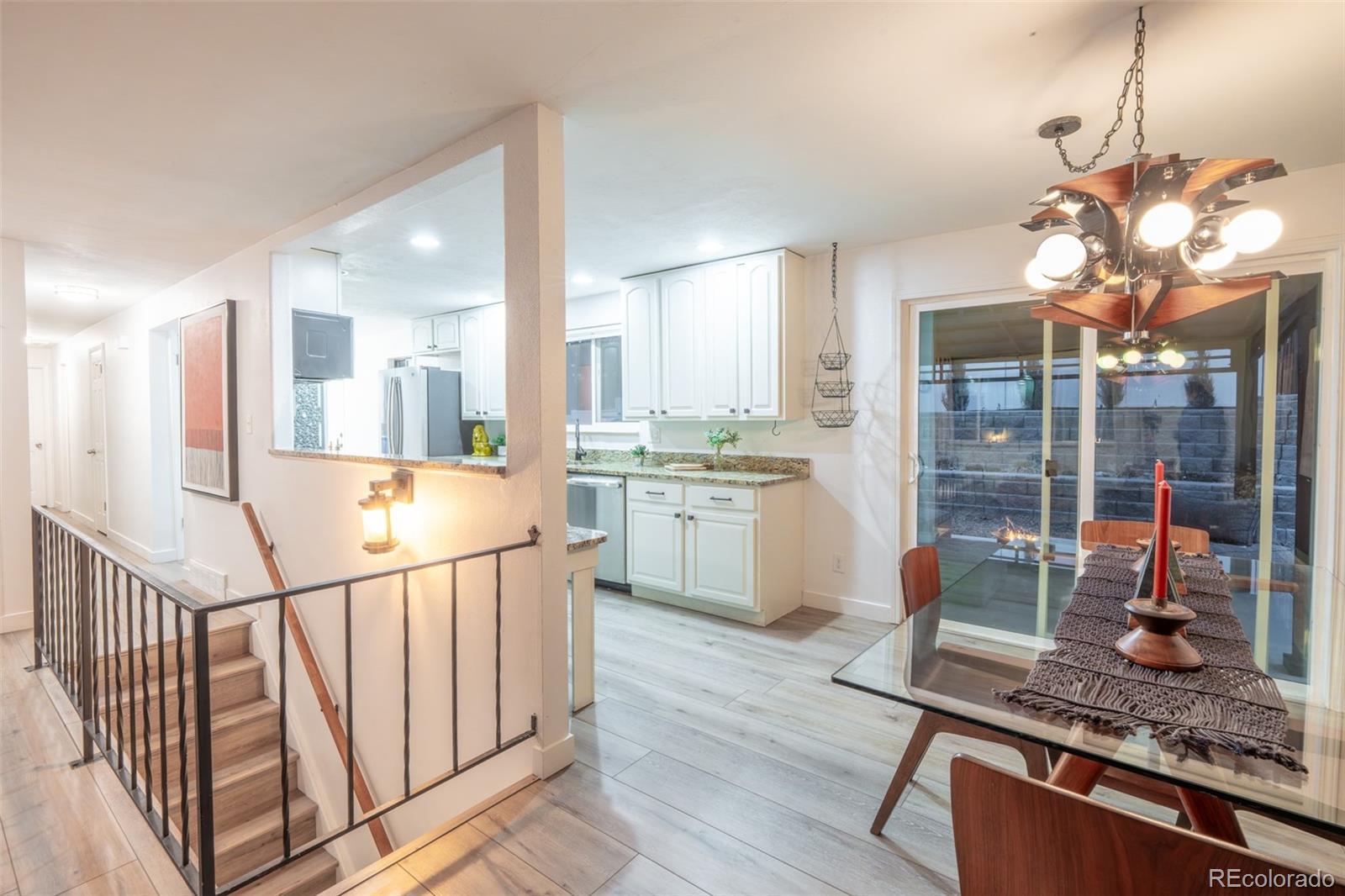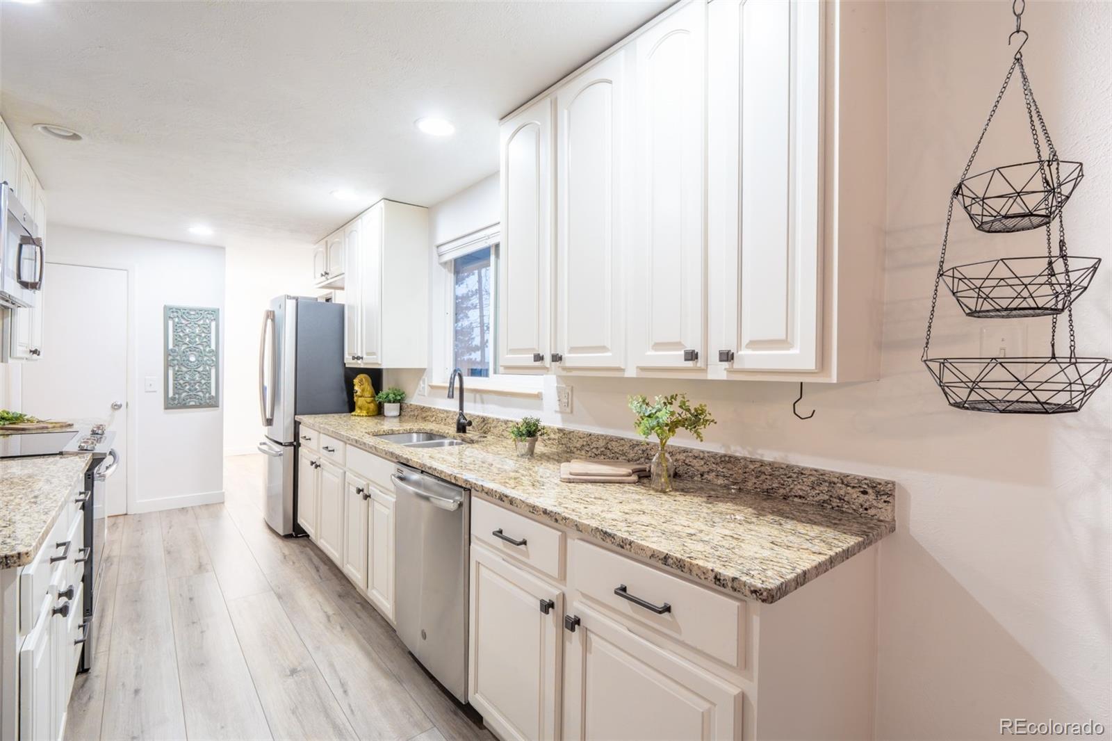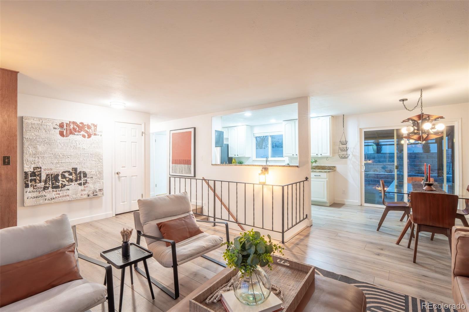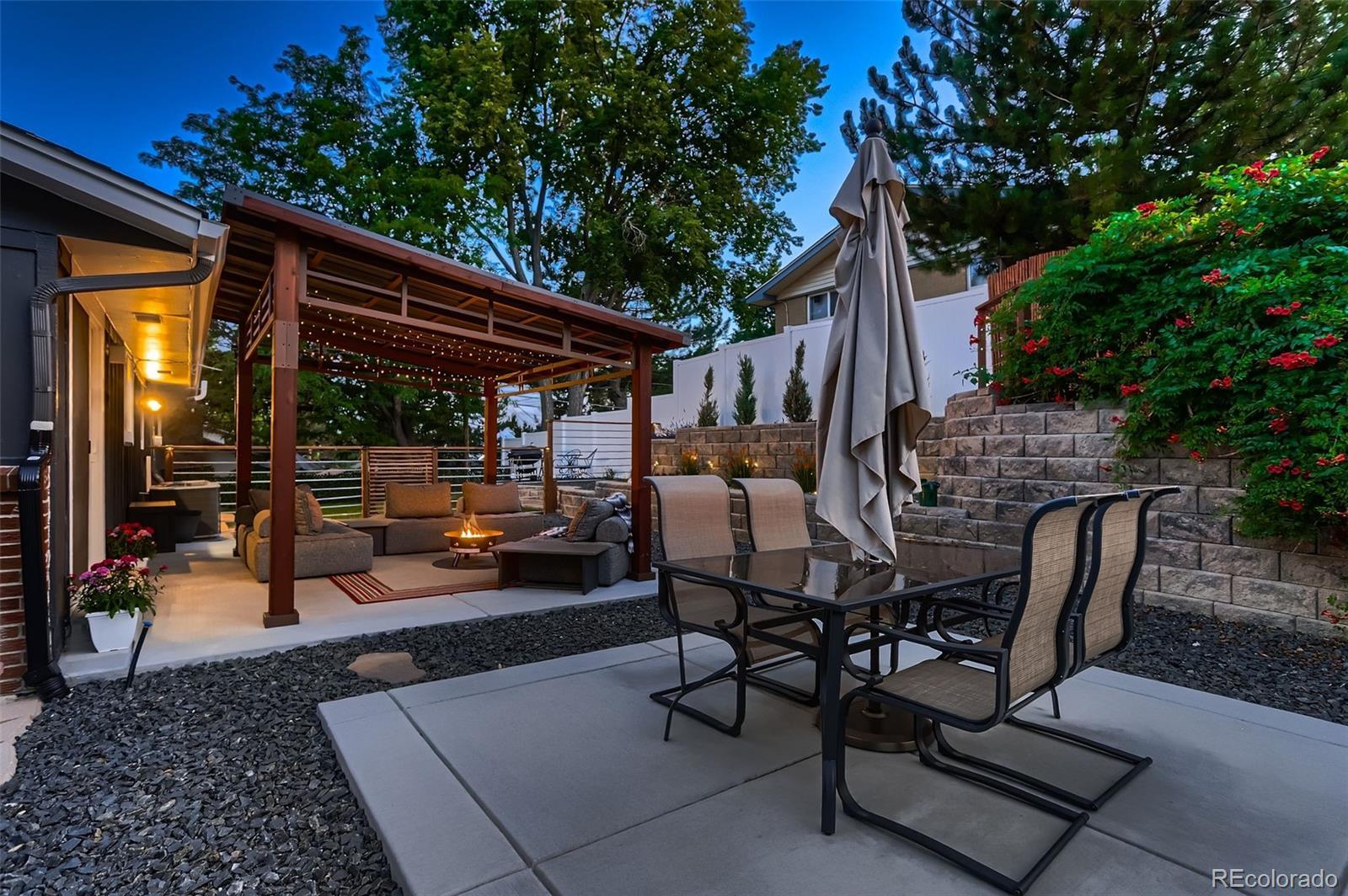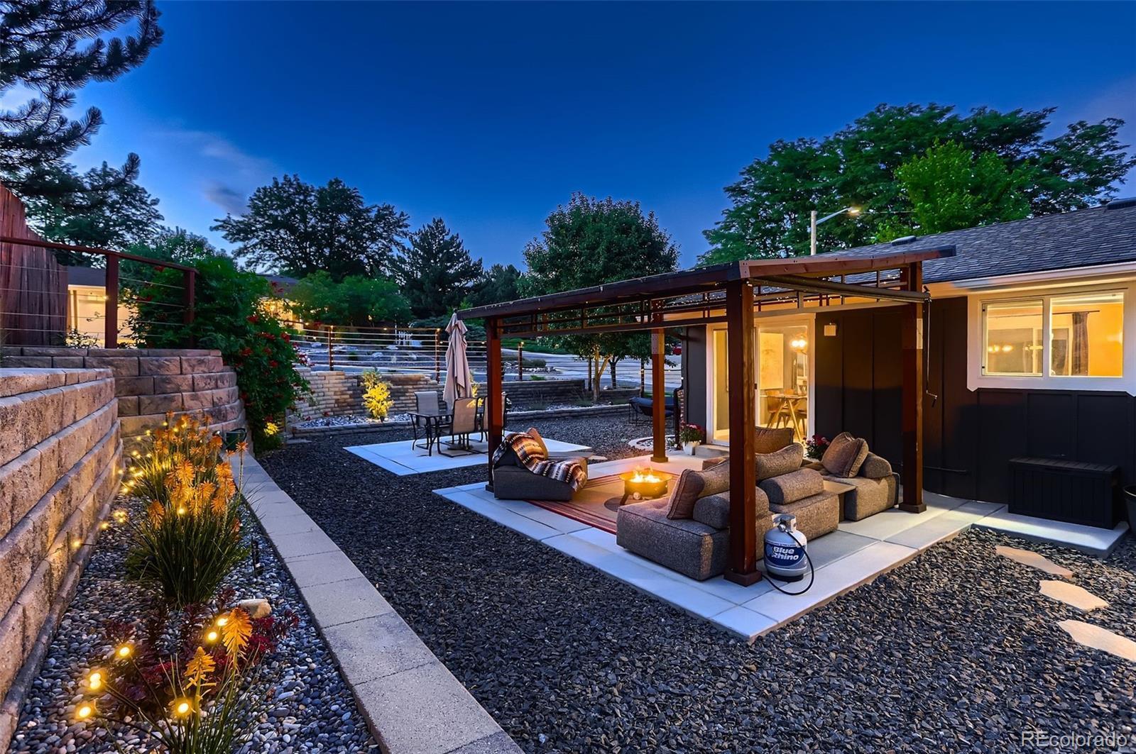 This ranch-style home in the coveted Scenic Heights neighborhood is turnkey and an outdoor entertainer's dream - a remodeled 2,139 sq ft gem with 4 bedrooms and 2 baths on a generous corner lot. Tucked minutes behind Majestic View Park and Nature Center, which boasts trails, lakes, green spaces, and great views of the Front Range, this neighborhood is one of Arvada’s best-kept secrets. The quiet tree-lined streets, surrounded by other unique & beautiful homes, create a peaceful neighborhood with a distinct character. The fully fenced backyard is meticulously landscaped with terraced gardens and seating areas. It boasts a four-season patio with a fire pit, all of which was renovated in 2024. A separate fenced yard is ideal for pets or a kids’ play area. Step inside to find wide-plank wood-look LVP flooring that flows through the main level, complemented by tasteful designer paint. The lovely kitchen showcases custom cabinetry, granite countertops, and stainless-steel appliances, all adjacent to a dining area that seamlessly opens to the patio on one side and a bright, cozy living room on the other—ideal for hosting and everyday comfort. The main floor features three bedrooms, including a primary suite equipped with a walk-in closet and private bathroom. Downstairs in the fully finished basement, discover a larger family room, the fourth bedroom, rough-in for a 3rd bath, and versatile storage zones or flex space—perfect for home office, gym, or hobby room. Exit the basement to the home’s 2-car garage. This home also boasts a new furnace, central AC, and new exterior paint, all completed in 2024. With an 8-minute drive to Olde Town Arvada’s vibrant dining and entertainment, 10 minutes to Apex Recreation Center, and easy access to I-70 and downtown, you will feel like you’re a world away from the city while being right in the heart of it. Nestled in this idyllic neighborhood, this updated, modern ranch isn’t just a home, it’s an escape.