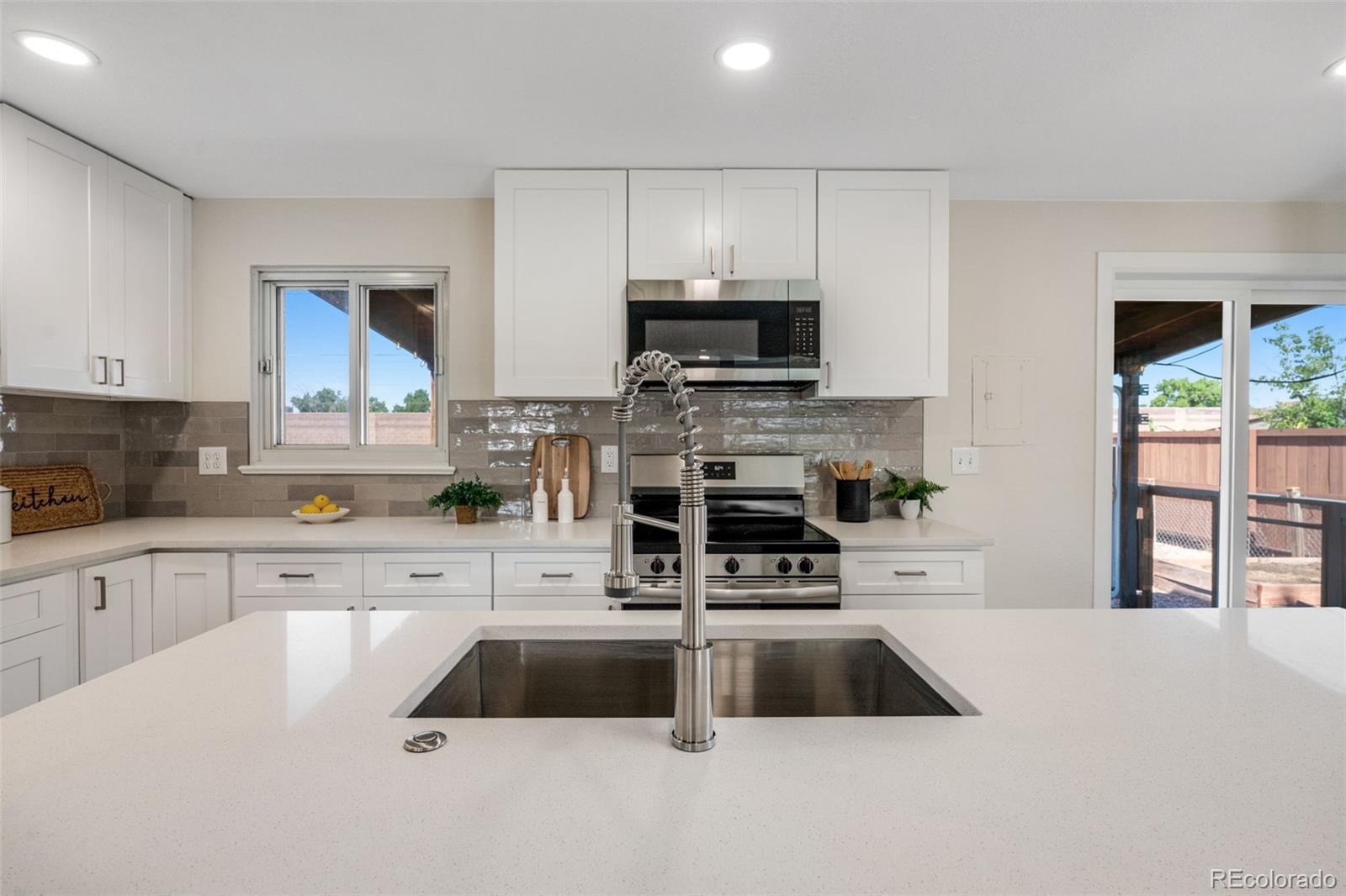 MUST SEE - Be the 1st to live in this completely renovated 4 bedroom/2 bath solid brick home on a huge private lot in a quiet neighborhood close to a park. Main floor living/open floor plan, spacious bedrooms, quartz counter tops and dining pass through. The home has been remodeled top-to-bottom with a new kitchen with all new stainless appliances slow close cabinets, 2 new bathrooms, beautifully finished original hardwoods and a new roof and don’t forget ICE COLD air conditioning. All faucets have LED light indicating temperature. Bedrooms have built in optional night lights - Must see Modern features. Buyer will only have to move in and enjoy this "like new" home. There is room for a 5th bedroom or Office in the basement as well. Discover this exceptionally remodeled gem in a sought-after neighborhood! Just a short walk to the beautiful Cottonwood Park with an amazing playground. Yard features Mature trees, sheds (2) and a large private fully covered back patio directly off the kitchen. Large fenced private back yard. Just a short walk to Fitzsimmons Medical Complex and the Light rail that can take you to Anschutz Medical Campus, UC Health, VA hospital, Children's Hospital, DIA, Central Park and the Aurora Mall. Central to everything downtown via Colfax Ave. Convenient to major freeways: I225 & I70. This home is a rare find. Don't miss out on this unique opportunity to maximize your investment in one of Aurora's most south-after areas! Everything has been updated/remodeled. Sewer line has been cleaned and scoped. Possible Large garage or shop could be built in back yard.