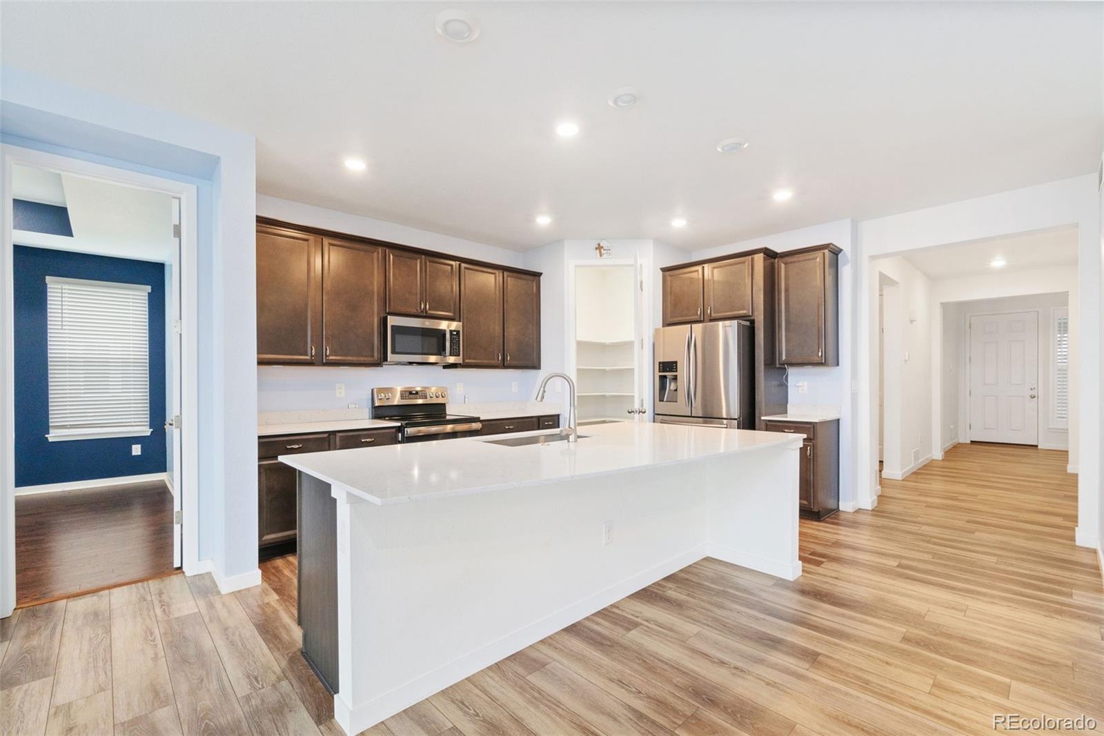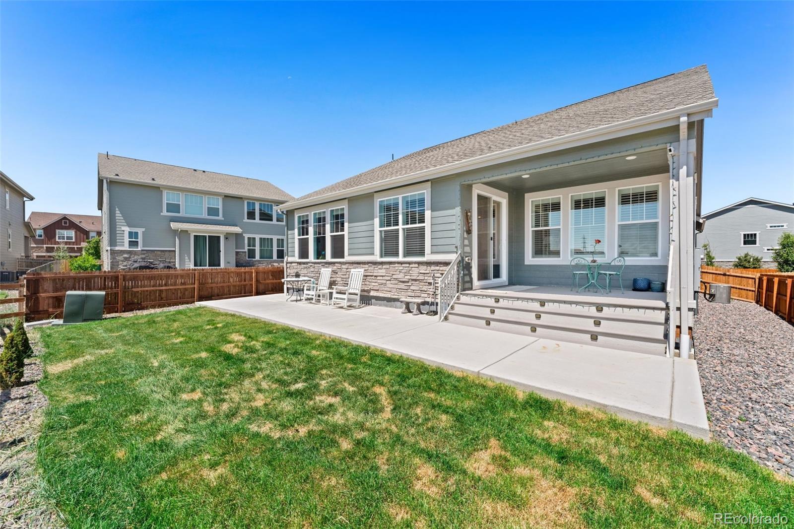 Price improvement .. Come look and this beautiful home. This is a turnkey property ready for the new owner to call it home and ready for the holidays. Welcome to your new Home: This beautifully upgraded Lennar home offers a seamless blend of comfort, style, and smart functionality nestled in the desirable Waterstone community. 3 spacious bedrooms and 2 full bathrooms, including a generously sized primary suite with a tray ceiling and his and her sinks which also includes a relaxing shower. Gourmet kitchen featuring quartz countertops, modern appliances, under-cabinet lighting, and pull-out shelving for easy access. Open-concept layout connects the kitchen, dining, and living area perfect for entertaining or cozy nights in. There is a gas converter if you wish to change to gas stove. Natural light galore thanks to oversized windows and plantation blinds throughout. Closet organizers in two bedrooms for streamlined storage. - Back patio with newly finished sidewalk and ambient fence lighting—ideal for unwinding outdoors. 2-car garage with tall ceilings, offering potential for extra storage. Ring security system, solar panels, and a smart sprinkler system with rain sensor for eco-conscious living. Built in 2022, This ranch home sits on a landscaped lot with greenbelt access. Crawlspace is located in the primary closet: Crawlspace with concrete floors, vapor barrier walls, cooling and heat, electrical light, floor to ceiling height on average 6 foot, ample storage space. close to Murphy Creek golf course, easy access to E-470. Southlands mall is close as well as various dining in the area.