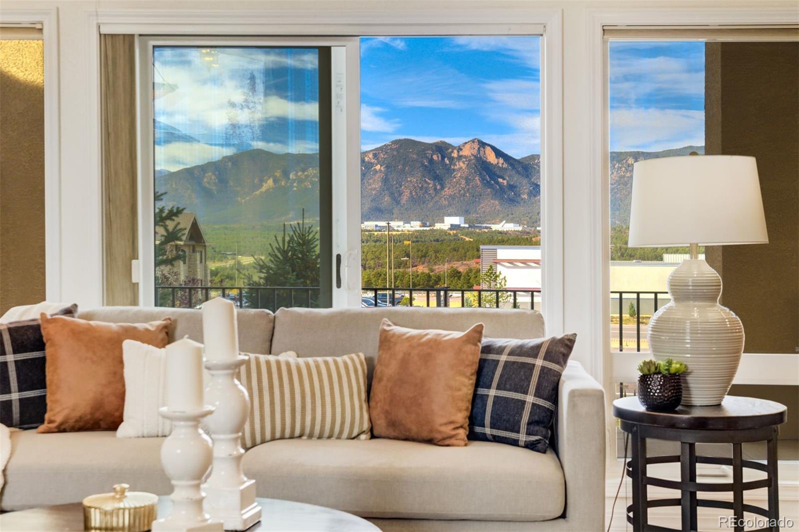 Beautifully maintained and sparkling with brand-new paint, upgraded carpet, and refinished hardwood floors, this move-in-ready ranch-style paired patio home in the gated enclave of Paradise Villas in Gleneagle offers the perfect blend of elegance, comfort, and low-maintenance living. Nestled within a boutique community celebrated for its mountain and USAFA views, manicured lawn spaces, and peaceful setting near Gleneagle’s trail system, this home invites a refined lock-and-leave lifestyle.The sprawling ranch design welcomes you with an inviting great room featuring 12-foot ceilings, a stone-accented gas fireplace, and abundant natural light opening to a covered deck flowing effortlessly from the living room—perfect for enjoying Colorado’s breathtaking sunsets. Designed for easy entertaining, the kitchen offers ample cabinetry, a breakfast bar, and a walk-in pantry, complemented by a separate dining area and main-level laundry with direct garage access.The primary suite is a serene retreat—framed by a mature pine outside the window, capturing the true spirit of Colorado living. The ensuite bath includes a five-piece layout with jetted tub and a spacious walk-in closet, while the secondary main-level bedroom doubles beautifully as a private office. The finished lower level extends the living space with a generous family room featuring a wet bar, a TV/media niche, and an additional bedroom plus flex room/office/fitness area connected by a full bath with split vanities—perfect for guests or multi-generational living. Lovingly cared for by its original owner, this timeless home combines refinement and practicality in one of Gleneagle’s most desirable gated communities, with parks, trails, award-winning D-20 schools, and quick access to I-25, Northgate, and Monument’s shopping and dining.