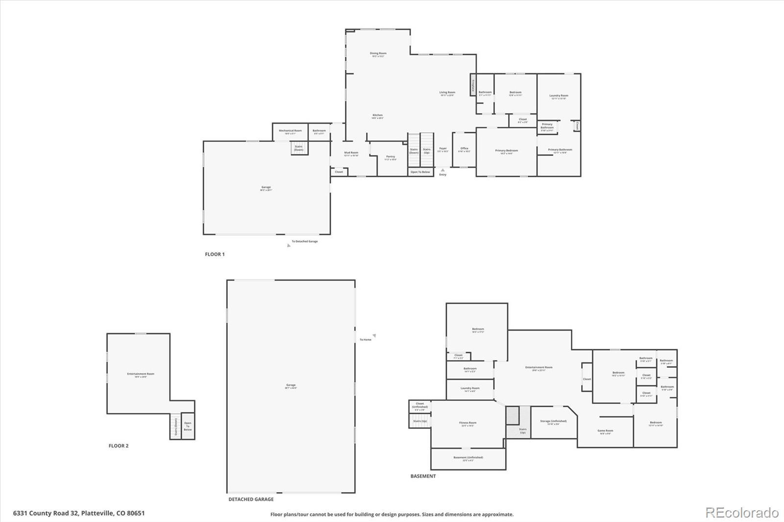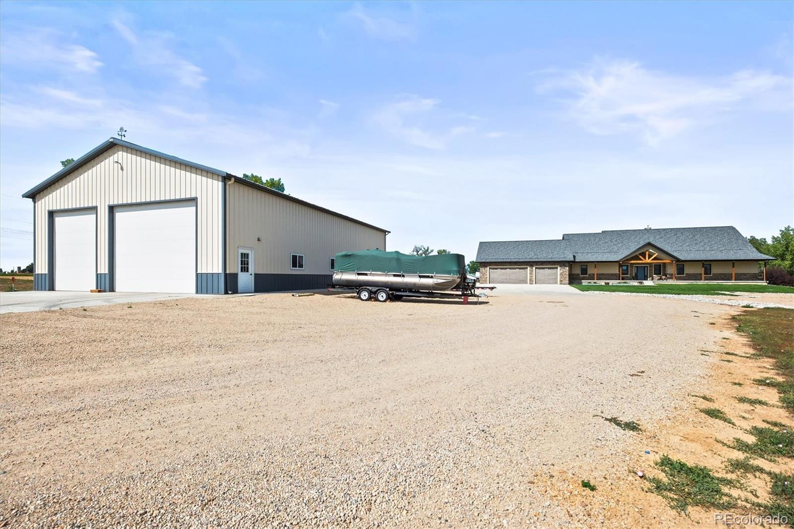 Experience the perfect blend of modern luxury and country living with 2 exceptional properties on County Road 32 in Platteville. Together, they offer over 8,500 sq ft of living space, sweeping mountain views of Longs Peak, freedom of 3.2 acres of serene Colorado countryside, 3 car garage, 4 car garage, and huge outbuilding, minutes from the conveniences of town. 6331 County Road 32 is a custom ranch home with comfort, craftsmanship, and lifestyle. The inviting great room flows seamlessly into a gourmet kitchen featuring Viking appliances, pot filler, large island, wet bar, cup washer, butler’s pantry with sink, dishwasher, dining area. The primary suite private retreat features a with a spa-inspired 5-piece bath, walk-in closet, laundry area. Enjoy mountain sunsets from the covered back porch with hot tub. The finished basement was created for fun and fitness with a recreation room, climbing wall adventure room, 2nd laundry, exercise room, safe room, direct access to the heated 3 car garage. 3 additional bedrooms, 2 bathrooms, an upstairs loft. A heated outbuilding (68’ x 42’) with three 14’ garage doors, one 10’ door, 15½’ ceiling height (17’ at the peak), 50-amp RV plugs on both sides - store vehicles, equipment, a semi-truck can drive through and turn around with ease. 6299 County Road 32 adds another ranch-style home featuring 3 bedrooms, 2 bathrooms, and a 4 car garage. The open-concept great room, dining room, and kitchen are perfect for entertaining, while the updated primary suite offers a custom tile shower and dual vanities. The finished basement adds a game room and bonus room. The property currently serves as a successful income-producing Airbnb. Important: 6299 County Road 32 will only be sold separately unless 6331 County Road 32 sells first. Discover the rare opportunity to own 2 incredible homes in one remarkable setting—ideal for multi-generational living, rental income, or hobby farm use with breathtaking views of the Front Range and Longs Peak.