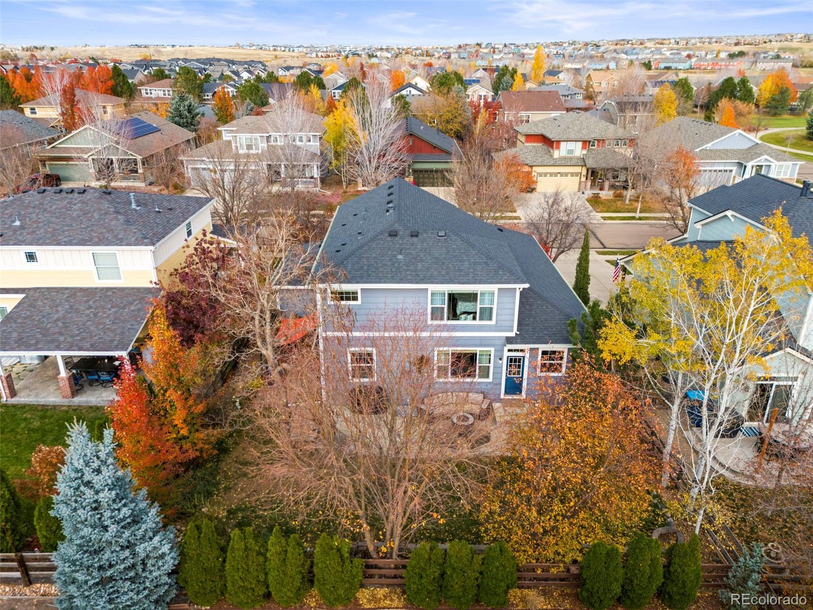 Welcome home to this beautifully maintained 4-bedroom plus office residence, ideally located just one block from a neighborhood park and walking distance to charming downtown Erie! This home offers comfort and peace of mind with numerous updates, including a new furnace (2024), roof (2023), most windows (2023), water heater (2022), washer and dryer (2023), refrigerator (2025), dishwasher (2025), new toilets and kitchen faucet. A smart leak detection system has also been installed on the main water line. Enjoy the covered front porch, perfect for cozy fall evenings or host gatherings on the large back patio. A side patio with shade provides an ideal play area for kids, and the fenced yard with mature trees ensures privacy and tranquility. Inside, the spacious kitchen features a large island with breakfast bar, pantry, and open flow to both the dining and living rooms perfect for entertaining. The living room offers built-ins and a cozy gas fireplace. The main level also includes a bedroom and full bath for guests, a private office with french doors, and a dedicated laundry room. Upstairs, the large primary retreat boasts abundant natural light, a five-piece ensuite bath, and a walk-in closet. Two additional bedrooms share a full hall bath. The unfinished basement offers excellent potential to create a gym, rec room, or additional living space. With a three-car garage, thoughtful updates throughout, and an unbeatable location near parks and downtown amenities, this home truly has it all!