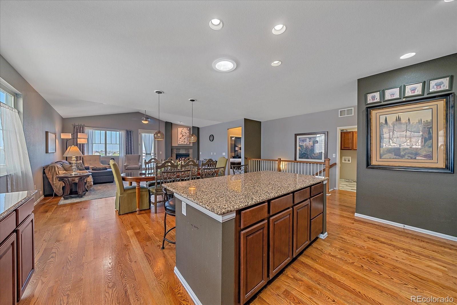Welcome to this beautiful and impeccable 4-bedroom, 3-bath home, thoughtfully designed with comfort, style, and function in mind. Appraised at $690,000 in August 2025 and priced at just $650,000, this home offers outstanding value. Inside, you’ll find newer Anderson windows, custom paint, newer carpet, skylights, and upgraded light fixtures, ceiling fans, and chandeliers that create a warm and inviting atmosphere. The kitchen boasts granite counters, maple cabinets with crown molding, a newer gas range, and a deluxe two-door dishwasher, while the master bath has been enhanced with a newer vanity, quartz counters, and ceramic flooring. Outdoor living is a highlight with raised flowerbeds, a custom storm door leading to the deck, an electric awning, and peaceful views backing to open space and trails. The walk-out basement is partially finished with a bedroom, bath, bonus/second living room, dry bar area, and lots of storage space. Additional features include an epoxy-coated garage floor and an unbeatable location near Southlands Mall, movie theater, grocery stores, and quick highway access (470, I-25, and 225). Move-in ready and full of upgrades, this home truly has it all! Buyer to verify all information provided. Must See, you won't be disappointed!