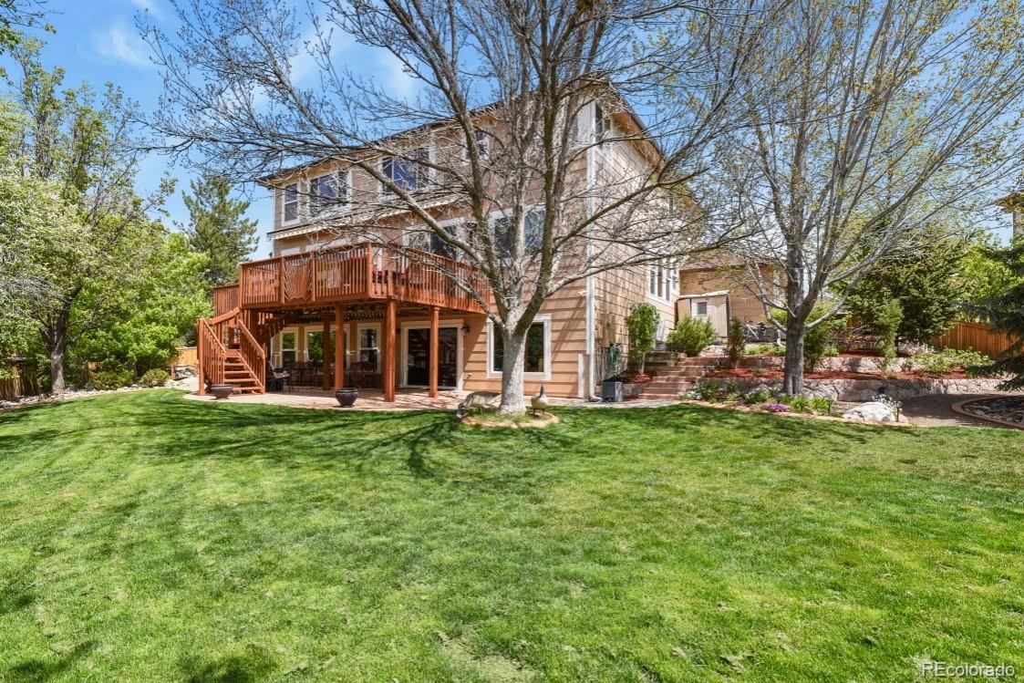 Welcome to this stunning two-story home by Shea Homes in the highly sought-after TrailMark community. Perfectly positioned on a quiet cul-de-sac, this desirable Willow Grove model is one of the largest floor plans available, offering over 3,700 square feet of beautifully finished living space. Take the basement to a fully finished one and you have over 5,000 square feet of living space. The upper level features four spacious bedrooms, including a luxurious primary suite designed for true relaxation, a private en-suite guest bedroom, and two generously sized secondary bedrooms connected by a Jack-and-Jill bathroom—ideal for comfortable family living. On the main level, you’ll find rich hardwood floors throughout and a versatile non-conforming bedroom or office (no closet) paired with a nearby bathroom—perfect for out-of-town guests or a private workspace. The open kitchen overlooks mature landscaping and captures serene mountain views, creating a picturesque backdrop for everyday living and entertaining. The walk-out basement is partially finished, offering an additional guest bedroom and bathroom, plus ample room to expand and customize to your needs. Step outside to enjoy your own private retreat. The backyard provides summer privacy with mature trees, a cozy fire pit area, motion activated lights and an upper deck complete with an awning—ideal for warm Colorado afternoons and evening gatherings. Additional highlights include a spacious three-car garage with an EV charger & utility sink, and numerous recent upgrades: a new roof, rain gutters, fresh exterior paint, updated HVAC system with heat pump (very cost effective!), whole-house humidifier, and a whole-house water filtration system. This exceptional home combines thoughtful design, generous space, and energy efficient updates in one of the area’s most desirable neighborhoods with miles of trails to enjoy all that Colorado has to offer—don’t miss the opportunity to make it yours.