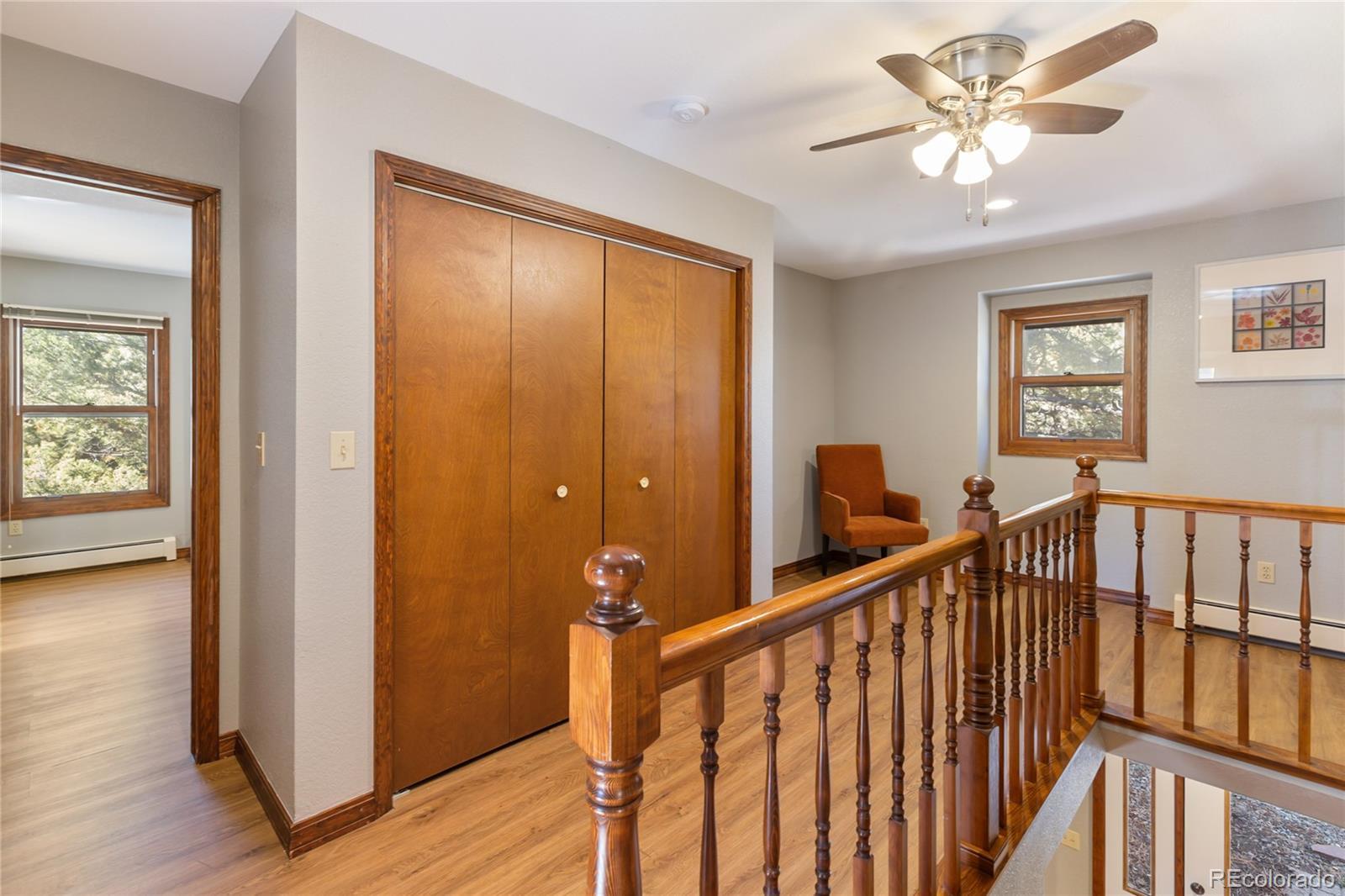 Welcome to your dream home in Spring Valley subdivision that offers access to several private lakes and ponds that frame majestic Pikes Peak, perfect for fishing, paddleboarding, ice fishing, or enjoying a peaceful lakeside picnic. This spacious home's exterior is a blend of stone and wood finishes, complemented by multiple decks ideal for sipping morning coffee, grilling with friends, or simply soaking in the crisp mountain air. Step inside the main level that opens to a stunning staircase and a thoughtfully designed layout. Arched doorways and custom architectural details create a graceful flow from room to room. Enjoy a formal dining room for entertaining, a cozy living room featuring a real wood-burning fireplace, and a bright breakfast area that walks out to the upper deck. The kitchen shines with modern updates- a new backsplash, countertops, flooring, and stainless steel appliances. Upstairs, the primary bedroom has a ensuite, walk-in closet, and a wood-burning fireplace. Two additional bedrooms, a full bath, and a versatile loft space (ideal for an office, reading nook, or craft area) complete the upper level. The fully finished basement is a true surprise, offering multi-functional living space. There’s a large bedroom with sitting area, walk-in closet, access to a Jack-&-Jill bathroom, a spacious family room with wet bar, and a walk-out to another private deck—ideal for hosting guests, creating a separate rental suite, or enjoying multi-generational living. Additional features include: Attached 2 car garage, laundry/mechanical room accessible from garage & exterior, Solar, private sauna for relaxing on chilly mountain evenings & RV parking. Less than 10 minutes to restaurants, shopping, coffee shops, & Hwy 24 for quick access to Woodland Park, Colorado Springs, or mountain adventures. Whether you're looking for a full-time residence, vacation getaway, short or long-term rental potential, or a multi-generational living opportunity, this property has it all.