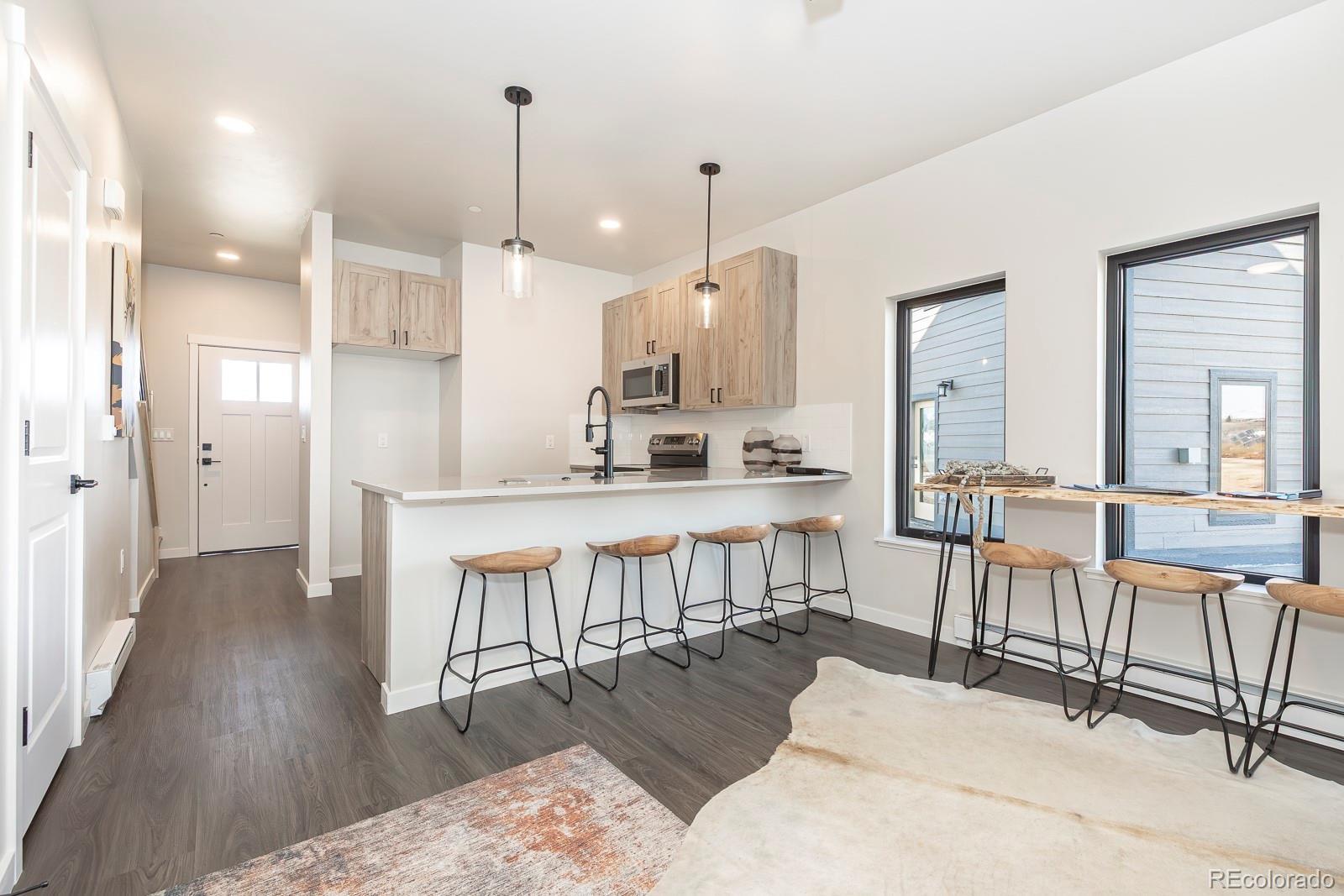 Brand New Construction 3 Bedroom 3 bath Townhome move in ready! You will love all the new and modern features including quartz countertops, plank flooring, modern industrial lighting, stainless steel appliances and STR estimate of $55k per year. You will love the bright and light modern kitchen and big windows. Lovely unit that sits along the river and is walkable into downtown Granby. Enjoy Granby Ranch amenities that include season pass to ski mountain for 4 family members, 8 rounds of golf, pool, fitness and workout.
