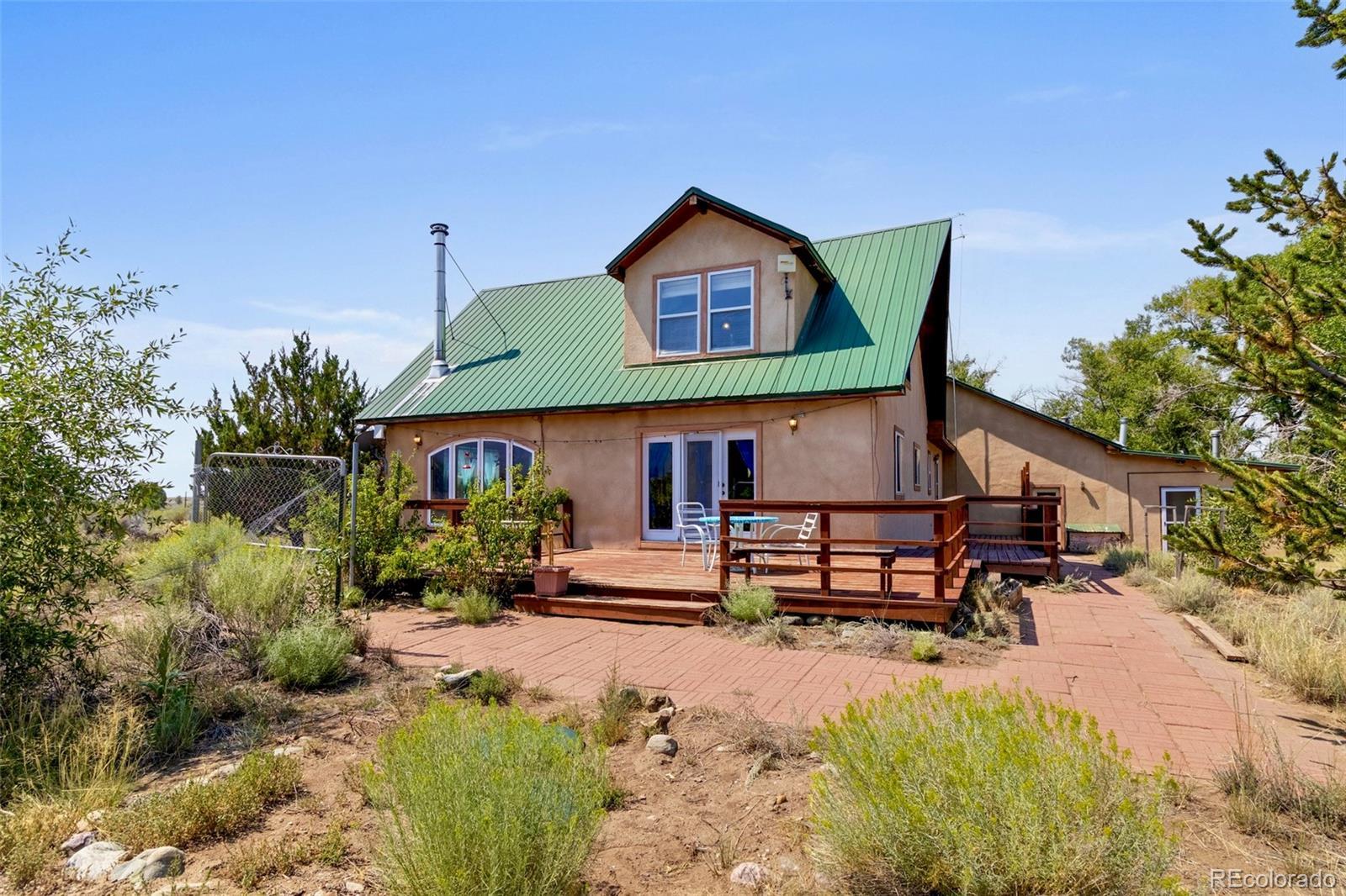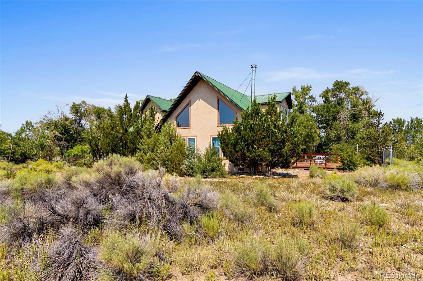 Rare opportunity to escape the hustle & bustle on your own secluded 8-acre retreat, amongst aspen & cottonwoods straddling a seasonal creek/drainage. Imagine waking to the warm sunrise over the 14,000-ft Sangre de Cristos, amidst birdsong & rustling leaves - a glorious start to every day! The 2446sf custom 2BD/2BA main home has many extras: oversized 2-car garage/shop + storage, studio, greenhouse w/ raised beds & much more. A large wraparound deck, flagstone path, covered porch & partially-fenced yard invite you outside to enjoy the natural splendor for which the Baca Grande is famous. Grow, create, restore & reconnect w/ nature; work or indulge your passion projects in the studio or garage/shop! Inside, you are greeted by a luminous, open-concept living space w/ 2-story vaulted ceilings, dramatic wood staircase & large view windows on all sides, many south-facing for passive solar gain. The great room is the heart of the main floor, opening into the well-designed kitchen & dining area, w/ access to the deck. The open loft offers a 2nd large living space w/ niche dormers and fabulous mtn views, perfect for desks, work/workout space, overflow sleeping - the ultimate bonus room. A spacious bedroom & full bath on each floor affords ample privacy. LP forced-air heat & woodstoves for cozy winter evenings. Metal roof & stucco exterior. Well, septic, grid-tied electric. 300 days/yr of sunshine allows a switch to solar PV. 10 minutes by car to the town of Crestone and amenities: gas, groceries, mail, cafes, restaurants, hardware, galleries, liquor, gift shops, and more. Crestone is an accredited Intl Dark Skies Community, has two local schools & burgeoning community. Deer, pronghorn, eagles, hawks, elk, and numerous bird species are your neighbors. Retreats, hot springs, birding, MTB, hiking, rock climbing, skiing, meditation, fishing & hunting are some of the pastimes the SLV has to offer. Call to schedule a private tour - your Crestone sanctuary awaits!