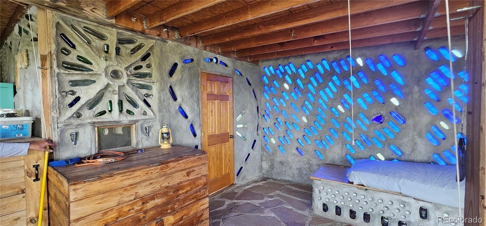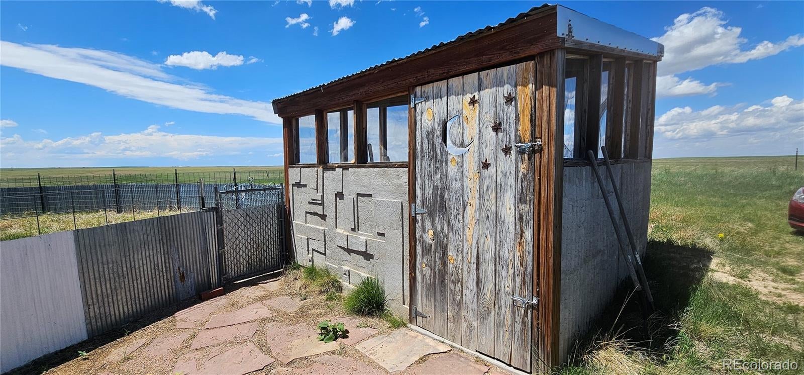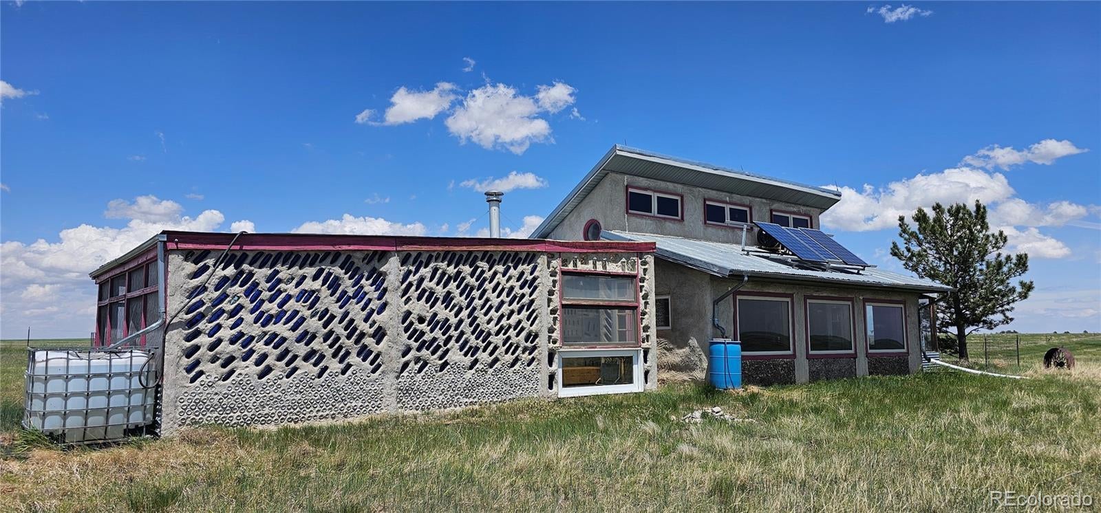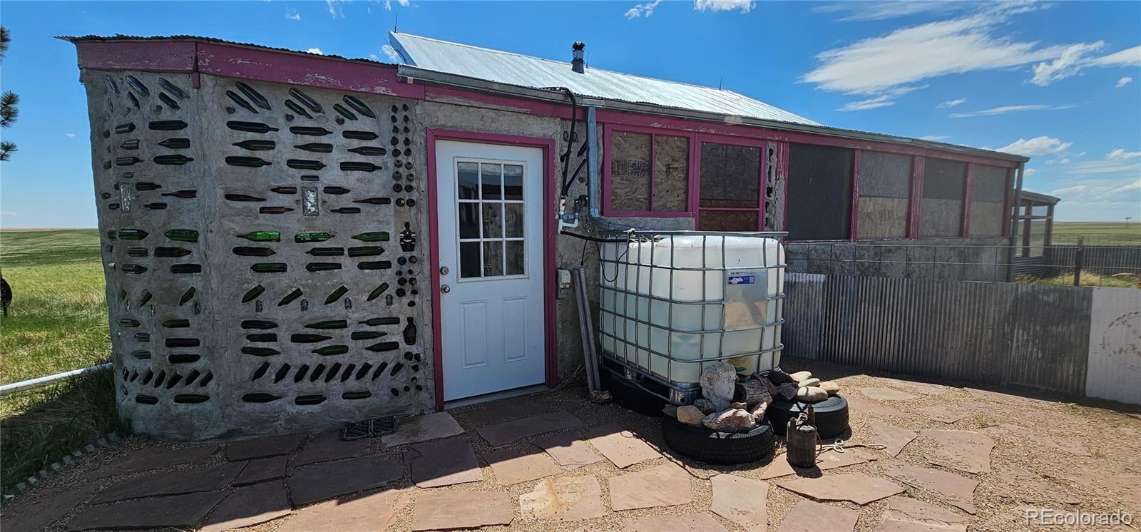 VERY RARE Opportunity! Unique COTTAGE ~ SOLAR power ~ ONE OF A KIND off grid ~ with ACREAGE !! Here is your chance to own 40+/- acres in the quiet serene plains of Eastern Colorado, that includes a cottage like no other. This rare little gem is truly a masterpiece of creativity! It is straw bale construction with a metal roof, solar panels for electricity and 2 water catching systems with pumps and gravity feed barrels. There are 3 extensive enclosed and screened porches with sleeping areas that all have the beauty of colored glass walls emanating rays from the abundant sunshine outside. A solarium and loft area add to the possible sleeping niches and are just as charming and full of character as the rest of this little cottage. The Kitchen and shower have running water from the gravity-fed stored water system, and you can truly connect with nature and breathe the fresh country air from the detached Latrine (no running water system). There is masterful and unique tile work throughout along with the glass bottle walls that create beauty all around you. Most of the furnishings are included, so this is ready for you to start enjoying some peaceful starry nights and sunny country days! Much more to explore with this property Call today!