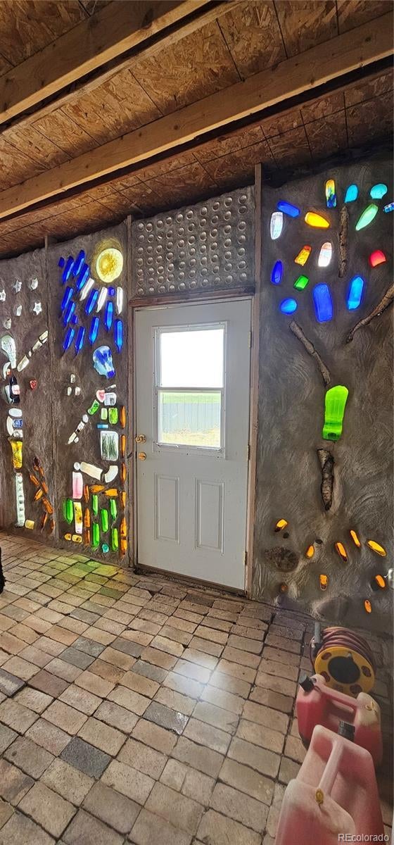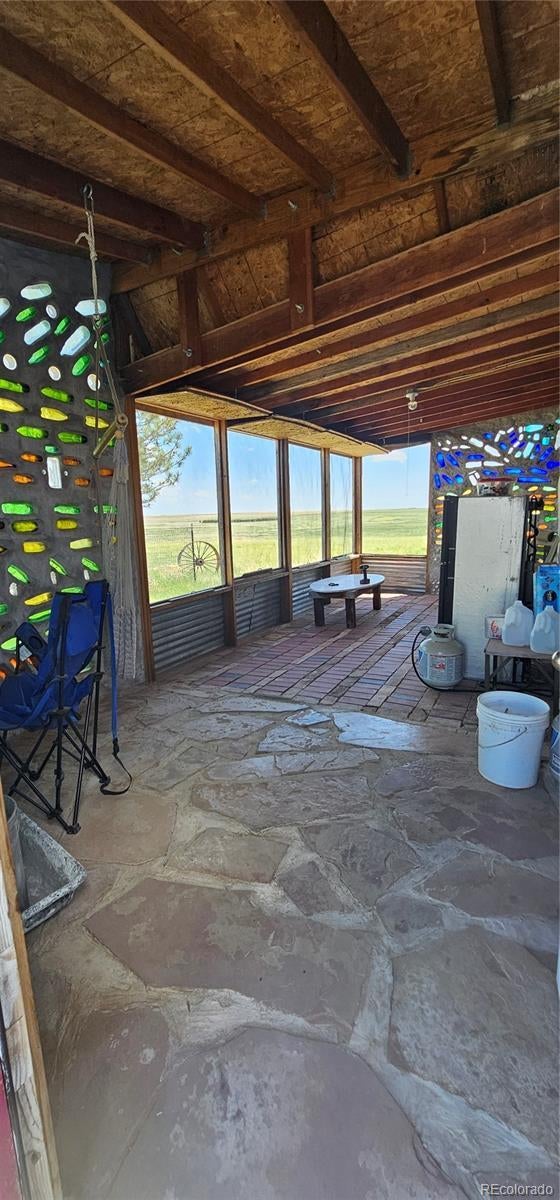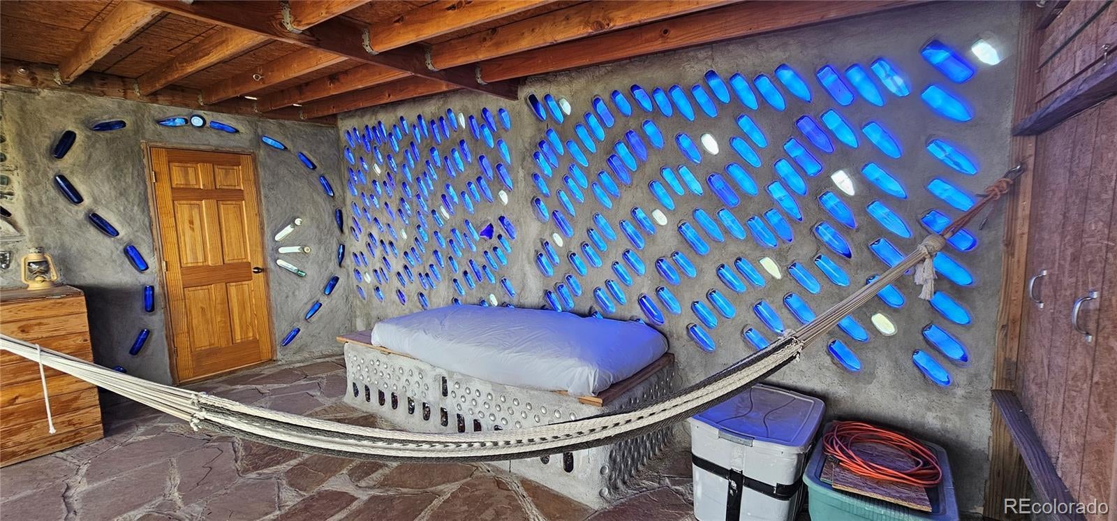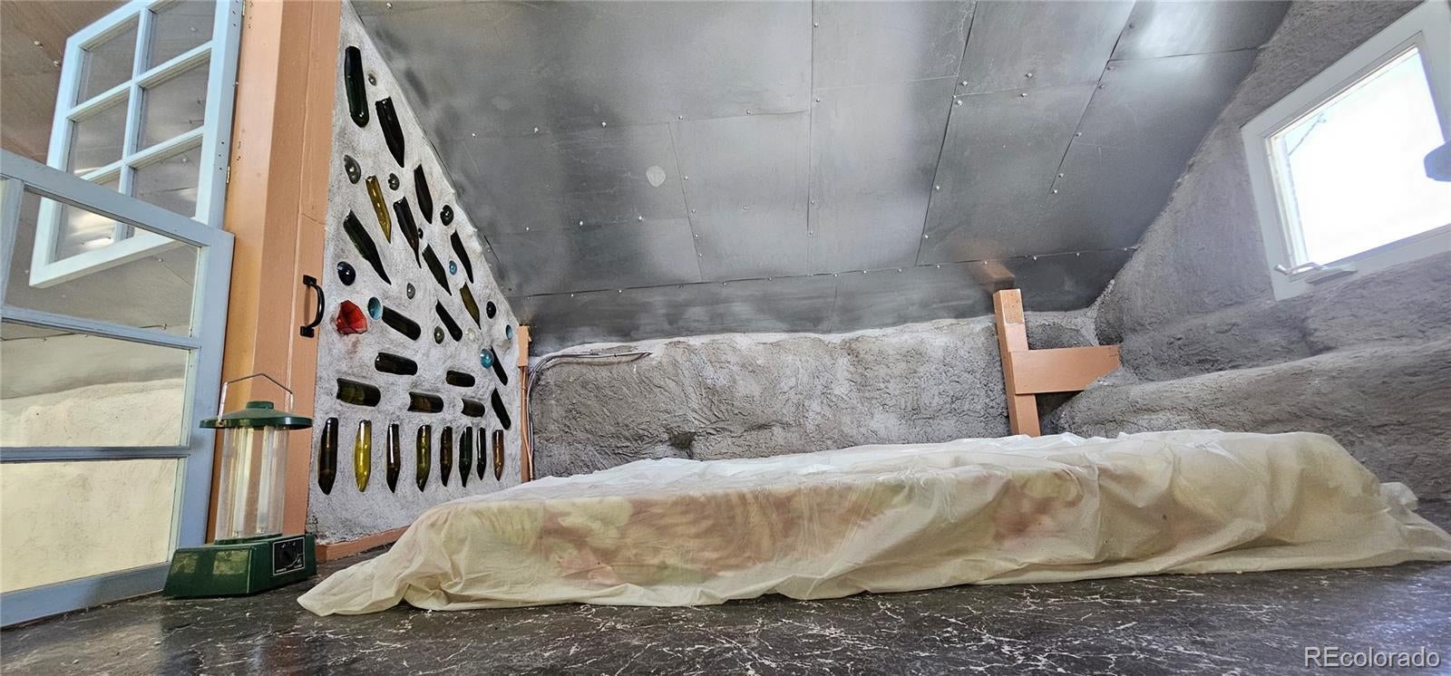 VERY RARE Opportunity! Unique COTTAGE ~ SOLAR power ~ ONE OF A KIND off grid ~ with ACREAGE !! Here is your chance to own 40+/- acres in the quiet serene plains of Eastern Colorado, that includes a cottage like no other. This rare little gem is truly a masterpiece of creativity! It is straw bale construction with a metal roof, solar panels for electricity and 2 water catching systems with pumps and gravity feed barrels. There are 3 extensive enclosed and screened porches with sleeping areas that all have the beauty of colored glass walls emanating rays from the abundant sunshine outside. A solarium and loft area add to the possible sleeping niches and are just as charming and full of character as the rest of this little cottage. The Kitchen and shower have running water from the gravity-fed stored water system, and you can truly connect with nature and breathe the fresh country air from the detached Latrine (no running water system). There is masterful and unique tile work throughout along with the glass bottle walls that create beauty all around you. Most of the furnishings are included, so this is ready for you to start enjoying some peaceful starry nights and sunny country days! Much more to explore with this property Call today!