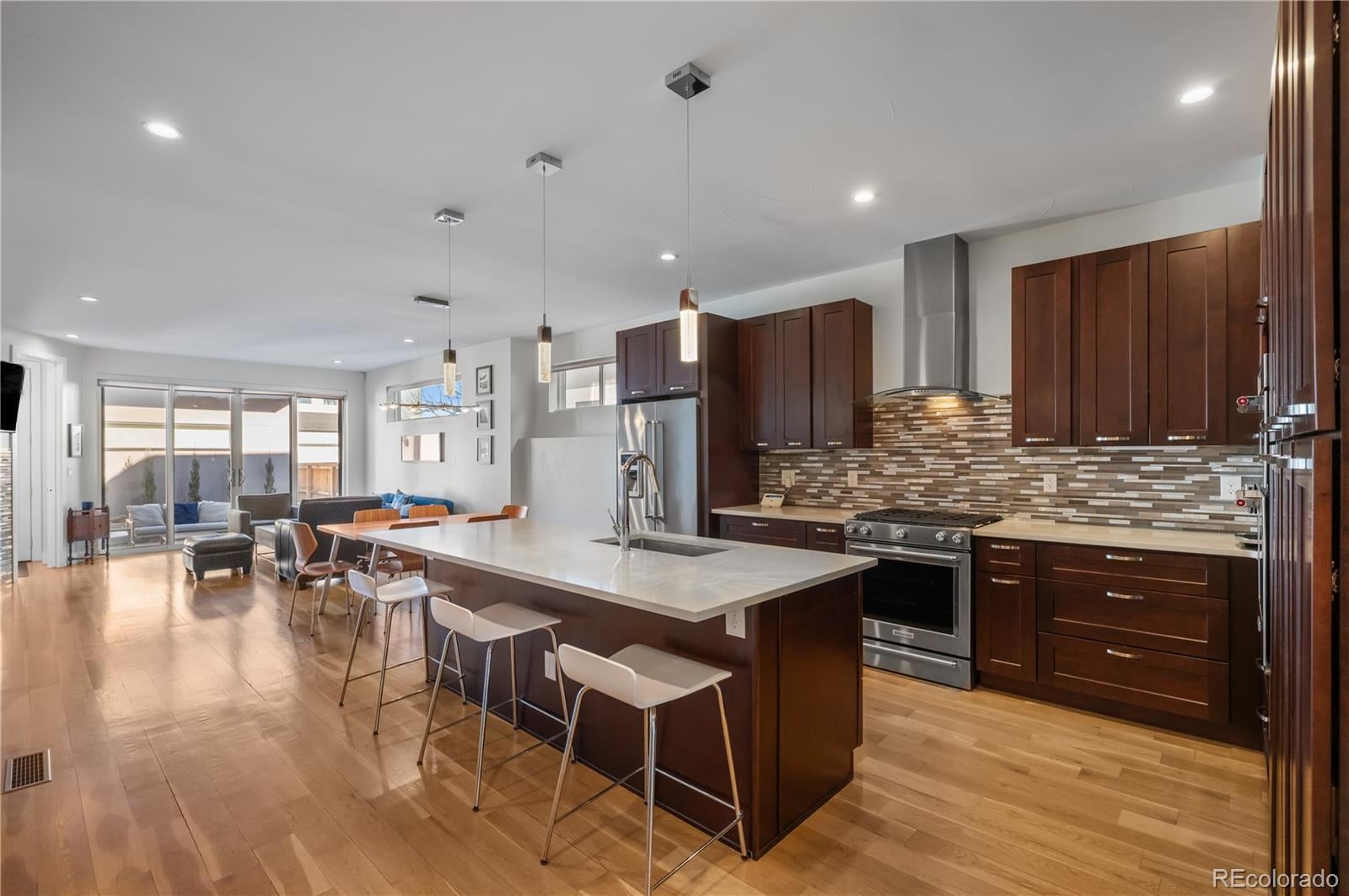 Located in Denver’s Berkeley neighborhood, two blocks from the energy of Tennyson Street, this 2015-built modern half duplex offers 3 bedrooms, 5 bathrooms (3 full, 2 half), and 3,392 square feet of thoughtfully finished living space. A bright, open-concept main level is anchored by contemporary design and everyday function, featuring large windows, hardwood flooring, quartz countertops, and custom cabinetry, with seamless flow for hosting or daily life. Upstairs, two spacious bedrooms provide privacy and comfort, while the finished basement adds flexibility with a third bedroom and 9-foot ceilings, ideal for guests, a home office, or a media/gym setup. The home continues to impress on the third floor with a dedicated entertainment room and access to the rooftop deck, creating an elevated indoor-outdoor lifestyle that fits Berkeley’s social, walkable vibe. Outdoor spaces have been meaningfully upgraded, including a hardscaped rear patio, a xeriscaped yard with drip system, and a Trex deck, with over $50,000 invested in landscape and hardscape improvements. Additional highlights include a Class 4 impact-resistant roof (2020), two AC units, two furnaces, a French drain system running to the alley, a detached 2-car garage, and notable updates such as upgraded doors and a rooftop shade system. Enjoy modern construction, low-maintenance outdoor living, and an unbeatable Berkeley location close to parks, dining, and local favorites along Tennyson.