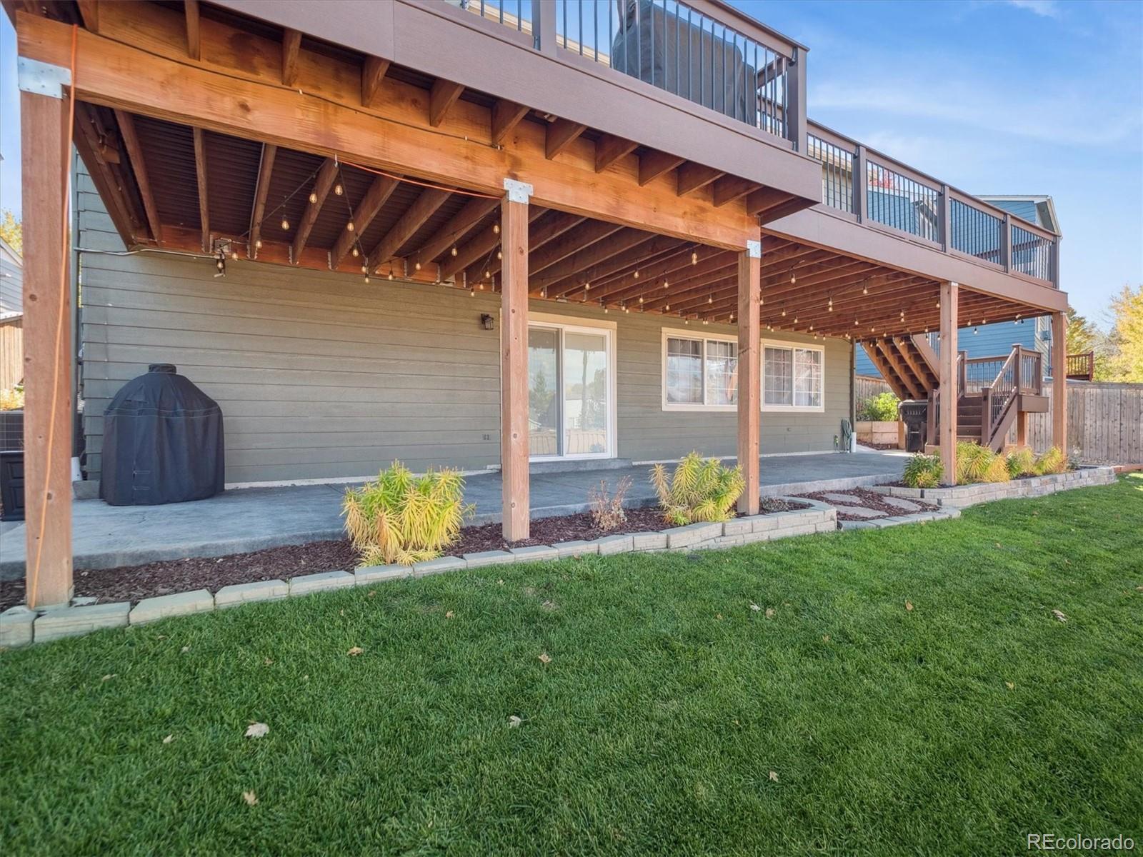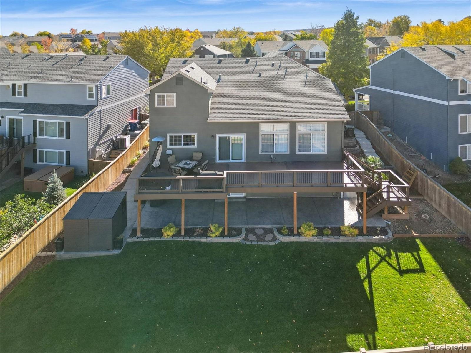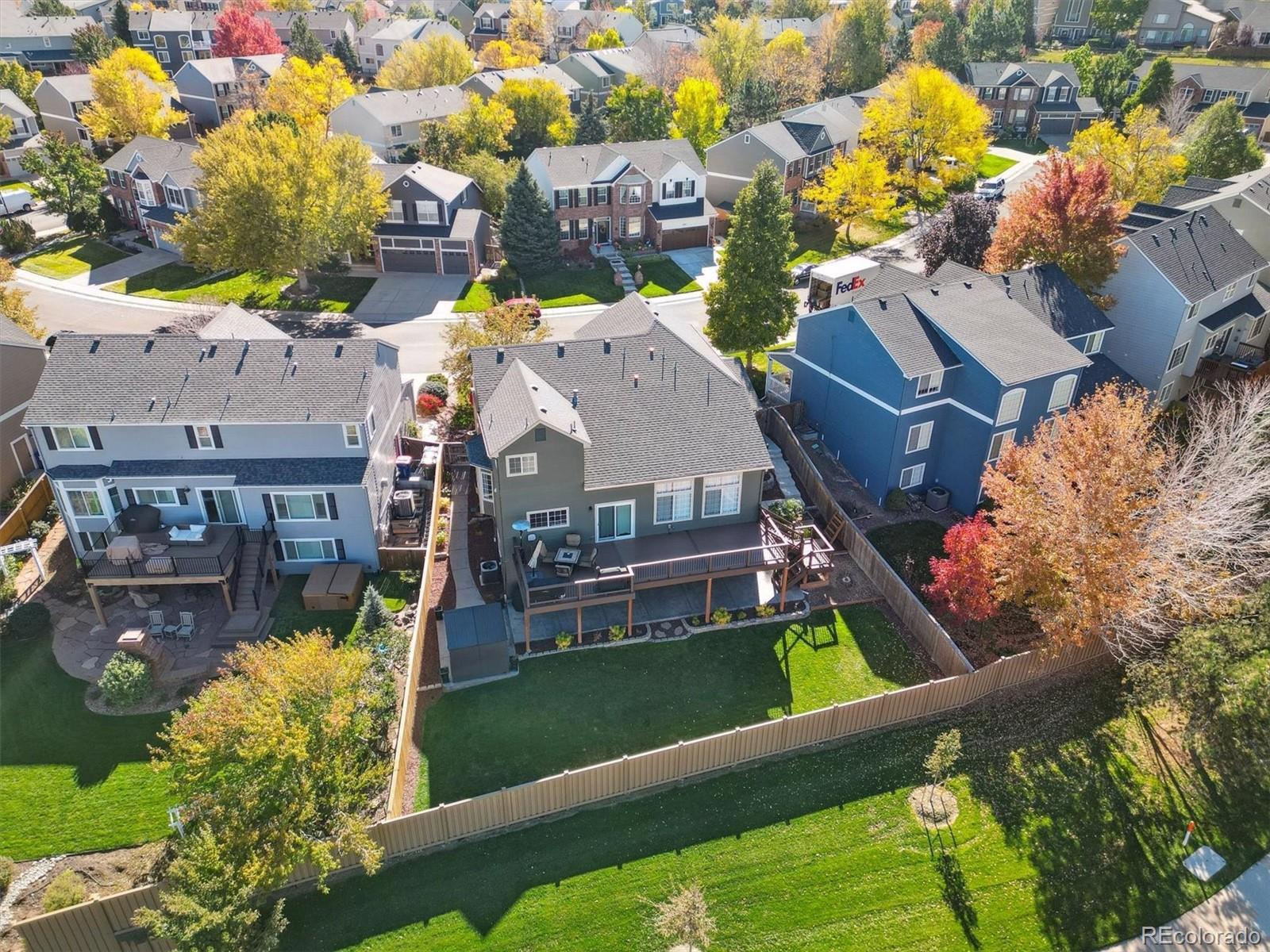 Situated on a premium cul-de-sac lot with stunning sunset views and a fully finished walk-out basement, 10031 Heywood Lane is defined by intentional design, seamless flow, and refined finishes throughout. New exterior paint (2025) and a new roof (2019) greet you with instant curb appeal. Inside, beautiful hardwood floors (2018), abundant natural light, and vaulted ceilings unfold to an open floor plan. The inviting great room features a gas fireplace and effortlessly connects to the renovated chef’s kitchen with an oversized center island, quartz countertops, custom soft-close cabinetry with undermount lighting, a large pantry, and a stainless steel appliance package. Upstairs, engineered hardwood floors extend to 3 generously sized secondary bedrooms, a full bath, and the primary suite with dual walk-in closets with custom Elfa closet systems, and a spa-like ensuite 5-piece bath. Radiant-heated floors, dual vanities, and a large wet room with a free-standing tub and walk-in shower make this room an indulgent retreat. Descend to the lower level for family movie nights in the large den. The walkout basement is plumbed for a future wet bar, ideal for an entertaining or mother-in-law suite. 2 additional bedrooms, a bath, and a home gym round out the lower level. The spacious composite deck is ready for summer BBQs while taking in city and sunset views. The lower covered stamped concrete patio provides easy access to the walkout basement. Additional features of this turnkey residence include a new driveway and garage floor (2023), new garage doors (2025), integrated smart home technology, Elfa closet systems throughout, and new backyard fencing. Eastridge is a sought-after community in Highlands Ranch, minutes from award-winning Valor High School and Douglas County schools, parks, trails, multiple Rec Centers, shopping, dining, and major roadways. Come experience contemporary living on a premium lot and schedule your showing for 10031 Heywood Lane today!