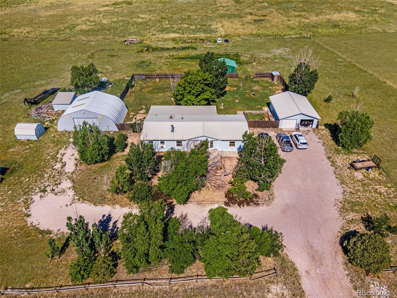 Welcome to where peace, privacy, and panoramic views come together. This beautifully maintained 3-bedroom, 2-bath ranch-style home sits on 5 acres and offers the perfect blend of comfort and functionality. Step inside to discover an open, inviting layout with spacious bedrooms-each featuring its own walk-in closet. The kitchen is a chef’s delight with a gas range, a newer dishwasher, ideal for everyday meals or entertaining with a eat-in kitchen as well as space for a formal dining space! The primary bedroom features a large walk in closet as well as a dual vanity, storage space and a custom tiled large shower. The finishing features add a luxurious touch to your private retreat. Step outside to your backyard oasis where a covered patio, included jacuzzi, and breathtaking Pikes Peak views await. A 40x30 Quonset shop and oversized 2-car garage—both with 200-amp service—offer ample space for hobbies, storage, or even a home-based business. Additional highlights include steel roofs on the home, porch and outbuildings, brand new carpet throughout, plus a brand-new septic system for peace of mind. Whether you're looking for space to roam, room to work, or a place to unwind, this one checks every box.