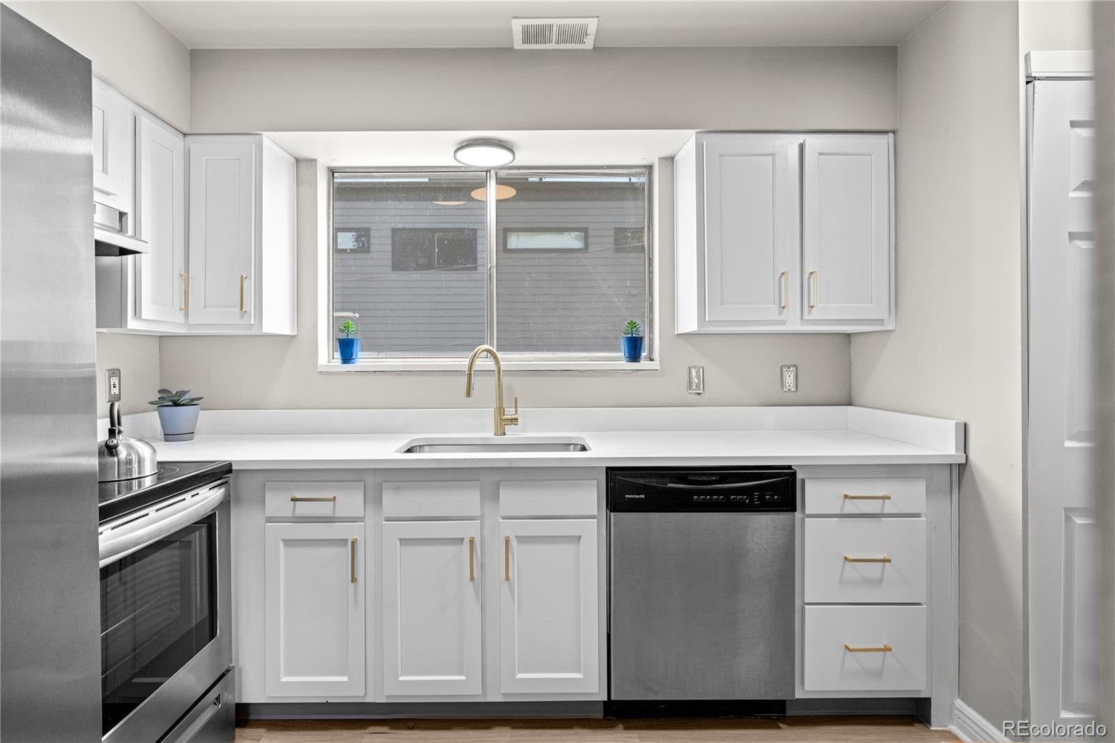 *** Amazing NEW Price *** Charming mid-century FULL duplex with great updates in Sunnyside! Two NEW Kitchens: NEW cabinets with NEW quartz countertops! Upgraded inset chef’s sinks, brass faucets, brass cabinet hardware, modern lighting, and two new refrigerators! All appliances included, even both washers and dryers. The well-designed floorplan of this duplex feels large and open in person. The living, dining, and kitchen spaces are open to each other in a thoughtfully designed layout. Each unit has 3 real bedrooms with closets. Beautiful original hardwood floors in the upper unit. Upgraded LVP flooring in the garden-level unit. Many BIG updates are done! NEW furnace upstairs (2025) NEW water heater upstairs (2023). NEW interior paint upstairs (2025). All new upgraded light fixtures in both units (2025). NEW bathroom vanity lights & showerheads (2025). The roof is still under warranty. Outdoor living: Inviting front patios and expansive side patio encourage easy outdoor living. The big backyard is fenced for a pup and has plenty of space to garden! The yard has a sprinkler system, mature trees, and is ready to be finished. The 2 car garage has already been divided giving each unit a private oversized 1-car-garage. House hacking opportunity! This property will help pay for itself. This duplex has separate addresses and separate gas and electric meters. So many new builds in the area, the E-TU-C zoned lot can be redeveloped (buyer to verify). Just blocks to charming award winning restaurants and the vibrant Tejon corridor. This home offers unbeatable access to some of Denver’s best restaurants, coffee shops, and local bars. Whether you're exploring the city's food scene, catching a game, or taking a peaceful stroll, everything you love about Denver is right outside your door.