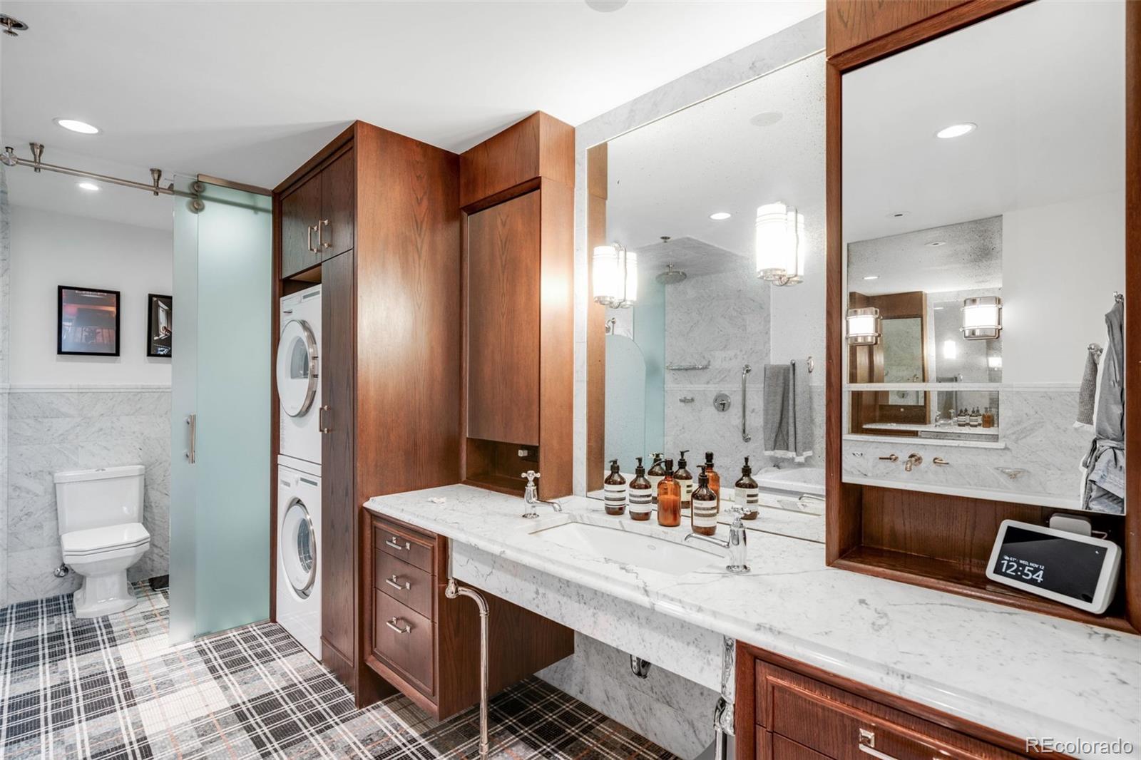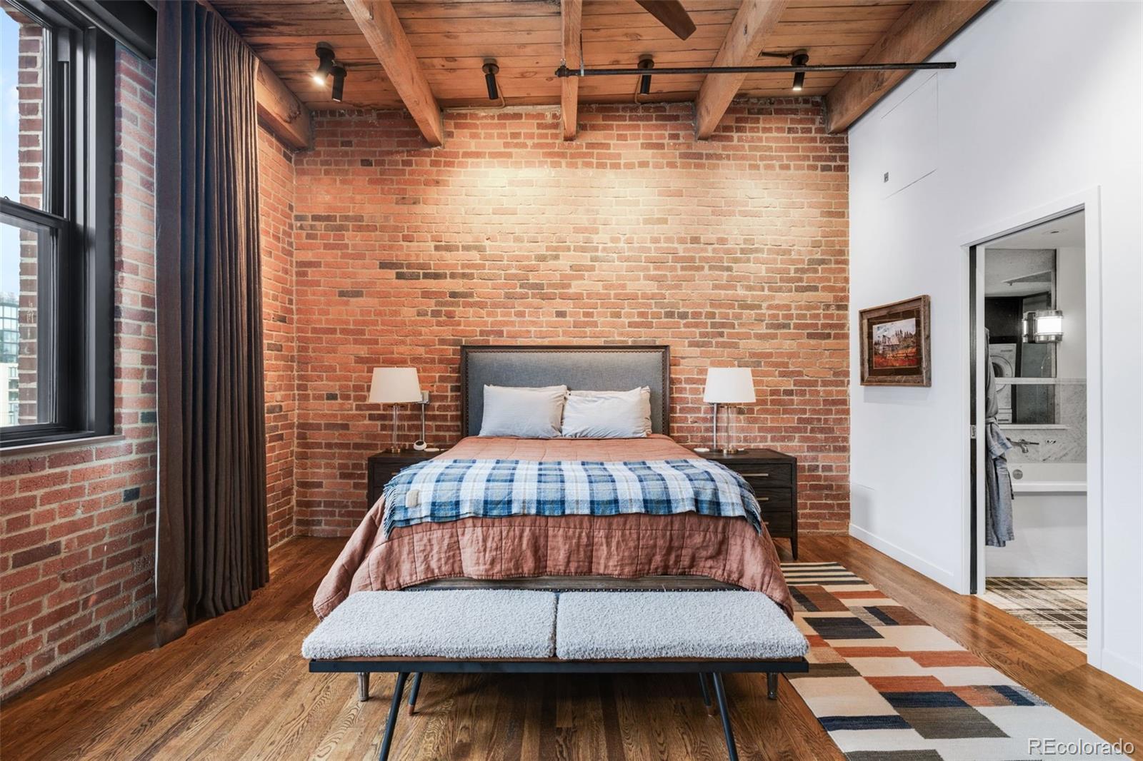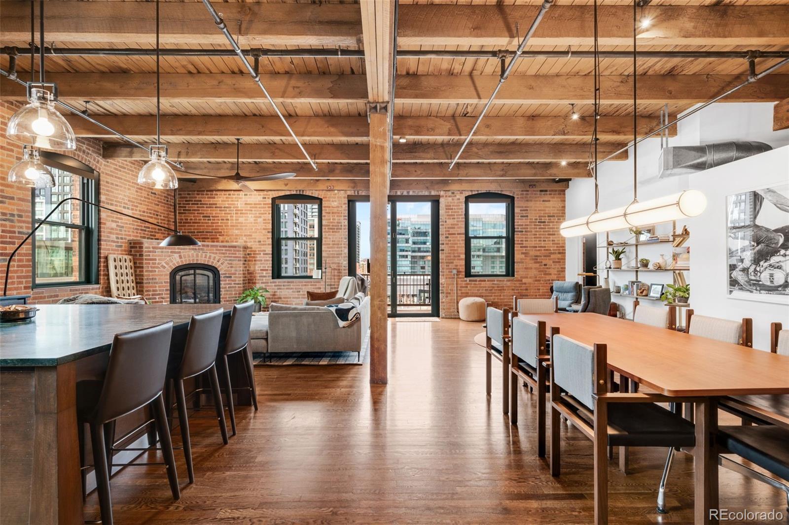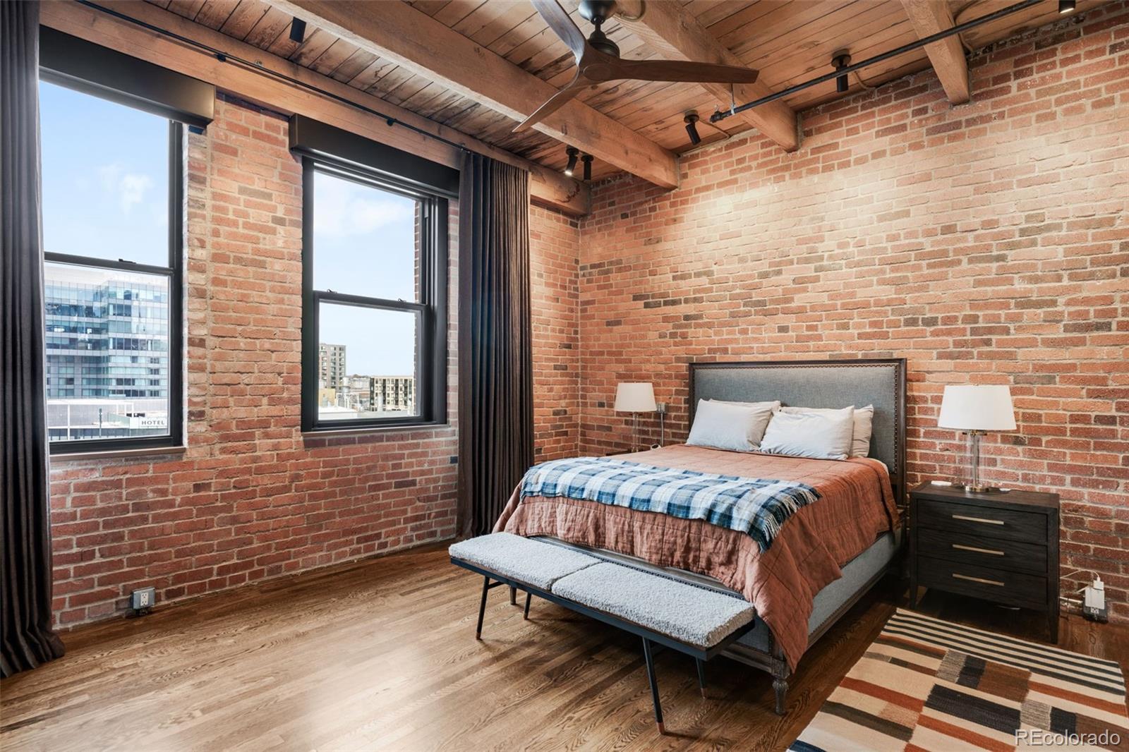 Experience penthouse living at its finest in Residence 516, a corner penthouse at the historic Ice House Lofts — a rare offering in the heart of LoDo. Built in the late 1890s, the Ice House blends its storied past with modern luxury. Exposed brick, timber accents, soaring ceilings, and abundant natural light define true Denver loft living. Fully remodeled and designed for effortless entertaining, this turn-key residence showcases a chef’s kitchen with state-of-the-art appliances, including a Sub-Zero refrigerator, wine and beverage coolers, a Miele coffee station, a Wolf 6-burner range, double ovens, warming drawer, and an expansive island ideal for hosting. The open layout flows into a living area centered by a gas fireplace and enhanced with NanaWall doors opening to a serene balcony with unobstructed Union Station views — an unforgettable backdrop. Sofa and custom rug in the living room are included. A thoughtful floor plan offers full-height bedroom walls, delivering modern privacy while preserving the Ice House’s historic character. Automated sound, lighting, and custom window coverings provide convenience. The secondary bedroom is a cozy entertainment lounge but easily converts into an office or guest suite. The sophisticated primary suite features a spa-inspired bath with an air tub, steam shower, and rain shower fixture. Built-out storage enhances every closet. This penthouse includes two underground secured parking spaces, a private storage unit, and direct access to the building’s fitness center — an exceptional amenity package. In the most coveted pocket of LoDo, residents enjoy access to Union Station, world-class dining, shopping, arts, entertainment, and Denver’s vibrant urban pulse. Penthouse 516 at The Ice House Lofts epitomizes historic charm, modern luxury, and unmatched location — an entertainer’s dream in one of downtown Denver’s most iconic buildings. Be sure to explore the virtual tour links for a stunning video and 3D tour.