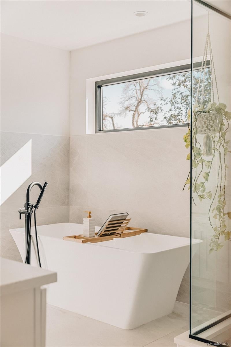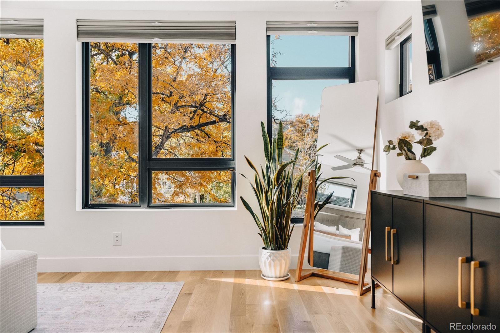 Nestled on a tree-lined block steps from Tennyson Street and Berkeley Lake, this modern 3 bed / 3 bath home (just under 3,000 sq ft; 2022 build) blends clean design with effortless livability. A charming front porch and fenced yard welcome you inside to a main level that runs the length of the home—wide-open, bright, and airy thanks to expansive windows. The living room centers on a sleek fireplace and flows to an eat-in kitchen with quartz counters, generous cabinet storage, island seating, and a true coffee bar. A discreet mud room and tucked-away powder bath complete the level. Connected side and back yards offer room to play, garden, or entertain. Upstairs, the primary retreat features a large bedroom, walk-in closet, and a spa-caliber 5-piece bath with freestanding soaking tub and glass shower. Two additional bedrooms are well-sized and share a nearby full bath. The top level is a flexible loft—ideal for an office, media, or fitness—opening to a picture-perfect rooftop deck set among the trees with west-facing mountain views. Additional highlights include hardwoods throughout the main level, designer lighting, black-framed windows, and thoughtful storage. All of this in one of Denver’s most coveted walkable locations—moments to restaurants, cafés, boutiques, Berkeley Park, and the highlands. Turnkey, stylish, and ready for its next chapter at 4538 Wolff Street.