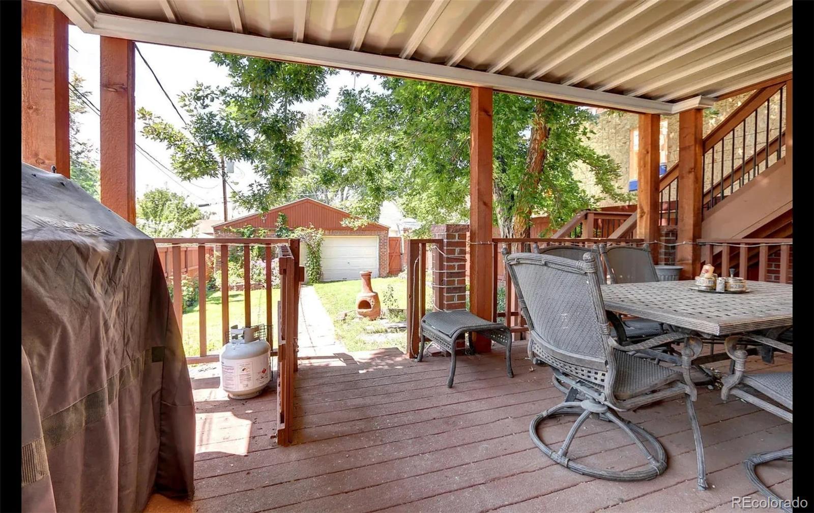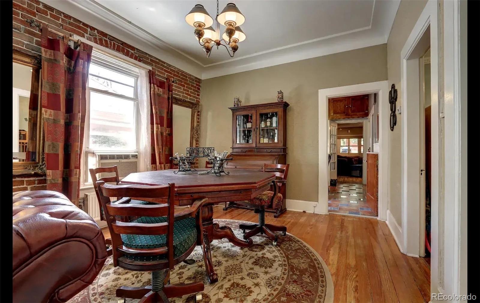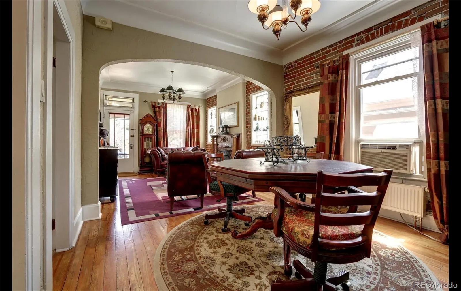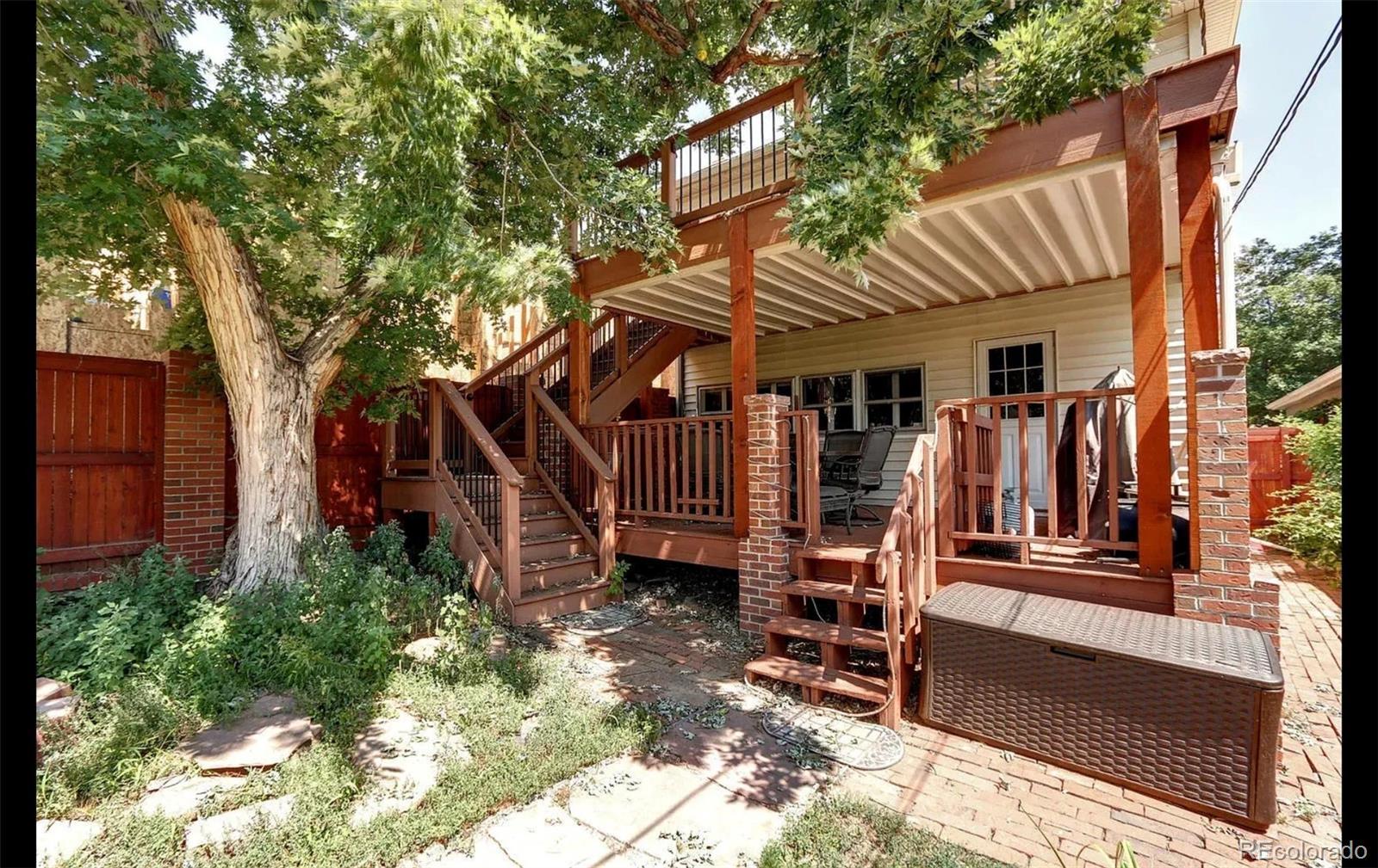 This charming Victorian Home in historic Witters & Cofield near Denver Highlands features 3 beds and 1.5 baths. Walk into the main level to hardwood floors with 2 fireplaces in the living room and large flex/family room. Main level also boasts 1 bedroom, 1 office (former bedroom), dining room, and kitchen. The upper level contains a Big master bedroom, a bonus room, and generous closet space. The back yard boasts a BIG balcony deck on the 2nd story giving you the "rooftop" experience for gatherings, while supporting the covered deck on the main floor. A highly RARE 4-car garage for your gera, toys, and car storage! Location is everything in this historic home, which offers convenient access to local parks, dining, and downtown amenities. The property sits on a tree-lined street with nearby public transportation, making commuting and everyday errands easy and accessible to Sloan's Lake, Highlands Square, Broncos Stadium, Downtown, RiNo, Ball Center, Platte River, Cherry Creek, and many other trails. Bonus area/walk-in closet upstairs is estimated by seller to be 396 sqft, but is not included in property records.