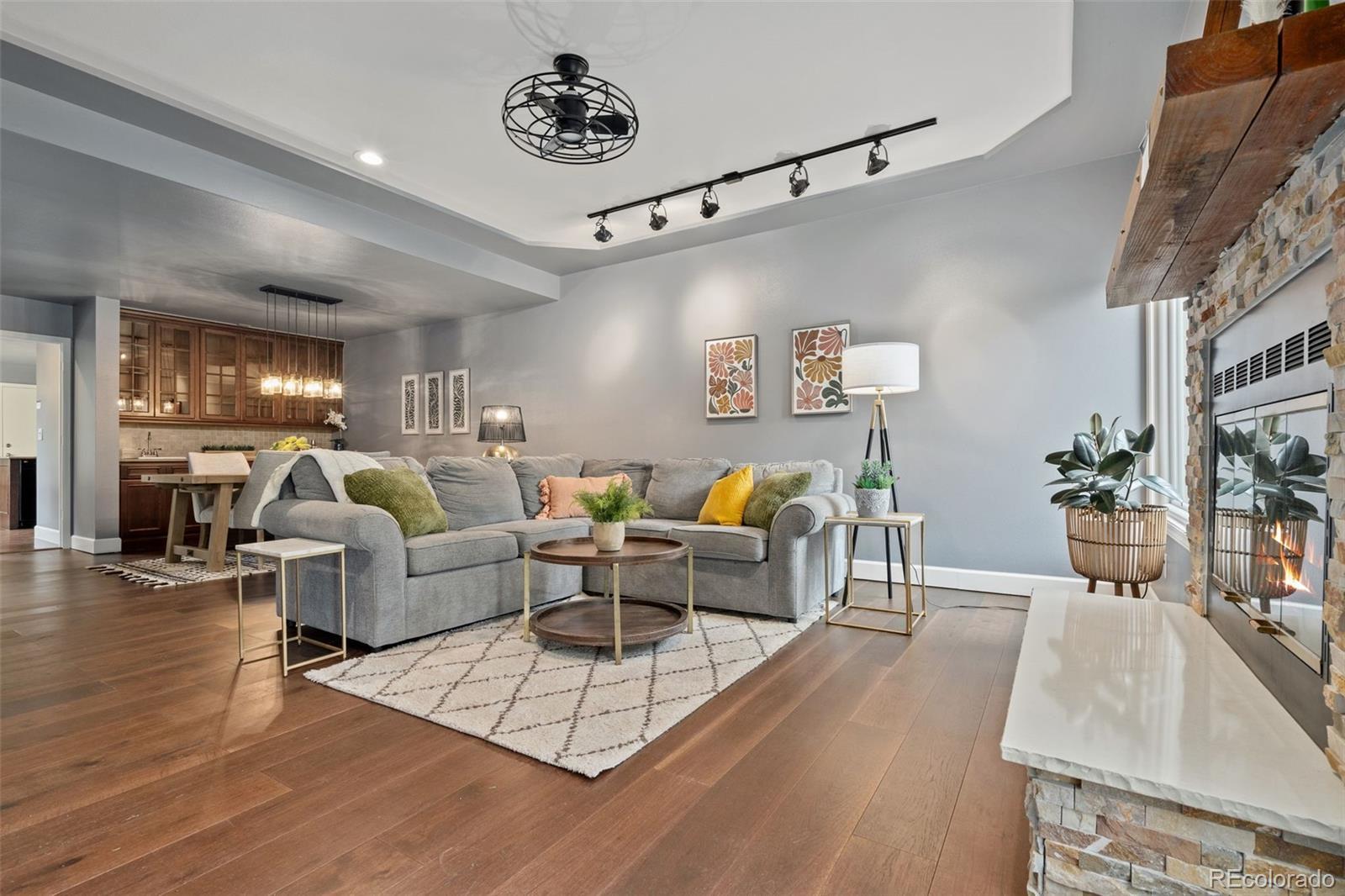 Lock It, Leave It, Love It! Beautiful 2-story home in the serene, tree-lined Provence Townhomes, a coveted community of just 58 residences. Featuring new flooring, built-ins, and a striking fireplace, the open main level also includes a flexible office/bedroom and a sunlit kitchen with pantry and dining nook. Upstairs offers a primary suite with walk-in closet and updated bath, plus a secondary bedroom with its own en suite. The finished basement adds more living space with wet bar, bedroom/bath, laundry, and bonus room. A private fenced patio provides a tranquil retreat. Ideal for carefree, lock-and-leave living with low-maintenance ease, all in a central location near Kennedy Golf Course, Cherry Creek Trail, Highline Canal, and parks. PRE-PAID HOA DUES & 1-0 BUYDOWN INCENTIVE!