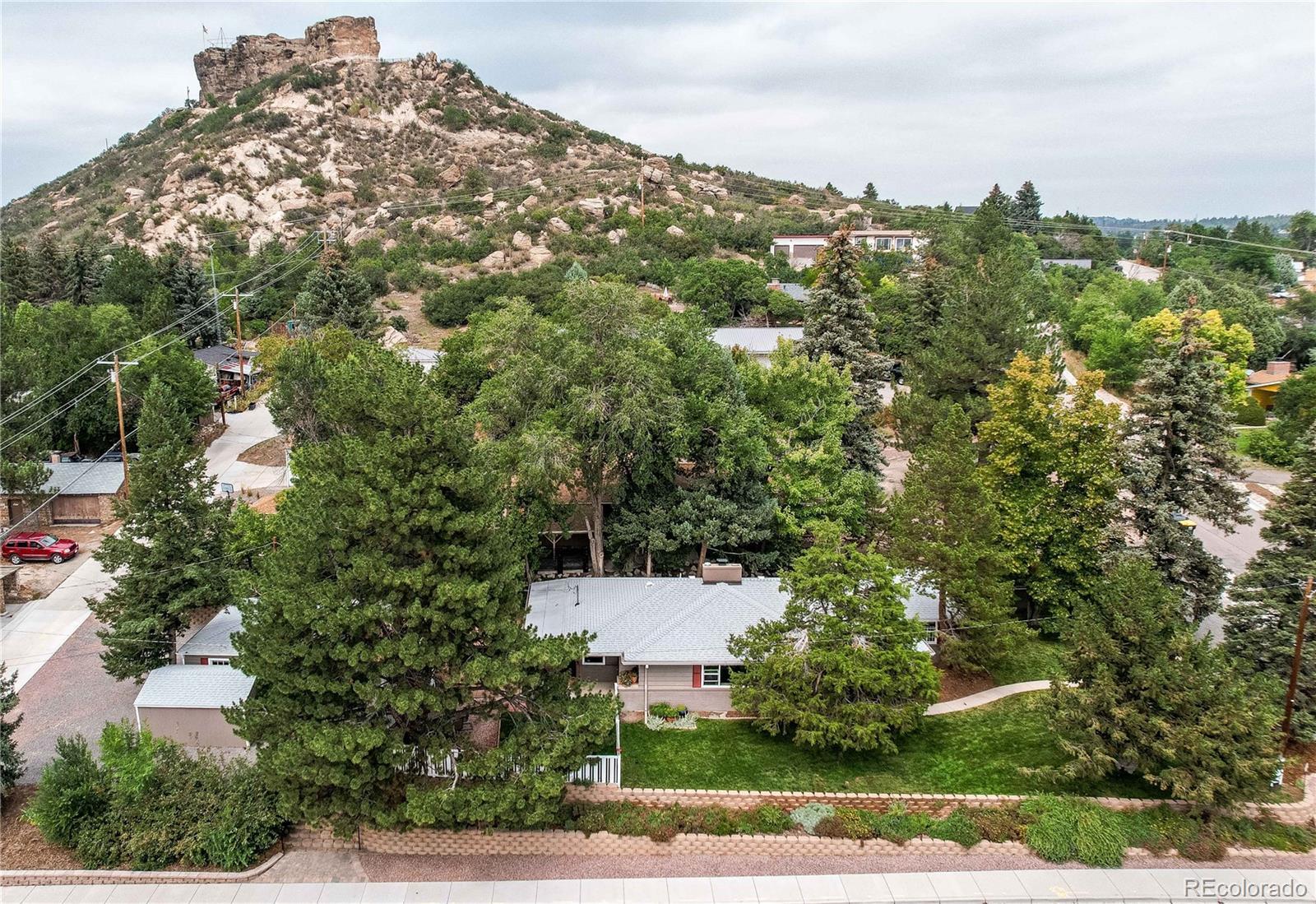 This house is truly special. Perhaps one of the most charming and cozy homes you will ever find located in the Historic Craig & Gould neighborhood. This beautifully restored three bedroom ranch style home is perfectly situated on a corner lot close to the Historic Rock Park. It is within walking distance of the downtown Castle Rock shops, restaurants & activities. You're sure to enjoy the private and fenced courtyard style patios with mature trees and outdoor lighting that make this perfect for a relaxing place to unwind and enjoy the magical gardens. Feel the love and care that will welcome you the moment you arrive. Pride of ownership shows as every room has been given attention to detail. Home offers a very large great room with cozy wood burning fireplace, three bedrooms and three bathrooms, Kitchen is fully equipped with gas stove, microwave, refrigerator and dishwasher. Plenty of room for a dedicated breakfast nook. There is a door in the kitchen that leads to outdoor patios with easy access to detached garage. Washer and Dryer location are close to bedrooms and bathrooms. Dining room is adjacent to both kitchen and great room for easy entertaining. In addition to the two car garage there is a large 12 x 16 shed and additional 4 private guest parking spots.