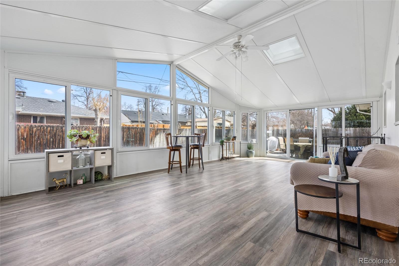 Welcome home to this beautifully maintained 3-bedroom, 3-bathroom ranch in sought-after Aurora Hills. Offering over 1,700 square feet on the main level, this home blends timeless character with thoughtful updates. Step inside to discover original hardwood floors, abundant natural light, and a stunning built-in China hutch anchoring the dining area — a true nod to the home’s period charm. The spacious layout includes a large sunroom addition, perfect for year-round relaxation, entertaining, or a bright home office. The main-floor primary suite offers privacy and everyday comfort, featuring a private en suite bath and walk-in closet. With another 1,297-square-foot basement provides exceptional flexibility with a ¾ bathroom, generous storage, multiple rooms – perfect for recreation, guests, or hobbies. Enjoy Colorado outdoor living on the deck or patio overlooking a private yard, complete with raised garden beds, a utility shed, and front and back sprinkler systems. A gardener’s delight, featuring established rhubarb and strawberry plants, native Colorado wildflowers, vibrant clematis, and a welcoming front entry accented with hundreds of spring tulips, daffodils, and crocuses. The attached garage, newer driveway, new roof (2022). Ideally located near parks, the Highline Canal Trail, area retail and dining, and with easy access to major roads and highways, this home combines comfort, character, and convenience. A true gem!
