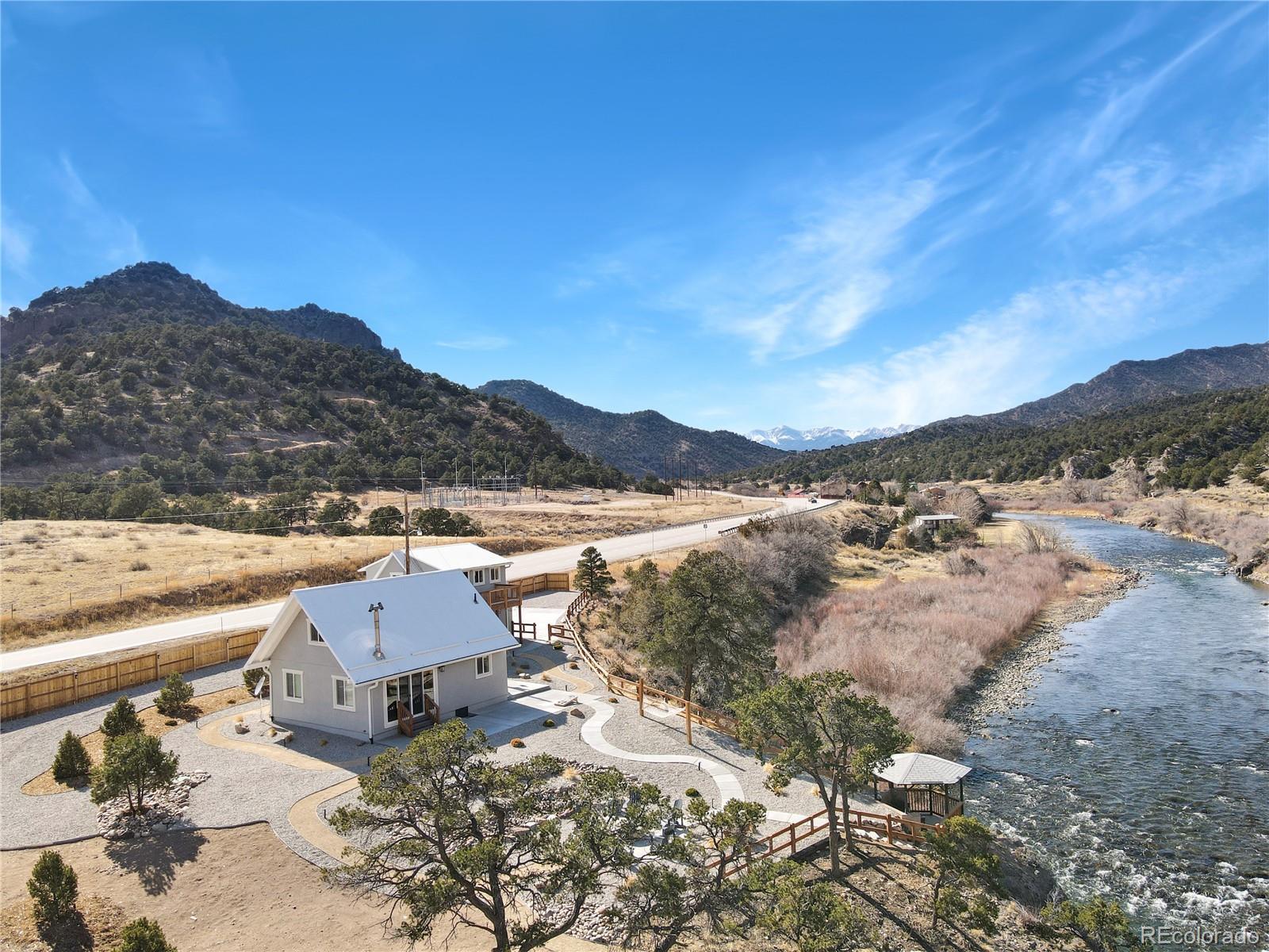 This Stunning Turnkey home and cabin offer an all-inclusive experience in a one-of-a-kind, 360 degee mountain-view retreat directly on the Arkansas River. Outdoor Enthusiasts' will love the Ultimate Fly Fisherman's Paradise and adventure haven just steps away, with the Arkansas River Gold Medal Waters and an abundance of nearby activities -hiking, snow skiing, mountain biking, ATV trails, and rafting & relax in the hot springs. Bighorn Sheep Canyon is also just a short drive away, while the vibrant city of Salida is within 14 min - easy reach for art galleries, festivals, shopping, live music, nightlife, and excellent dining. After a day of outdoor fun, retreat to your own Private Oasis and unwind on the covered viewing deck overlooking the river or gather around the gas firepit for cosy conversations under the stars. Stylish Decor and Thoughtful Layout - Inside, the main house boasts current decor, natural light, and a thoughtful layout with living areas on the main floor and well-appointed bedrooms upstairs. Enjoy relaxation and entertainment with a movie or board game, or prepare meals in the sleek modern kitchen, complete with granite countertops and stainless steel appliances. The charming cabin offers a Rustic Colorado-Chic studio/cabin layout with plenty of space to spread out and unwind. Stream your favorite shows in the cosy sitting area or whip up a warm meal in the convenient kitchenette. Best of all, this amazing property is being sold with All Furniture Included, making it an Excellent Turnkey Investment opportunity to turn this breathtaking retreat into your own profitable venture. Or live in main home and rent out the unit above/mother in law suite making it a great option for investors who are looking for a dual income property. This property is a rare find. It is truly exceptional in every way, from its location to its features. Contact us today to schedule a viewing and learn more about this outstanding, potential investment.