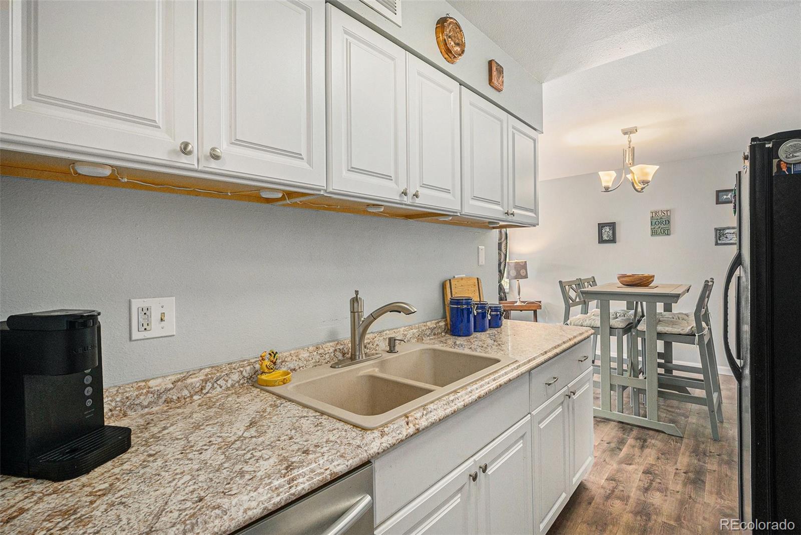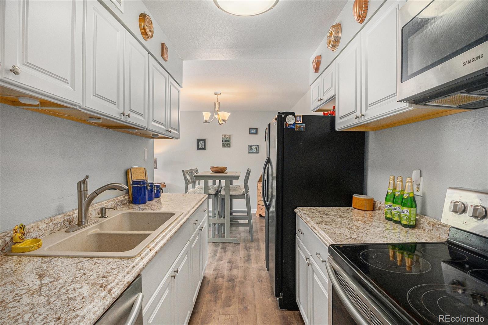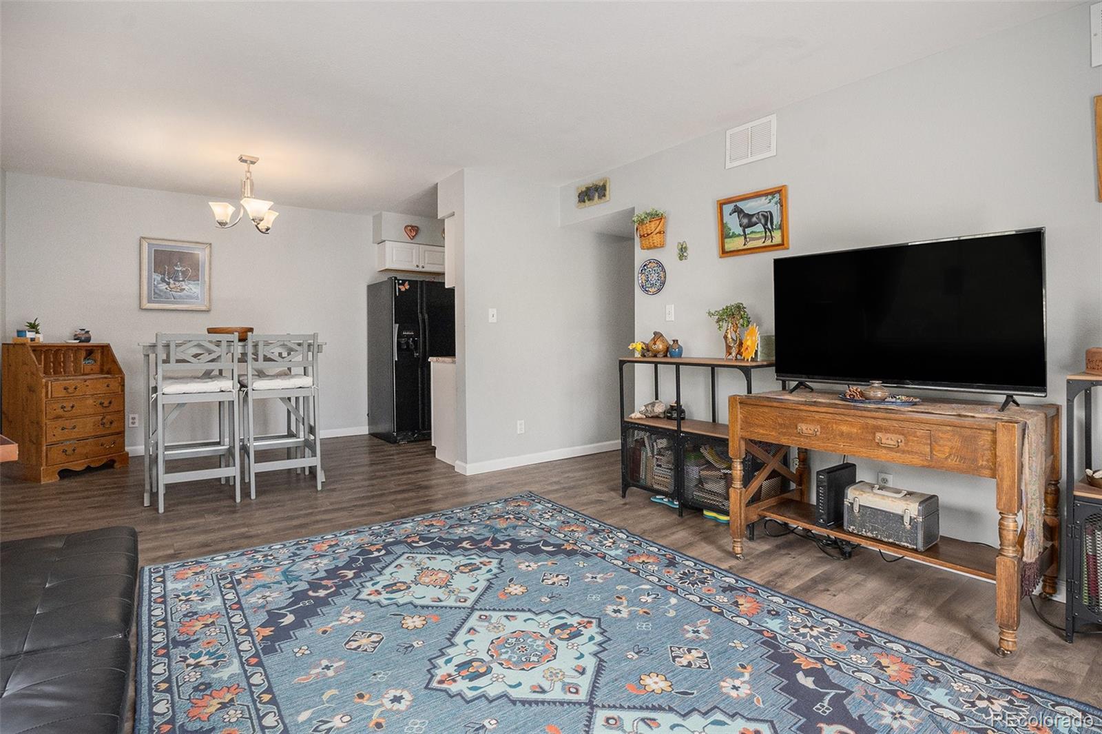 Top-floor condo in Highline Meadows featuring rare in-unit washer/dryer hookups, brand-new flooring, updated cabinetry, and a sunlit open layout. Enjoy privacy with no neighbors above, plus a newly rebuilt balcony. Community amenities include a pool, clubhouse, walking trails, and playground. Conveniently located near Downtown Littleton, Chatfield Reservoir, and the High Line Canal Trail with easy access to shopping, dining, and light rail.