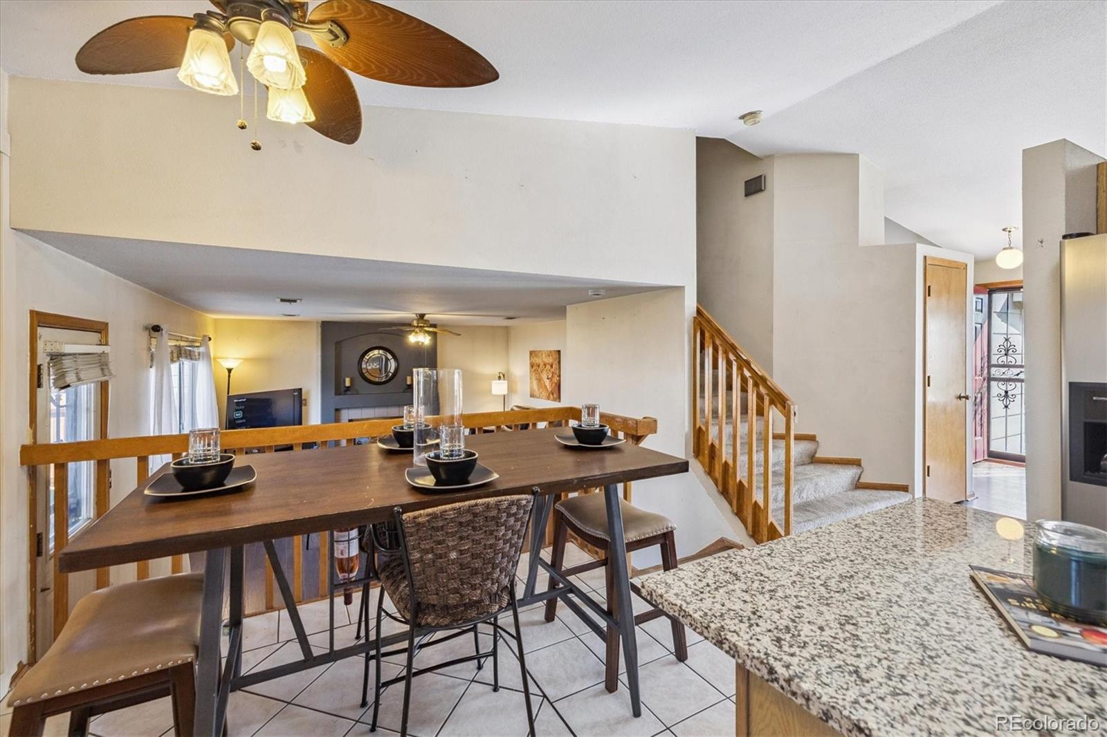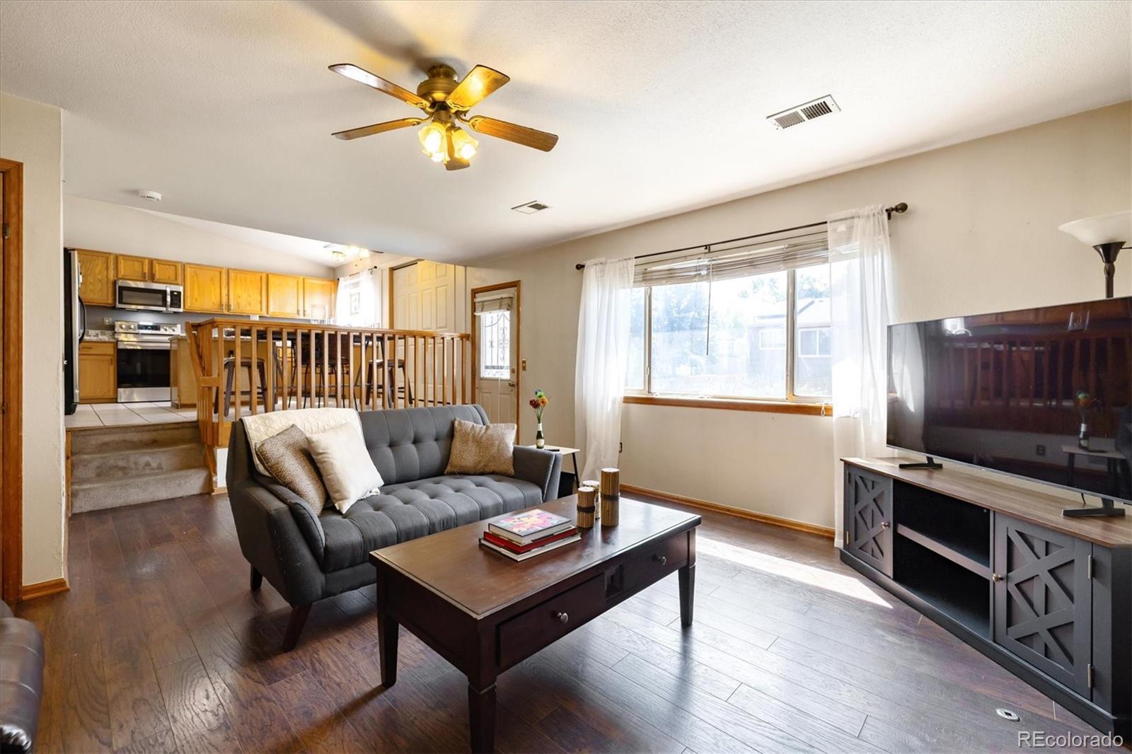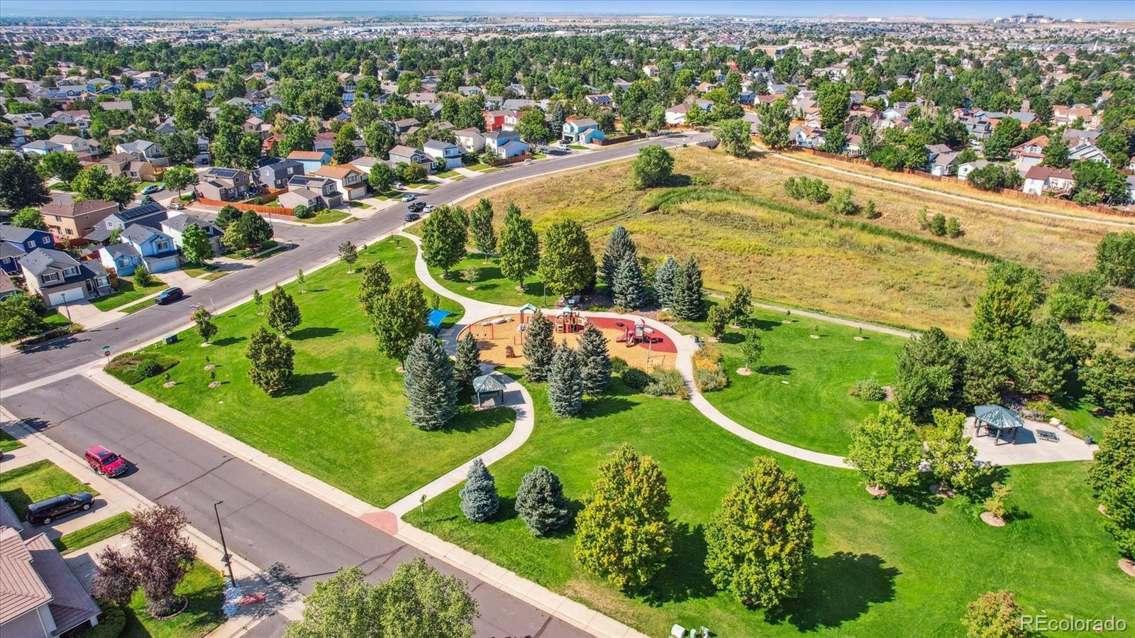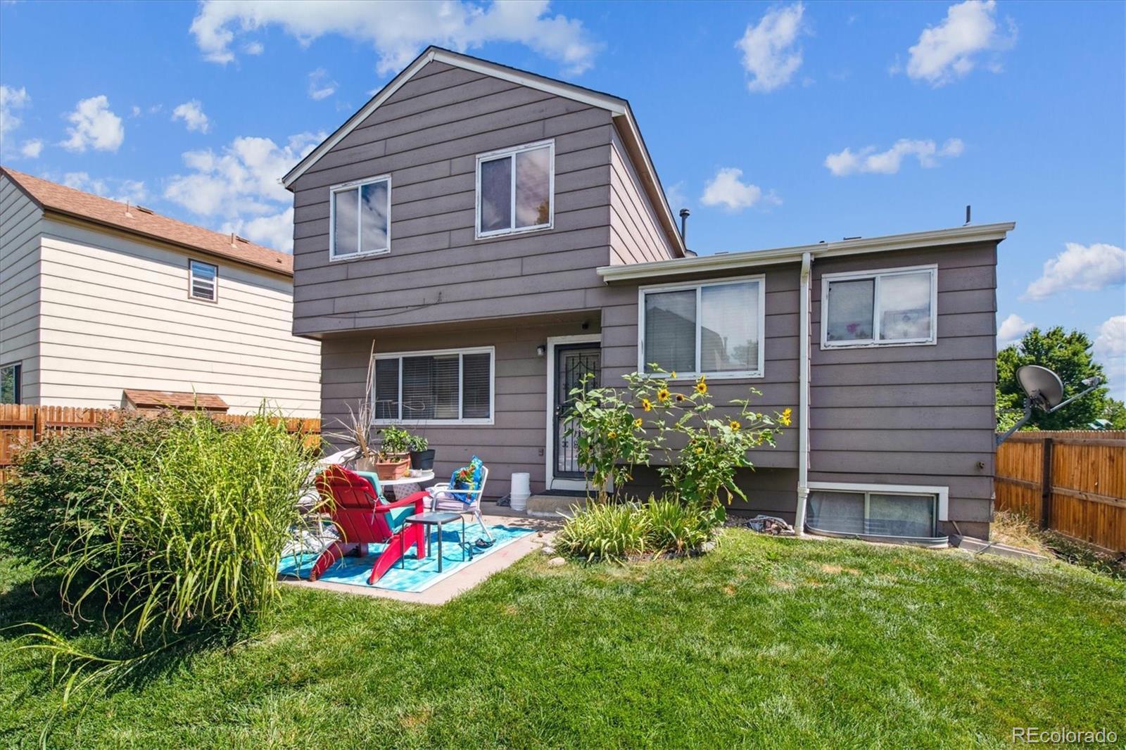 A Charming 3 Bed + 2 Bath Home on a Corner Lot, Across from Lovely Ensenada Park ** Great location close to Shopping, Public Transportation, Trails, Parks and Schools ** The main floor welcomes you with a spacious open living room, complete with a large window at the front of the home and wood floors ** Home flows into the updated, open eat-in kitchen, with granite counters, pantry and newer appliances ** Step down to a family room with a fireplace for cozy gatherings and covenient access to the patio and fenced in yard ** Upstairs are three bedrooms - the primary includes a large walk-in closet and an ensuite bath with walk-in shower and roomy vanity ** Two additional bedrooms share a full bath and could be perfect for children, guests or for use as an office, exercise or craft space ** This home has an unfinished basement with laundry hook ups ** Assessment information for the Master Homeowners Association for Green Valley Ranch is in MLS supplements ** Convenient access in minutes from E-470, I-70, Tower Road and DIA and The Highline Canal Trail is about 3 blocks to the west ** Recent updates on this home include: Roof (2024), Solar (2024), A/C, Updated Kitchen and Baths, Expanded Patio ** This property deserves a look - set your showing today!