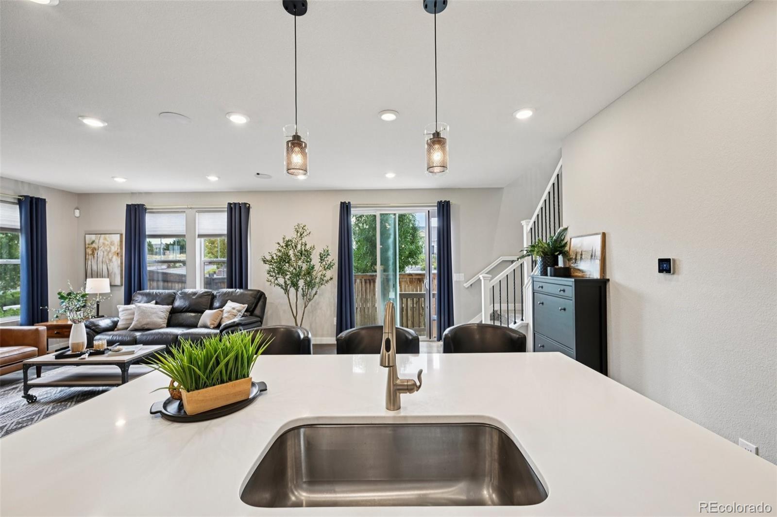 Welcome to Highland Villas! This stunning former model home offers the perfect blend of style, comfort, and convenience. With 2,300 square feet, 2 bedrooms, 3 bathrooms, and a 2-car attached garage (with 220V outlet for an EV charger), this half duplex is designed for modern living. Step inside to an inviting open-concept main floor where the living, dining, and kitchen flow seamlessly together. The kitchen is a showstopper with stainless steel appliances, a large eat-in center island, a gas range, and plenty of space for gatherings. Upstairs, you’ll find two spacious bedrooms and a versatile loft—ideal for an office, playroom, or second living area. The unfinished basement is a rare find, offering expansive 10-foot ceilings and endless potential to make it your own. Outdoor living is just as impressive with a private fenced yard and a cozy patio—perfect for summer barbecues, morning coffee, or relaxing evenings. Location couldn’t be better. Enjoy walking to Red-tailed Hawk Park, Heritage Eagle Bend Clubhouse & Golf Course, and nearby stores like Target. Southlands Outdoor Shopping Center is less than 10 minutes away, and with quick access to 470, you’re only 25 minutes to DIA and 15 minutes to the Denver Tech Center. With high-end finishes, thoughtful design, and unbeatable convenience, this home is truly move-in ready and waiting for its next chapter. Schedule a showing today!