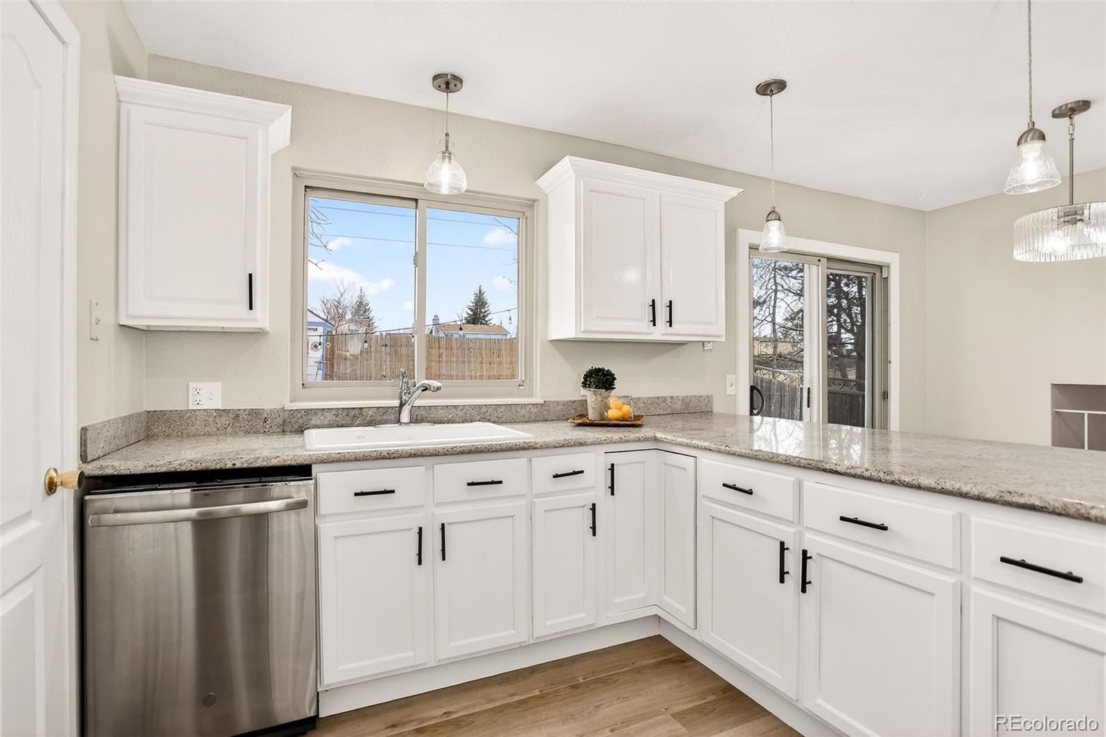 Beautifully updated 4-bedroom, 3-bath tri-level home on a large lot backing to open space with walking and biking trails. Step into a bright, open main level with natural light and modern flooring that showcases the spacious living room and flows seamlessly into the kitchen and dining area. The kitchen features stainless steel appliances, granite countertops, ample cabinet space, and convenient access to the private, fully fenced backyard. Upstairs, you’ll find three spacious bedrooms, including a primary suite with a newly updated private 3/4 bathroom, plus an additional full bathroom on the upper level. The lower level adds warmth and versatility with a generous family room highlighted by a cozy wood-burning fireplace, perfect for relaxing or entertaining. A fourth bedroom and additional 3/4 bathroom create a flexible floor plan ideal for guests or multigenerational living. Recent upgrades include brand-new flooring | fresh interior paint | new lighting | granite countertops | double-paned windows, | central air conditioning | newer sewer line | updated electrical. Outside, enjoy a concrete patio, private backyard with a large storage shed, Xeriscaped front yard and a gate providing direct access to nearby trails. Additional features include an attached two-car garage. Conveniently located near Buckley Air Force Base, shopping, dining, and everyday amenities, this move-in-ready home is the perfect place to call home. **Some photos are virtually staged**