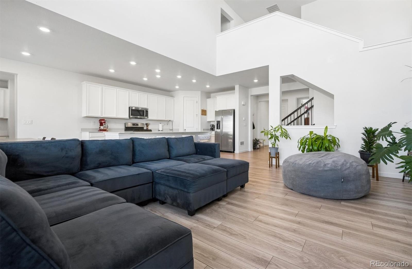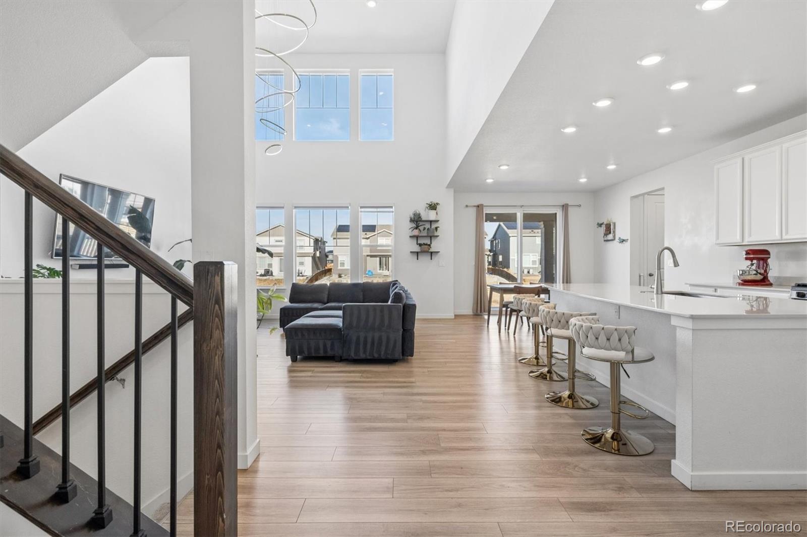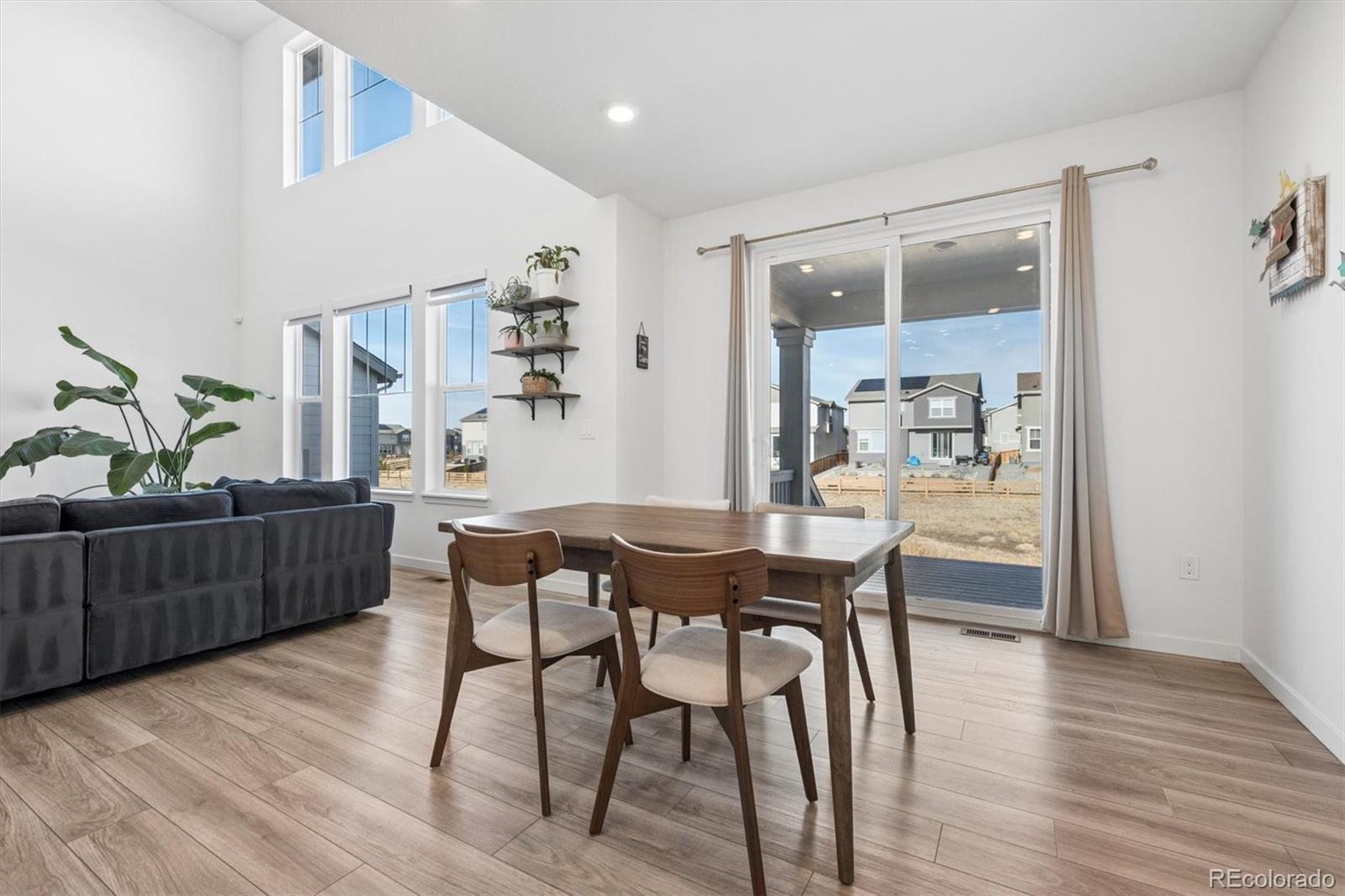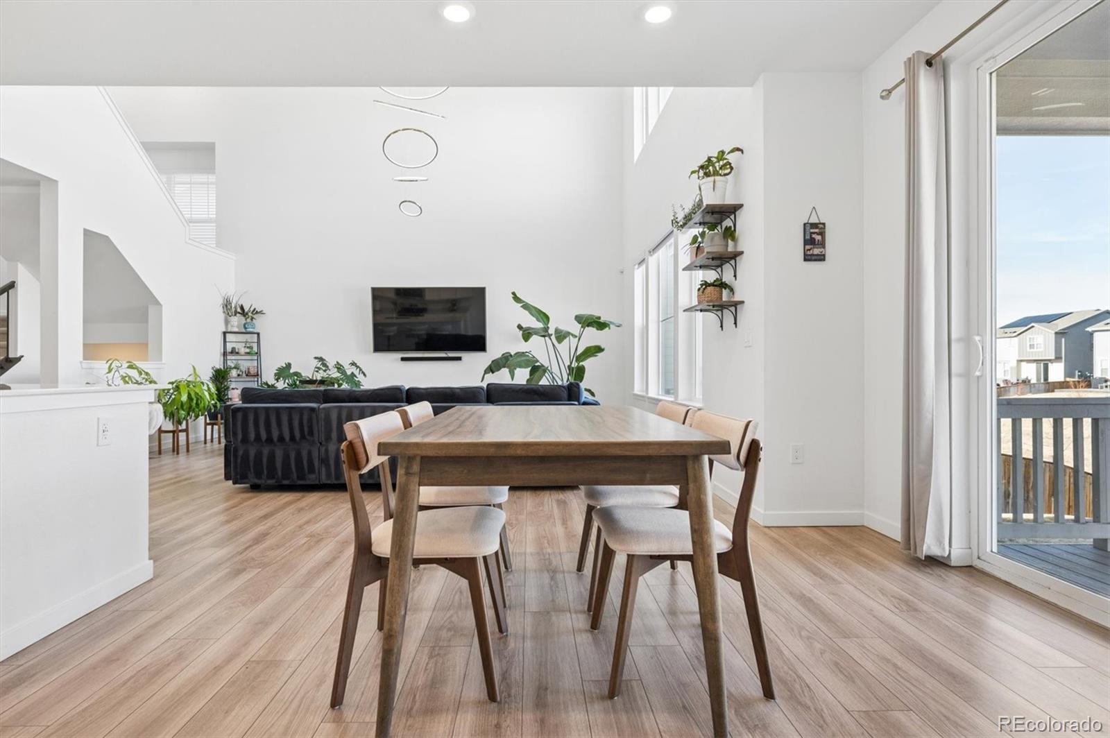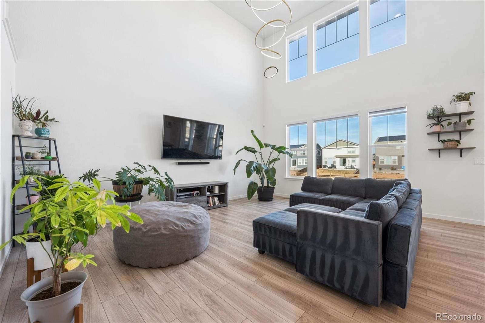 Thoughtfully designed with functionality, elegance, and curated finishes, while situated on a premium lot backing to open space, this is 13153 E 100th Place. Beautiful LVP flooring greets you upon entry and extends into a spacious great room with grand 20’ ceilings, abundant natural light, and ample room for entertaining. The heart of this home is the well-appointed kitchen featuring an oversized center island, quartz countertops, white cabinetry, a stainless steel appliance package, and a walk-in pantry. Steps off the kitchen is a flex workspace/tech center that seamlessly connects to a mud room and the attached 3-car garage. Step out of the large glass slider to a covered patio, ready for summer BBQs and al fresco dining. The professionally landscaped, fenced-in yard neighbors a community walking path and green space, providing added privacy. Upstairs, three generously sized bedrooms all include ensuite bathrooms, laundry, and the owner’s suite. This serene retreat is complete with tre-ceilings, dual walk-in closets, and an upgraded 4-piece ensuite bath. Additional features of this turnkey residence include a main-floor bedroom (ideal for guests or a home office), integrated smart-home technology, and an unfinished basement ready for future expansion or ample storage. Reunion is a family-friendly community in Commerce City, which includes a clubhouse, fitness center, pool, park, playground, and miles of trails. Ideally situated within minutes of neighborhood schools, restaurants, shopping, and major roadways, this property delivers comfort, style, and an ideal location.