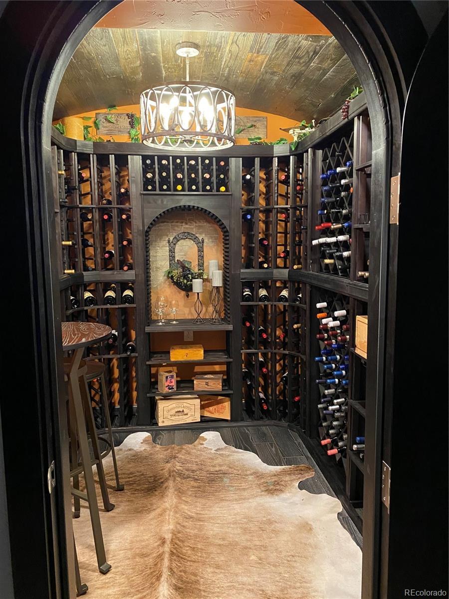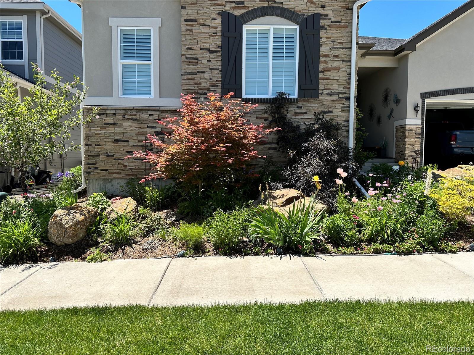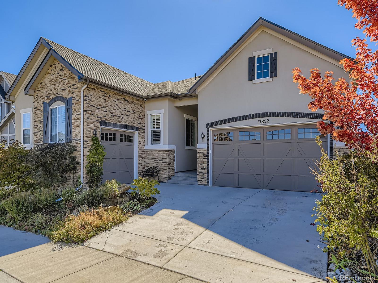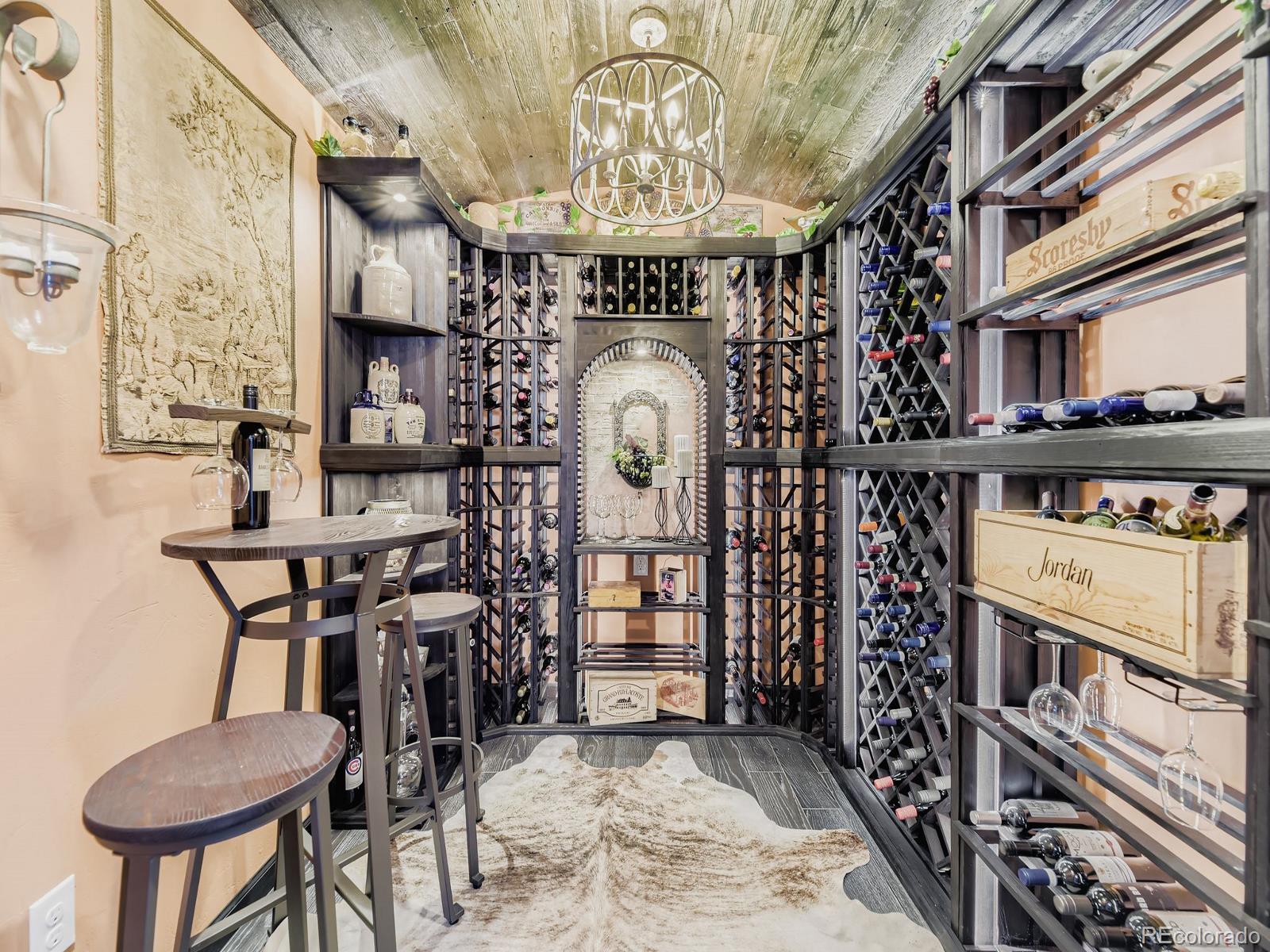 This captivating ranch-style home is located in Overlook at Cherry Creek with over 3600 sf finished. The upgrades in this home are unbelievable. As you enter the home the high ceilings and neutral paint make for a grand entrance to the large great room. Gas Fireplace, tiled floors, plantation shutters throughout home including garages. Tons of cabinetry, granite counter tops. SS appliances, gas stove, large walk-in pantry. Also, a tech area with lots of cabinetry and Corian countertops. Audio system throughout the home. The primary bedroom is large with built in dresser/cabinets. Large 5-piece master bathroom with a huge walk-in closet. The study has French doors with a wall of built in shelves. Two more large bedrooms, full bathroom and large laundry room (washer/dryer included). The Basement, WOW, over 1300 sf finished. A must see this incredible custom Bar with floating LED shelves, LED under bar and in ceiling, double drawer dishwasher, oven, 3 tap kegerator, ice maker, 2 under counter fridges, custom lighting over the bar. Large workout room equipment will stay. Dart board area. Shuffleboard included. mounted TV. The wine cellar, WOW, custom 547+ wine rack, all furniture stays in wine room. Custom angled track and swivel barn door heading to upper level. One more large bedroom and full bathroom in garden level basement. Over 1000 unfinished area in basement. Two car garage with custom floor coating, plantation shutters and third car garage with custom floor coating and plantation shutters. You must see the outdoor back custom covered deck with Trex flooring, with custom electric 3-sided blinds floor to ceiling, dry below deck so you can sit below, back yard is turf dog friendly. Front yard is xeriscape. Culligan water softener, Radon installed. New roof 2022 when deck was done. Super close to all that Downtown Parker has to offer. Great location to view 4th of July fireworks. Closet access to I25/470.