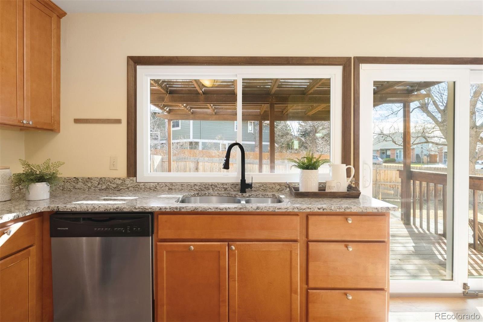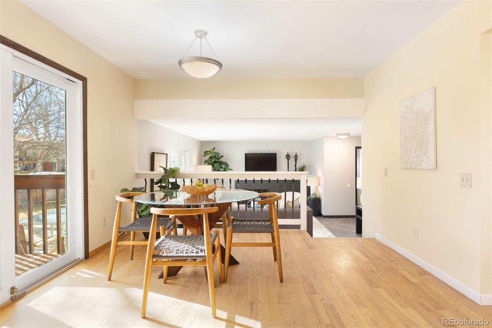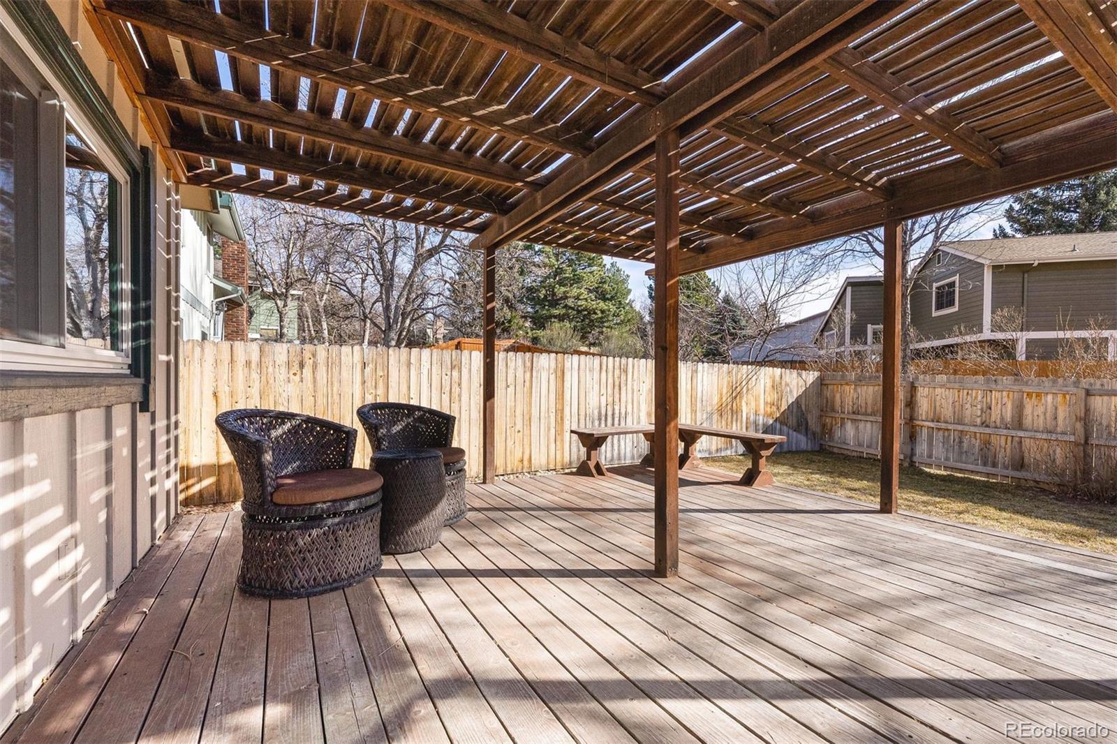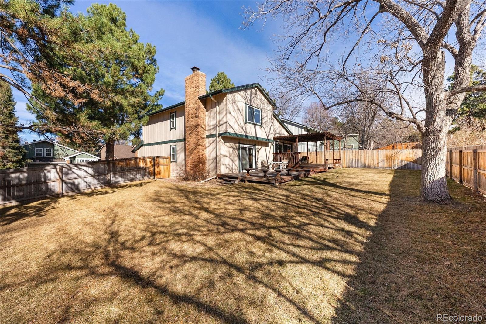 This spacious four-bedroom, three-bath home sits on an oversized corner lot backing to a peaceful greenbelt in the highly desirable Willow Creek neighborhood. With tall ceilings and lots of natural light, the home feels open and welcoming from the moment you walk in. The large living room flows right into the dining area and features hardwood floors—perfect for everyday living or hosting friends and family. The kitchen has been updated with stainless steel appliances, granite countertops, and a cozy eat-in space. Just off the kitchen, the pergola-covered back porch is a great spot for grilling, relaxing, or enjoying the seasons. The den is warm and inviting with a wood-burning fireplace and sliding glass doors that lead straight out to the oversized backyard. All of the bathrooms have been refreshed with granite countertops, and the carpet has been recently replaced. Downstairs, the finished 700-square-foot basement offers flexible space for movie nights, entertaining, or play. The fourth bedroom in the basement works well as a home office, workout room, or guest bedroom. The private, fenced backyard backs directly to the greenbelt, giving you extra space and privacy. Willow Creek residents enjoy fantastic amenities including two pools, two clubhouses, six tennis courts, walking paths, and plenty of community events. The neighborhood is close to shopping, dining, and entertainment, and it’s part of the award-winning Cherry Creek School District, with one of the top elementary schools in the district.