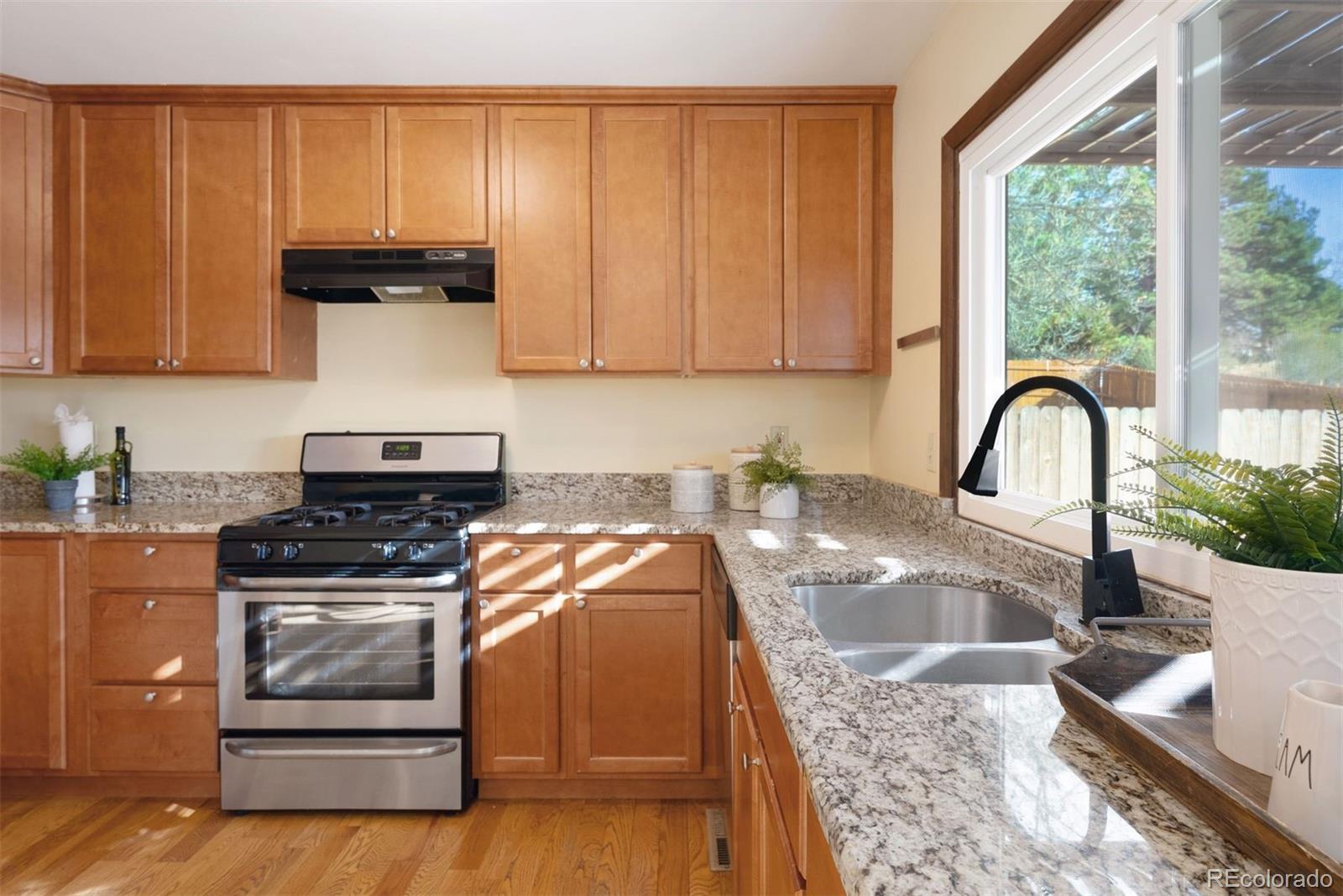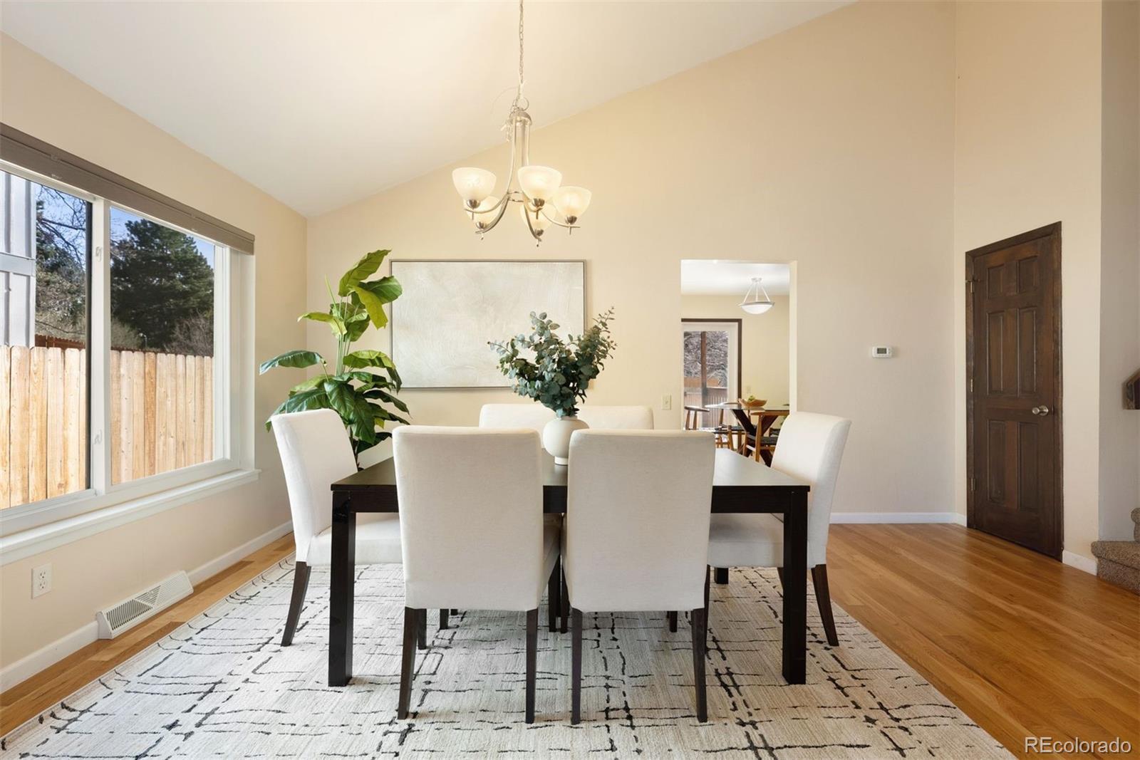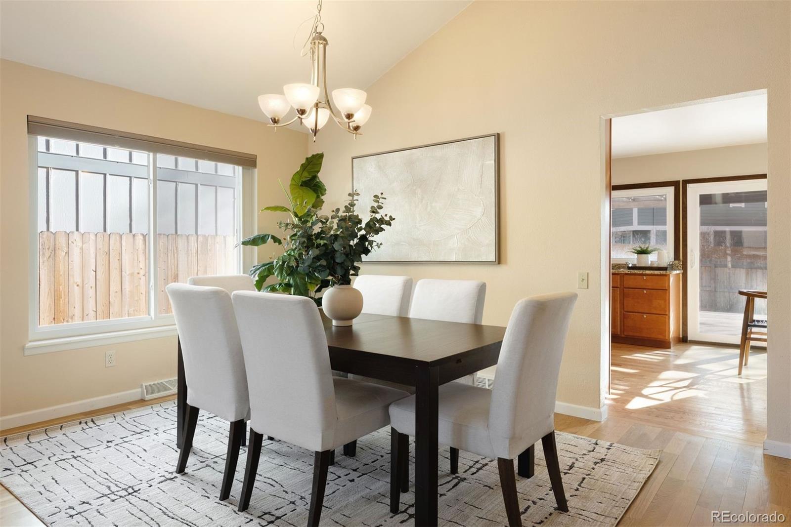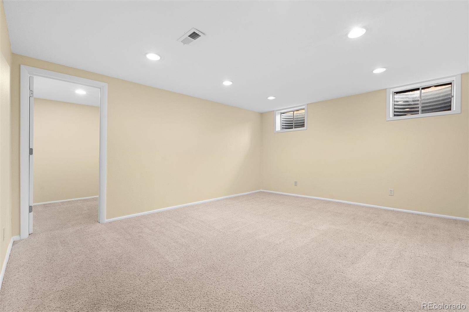 This spacious four-bedroom, three-bath home sits on an oversized corner lot backing to a peaceful greenbelt in the highly desirable Willow Creek neighborhood. With tall ceilings and lots of natural light, the home feels open and welcoming from the moment you walk in. The large living room flows right into the dining area and features hardwood floors—perfect for everyday living or hosting friends and family. The kitchen has been updated with stainless steel appliances, granite countertops, and a cozy eat-in space. Just off the kitchen, the pergola-covered back porch is a great spot for grilling, relaxing, or enjoying the seasons. The den is warm and inviting with a wood-burning fireplace and sliding glass doors that lead straight out to the oversized backyard. All of the bathrooms have been refreshed with granite countertops, and the carpet has been recently replaced. Downstairs, the finished 700-square-foot basement offers flexible space for movie nights, entertaining, or play. The fourth bedroom in the basement works well as a home office, workout room, or guest bedroom. The private, fenced backyard backs directly to the greenbelt, giving you extra space and privacy. Willow Creek residents enjoy fantastic amenities including two pools, two clubhouses, six tennis courts, walking paths, and plenty of community events. The neighborhood is close to shopping, dining, and entertainment, and it’s part of the award-winning Cherry Creek School District, with one of the top elementary schools in the district.
