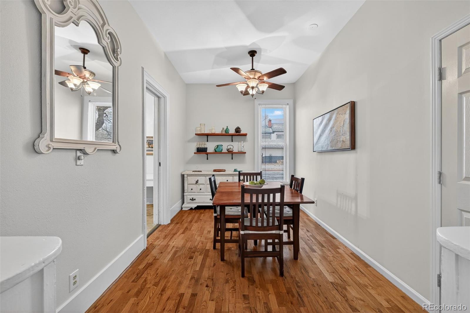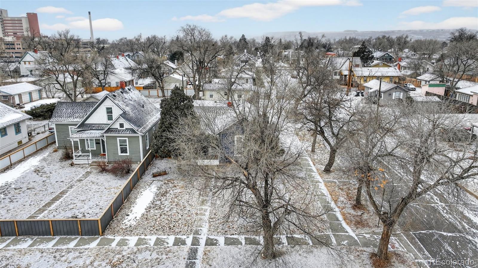 This is a unique opportunity to acquire a historic property located in the highly sought-after North End. This residence provides exceptional proximity to downtown, Colorado College, UCCS, Garden of the Gods, Pikes Peak, and I-25, with Shooks Run trail conveniently situated across the street. The home has been thoughtfully updated while retaining its distinctive character, making it a notable listing in the current real estate market. Interior highlights include hardwood flooring in the living and dining areas, high ceilings, and a well-lit kitchen designed for social gatherings. Well appointed bedrooms and a private concrete patio offering an ideal space for outdoor relaxation. Modern amenities comprise a renovated laundry area, updated bathroom, newer windows, ceiling fans and fixtures, new fence along the south side, newer hot water heater, upgraded electrical panel, and partial roof replacement. The exterior benefits from newer paint, new front porch steps and railing, and updated landscaping. This location offers close access to essential amenities such as grocery stores, coffee shops, dining, parks, Penrose Hospital, bike paths, and public transportation; combining historic appeal with modern convenience.
